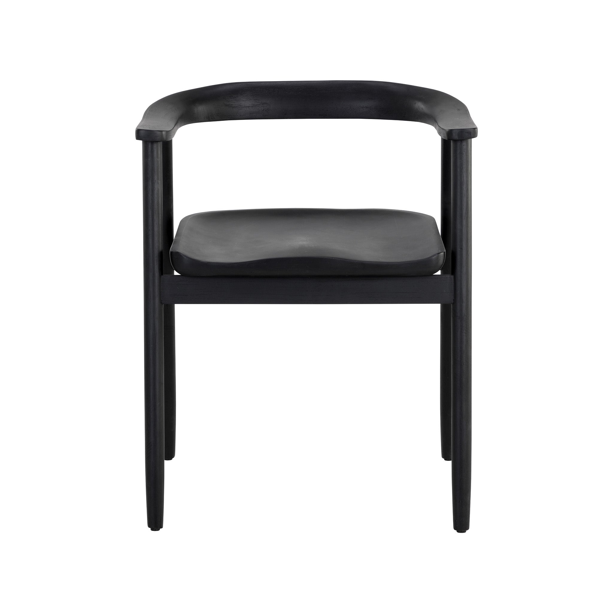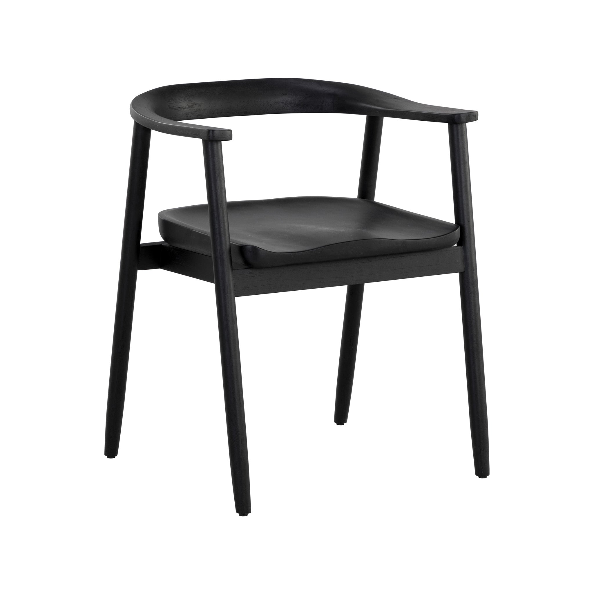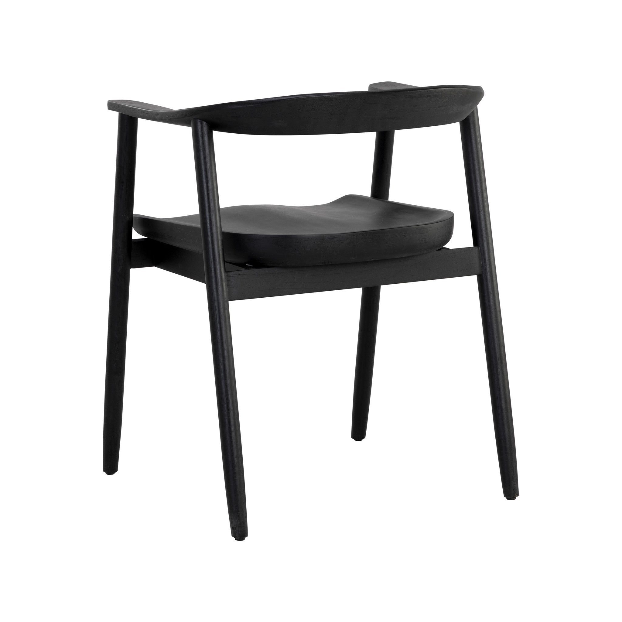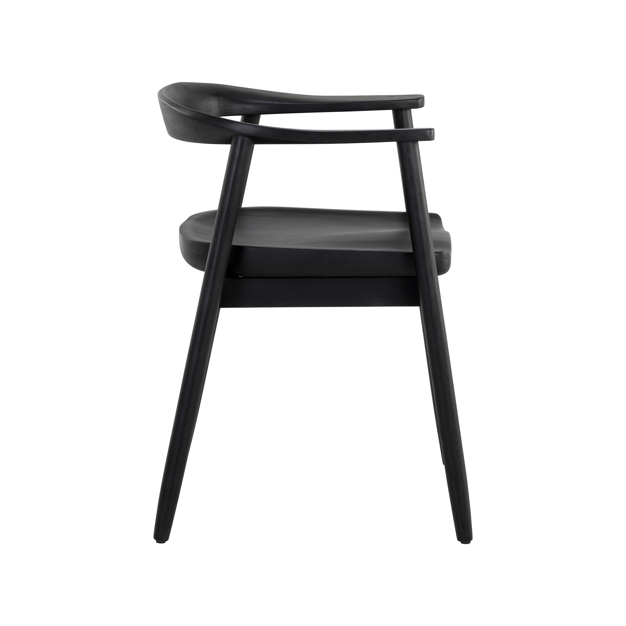 Un fauteuil de salle à manger séduisant, d'inspiration mid-century, qui célèbre la beauté de la simplicité. Fabriqué avec soin en bois d'acacia noir pour une allure élégante. Le bois étant un matériau organique et poreux, chaque pièce présente des variations naturelles de texture, ainsi que de fines indentations et fissures. La couleur, le grain, les nœuds et les loupes apparents contribuent également au caractère unique de chaque fauteuil.
