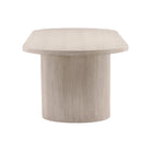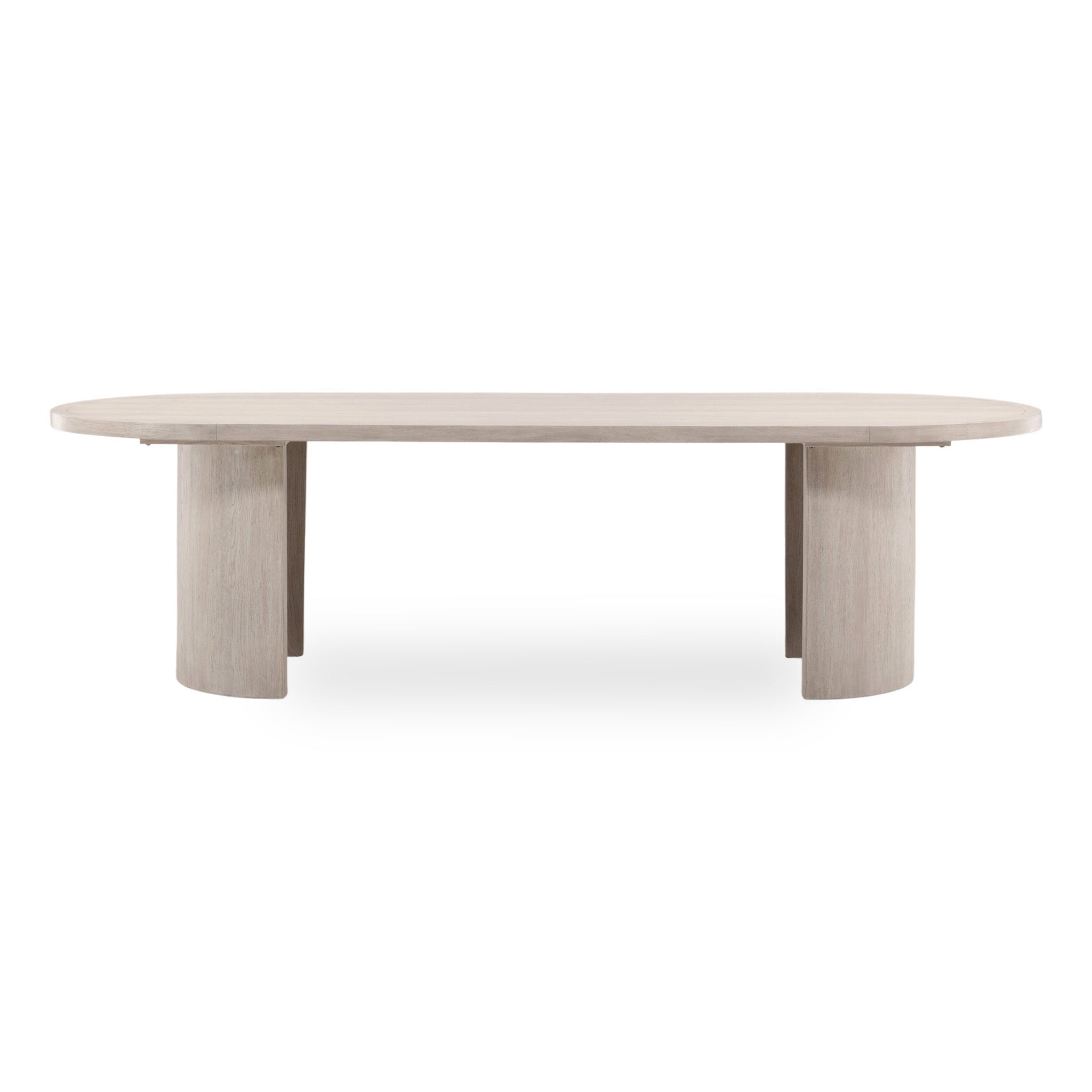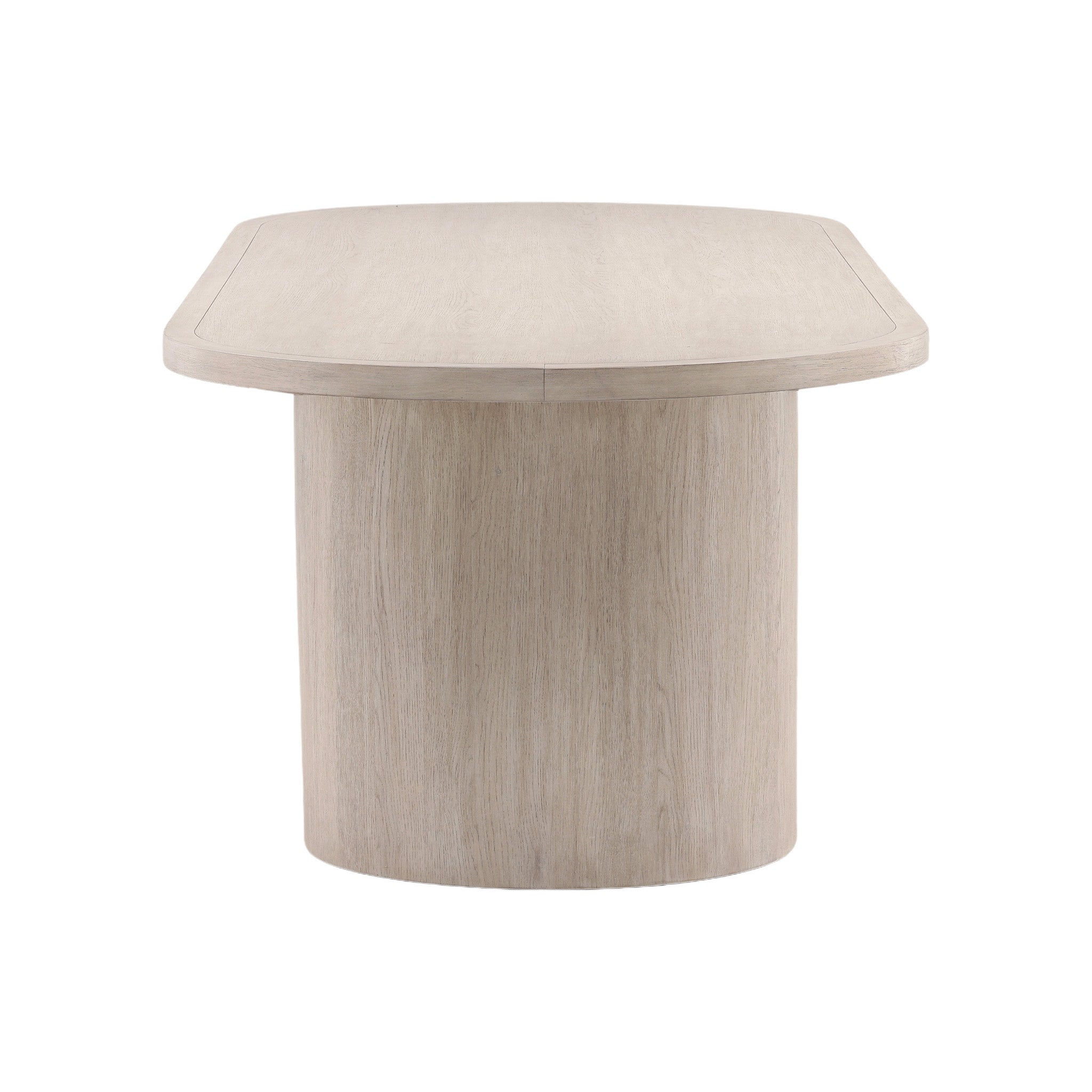 Cette table à manger minimaliste apporte une touche d'élégance sereine à votre intérieur. Son plateau ovale allongé repose avec grâce sur deux pieds semi-cylindriques robustes, créant une silhouette épurée et moderne. Fabriquée en bois clair naturel au veinage apparent, cette pièce allie une forme élégante à la chaleur des matériaux naturels, créant ainsi un lieu de convivialité idéal pour recevoir famille et amis.