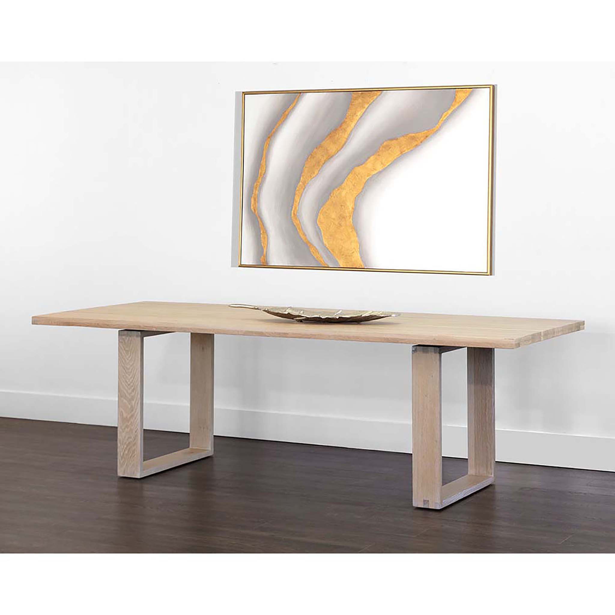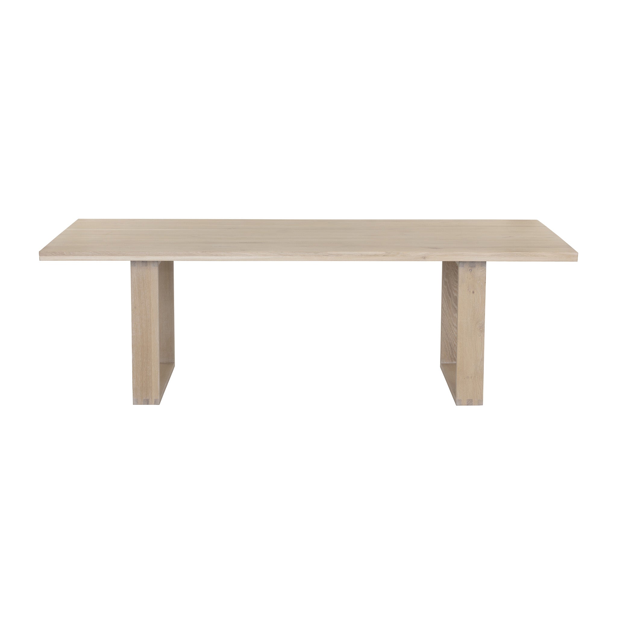 Répandez la joie et la bonne humeur autour de cette table à manger moderne et élégante. Son plateau et sa structure sont en chêne clair massif, avec une magnifique finition blanchie. Le bois étant un matériau organique et poreux, chaque pièce présente des variations naturelles de texture, ainsi que de fines indentations et fissures. La couleur, le grain, les nœuds et les loupes apparents contribuent également au caractère unique de chaque pièce. Fabriquée en Inde, cette table est le fruit du savoir-faire d'artisans locaux qualifiés. De par sa nature artisanale, les imperfections telles que fissures, marques et variations de couleur et de forme sont autant de caractéristiques appréciées qui font de cette pièce un objet véritablement unique.