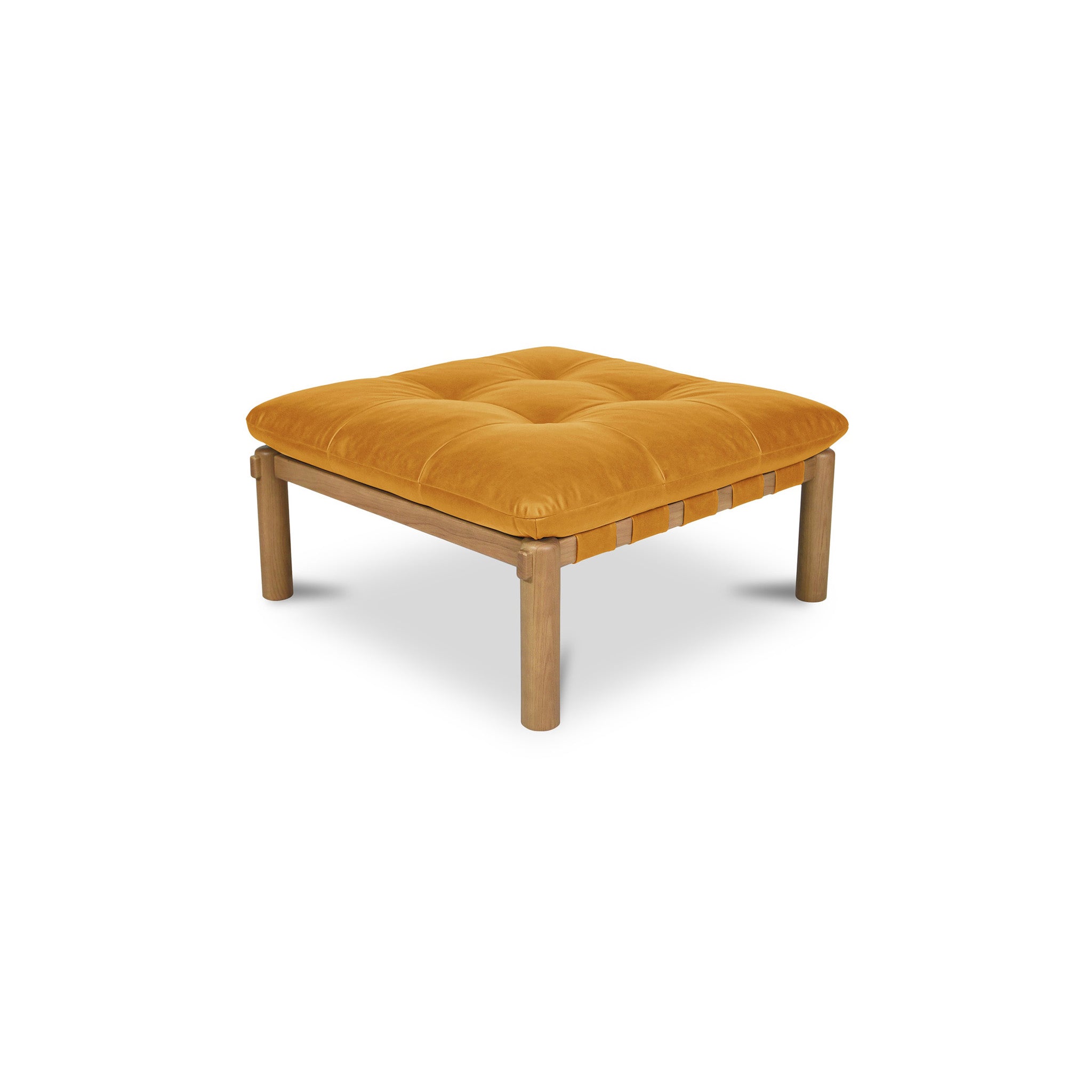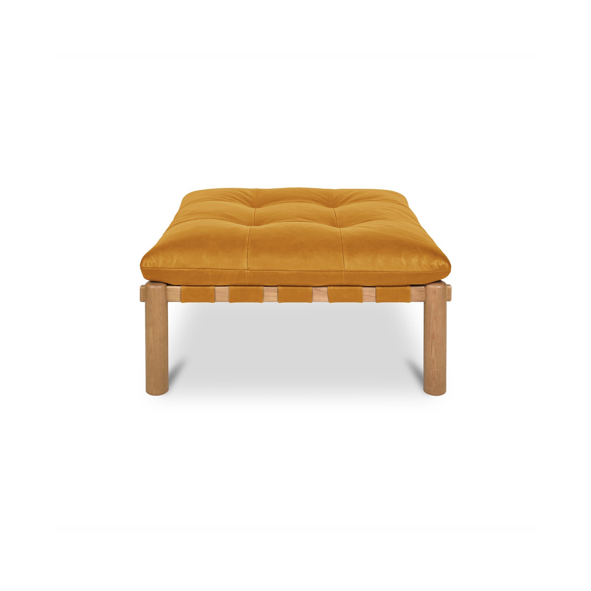 When the materials steal the show. The Costello Ottoman puts material first with a solid oak frame and top-grain leather seat that softens over time. Tuft detailing, rounded legs, and leather-wrapped straps highlight its craftsmanship. Feather-and-fiber cushioning adds comfort without compromising structure. Equal parts modern and timeless, Costello lets the materials do the talking.