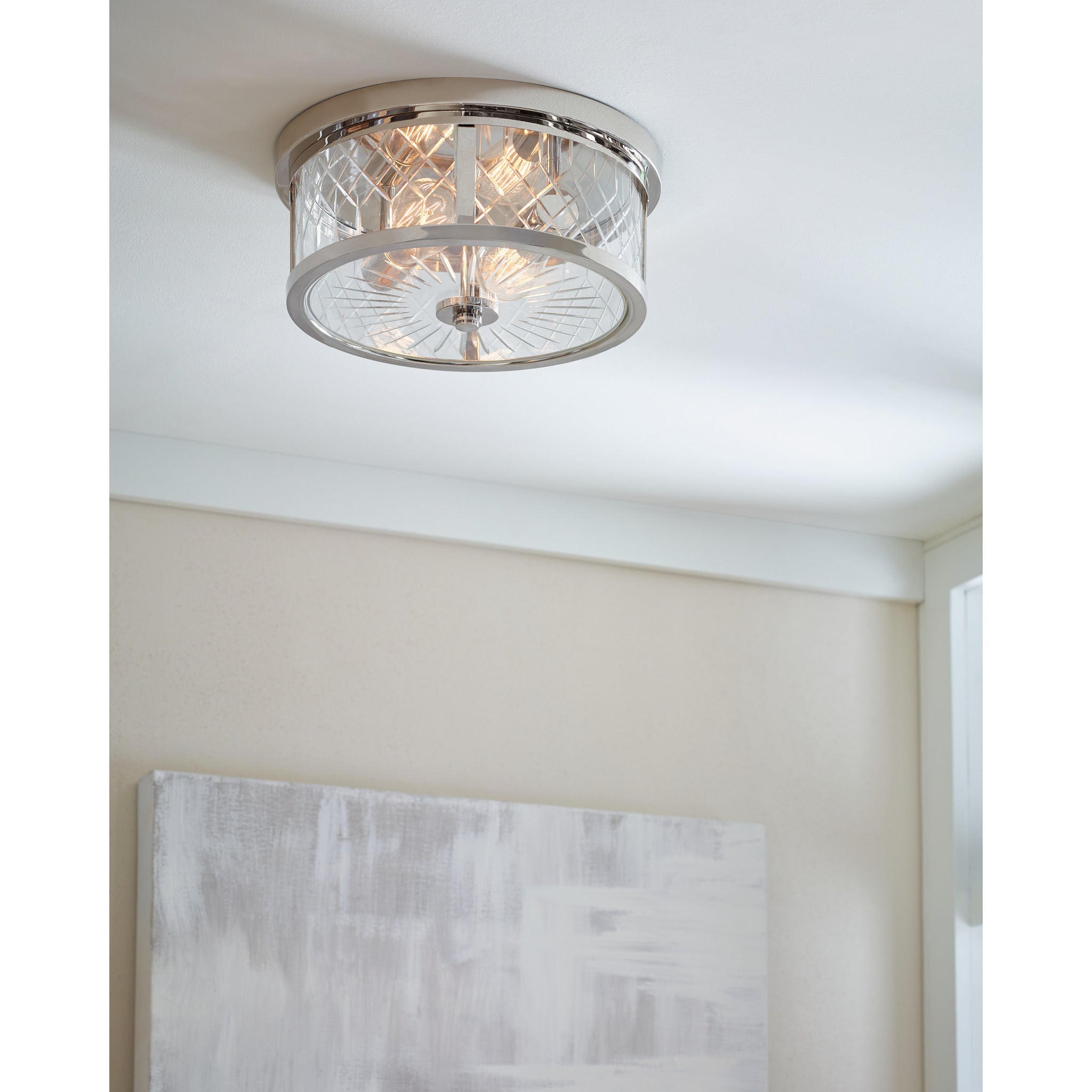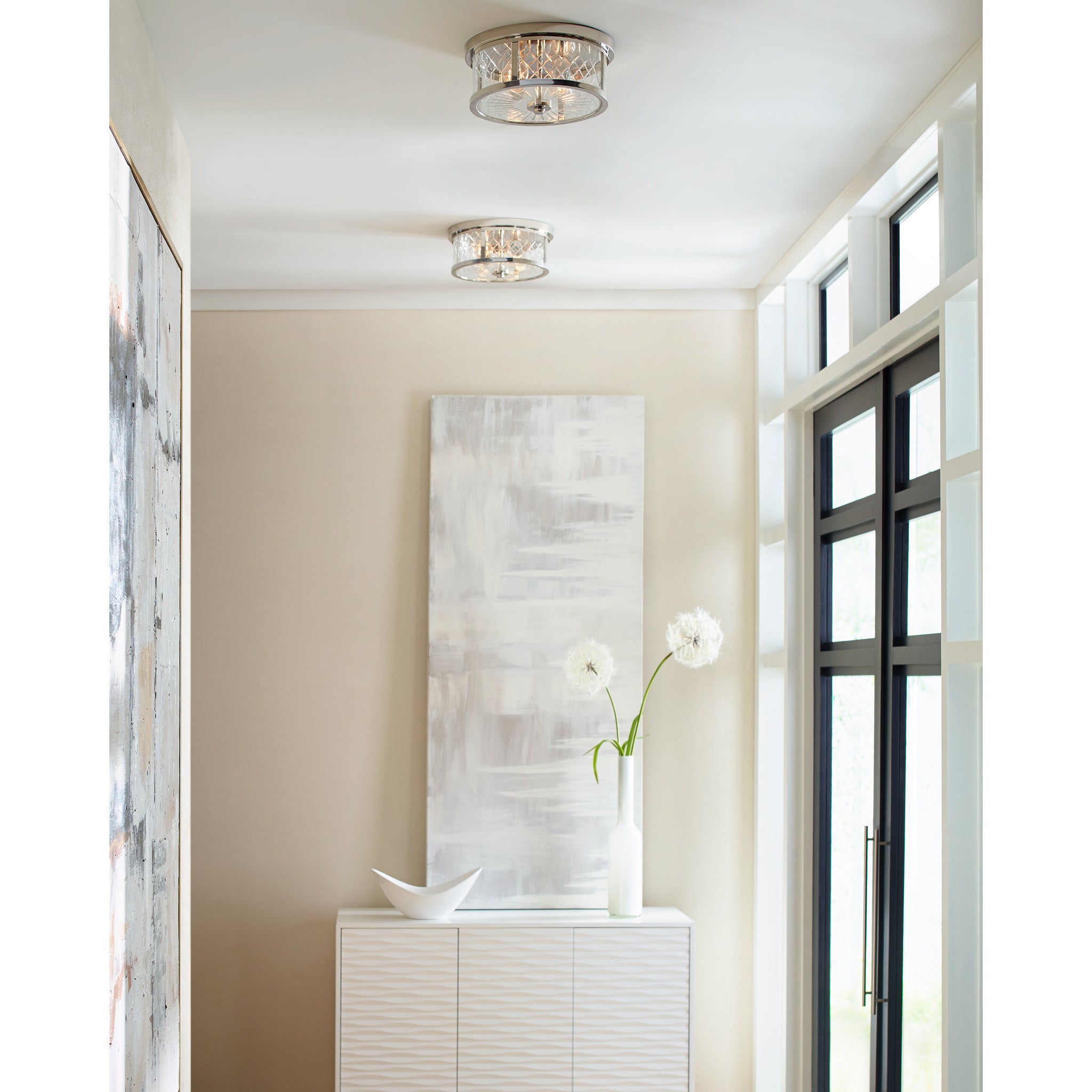 Inspiré du cristal taillé antique Hollywood Regency, le semi-encastré Alec présente un design à motifs qui donne au plafond une sensation graphique sans dominer l'espace.