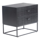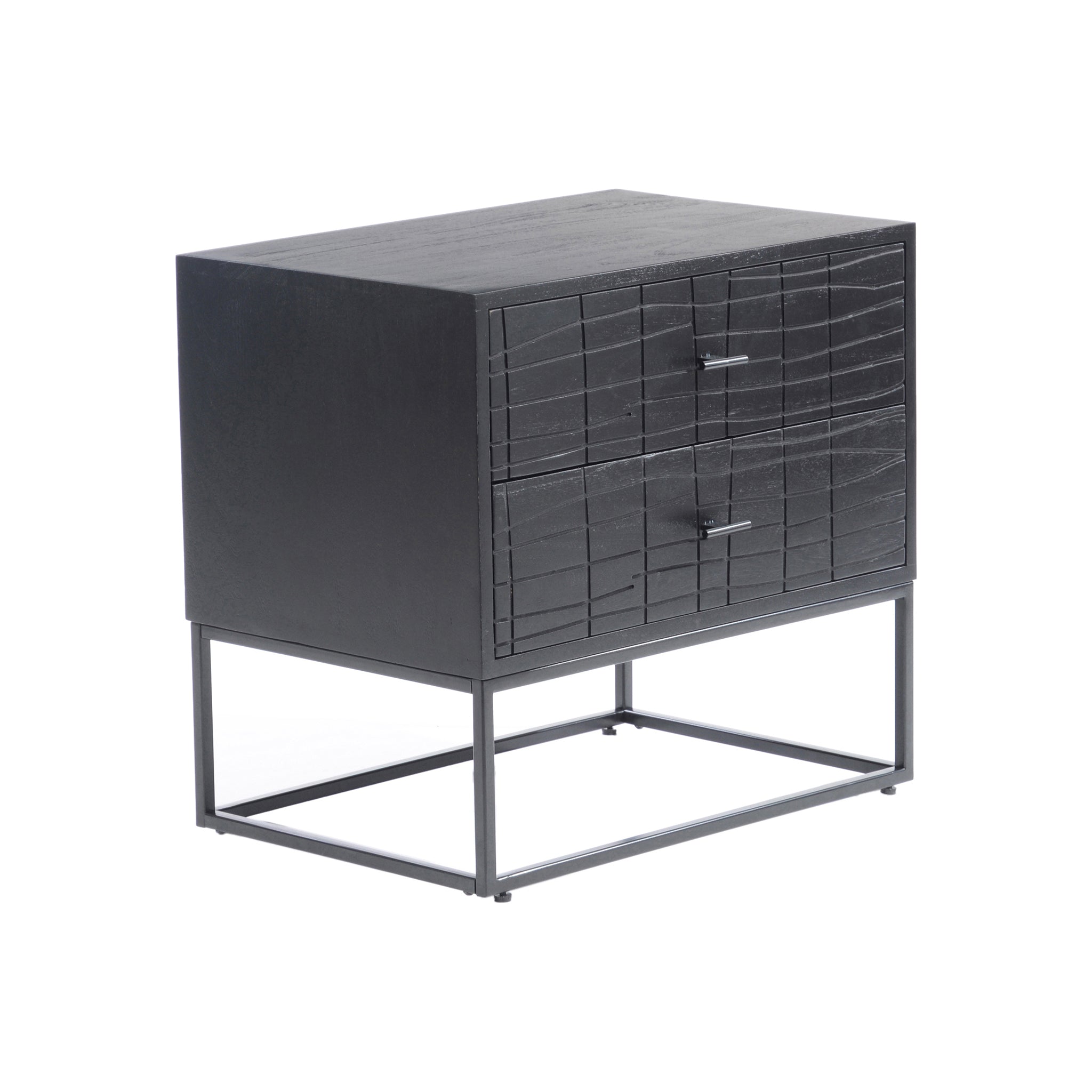 Un look naturel et élégant. La table de chevet Whitehaven est dotée de deux tiroirs coulissants aux détails texturés. Un cadre en fer élégant soutient ce meuble minimaliste. Disponible en naturel et en noir.