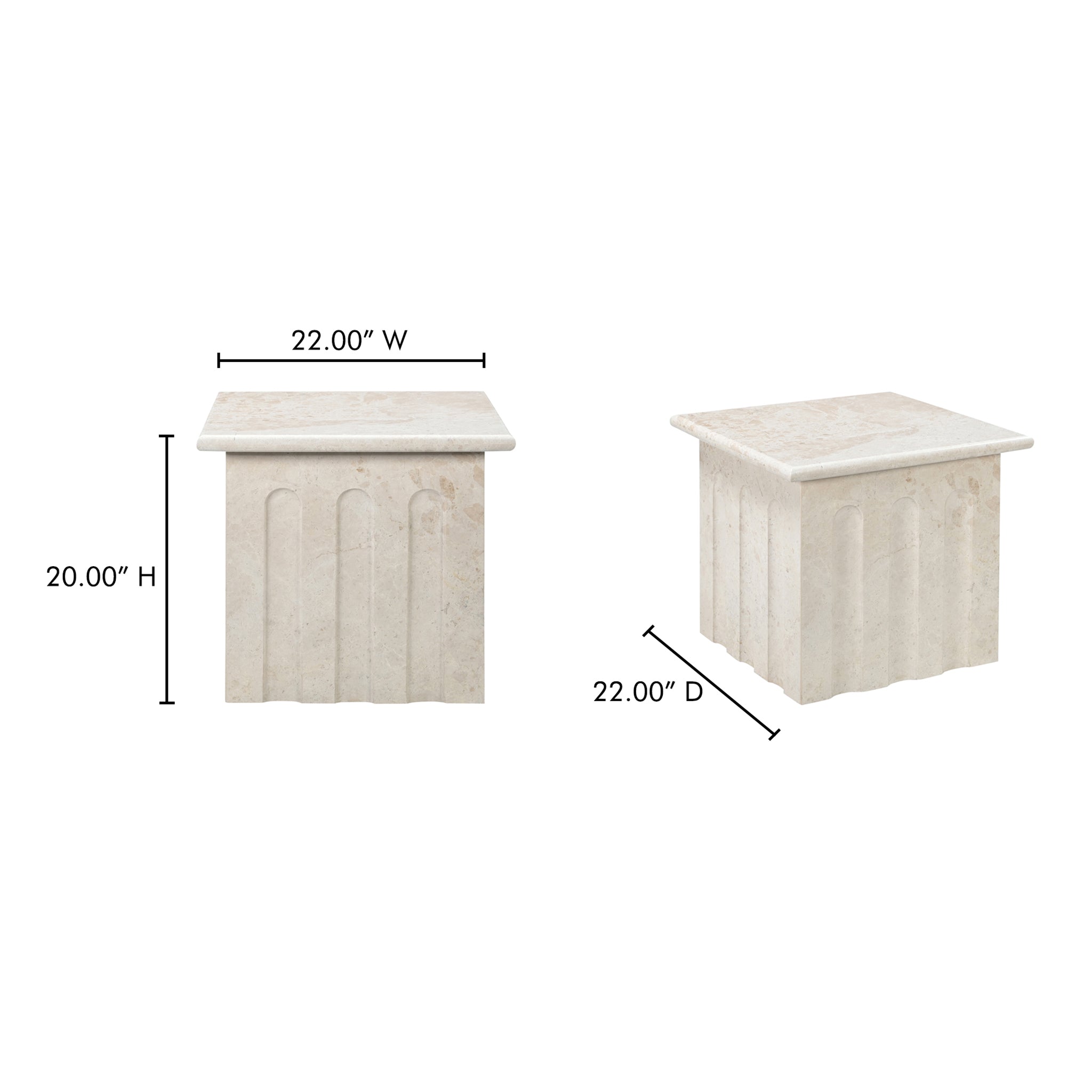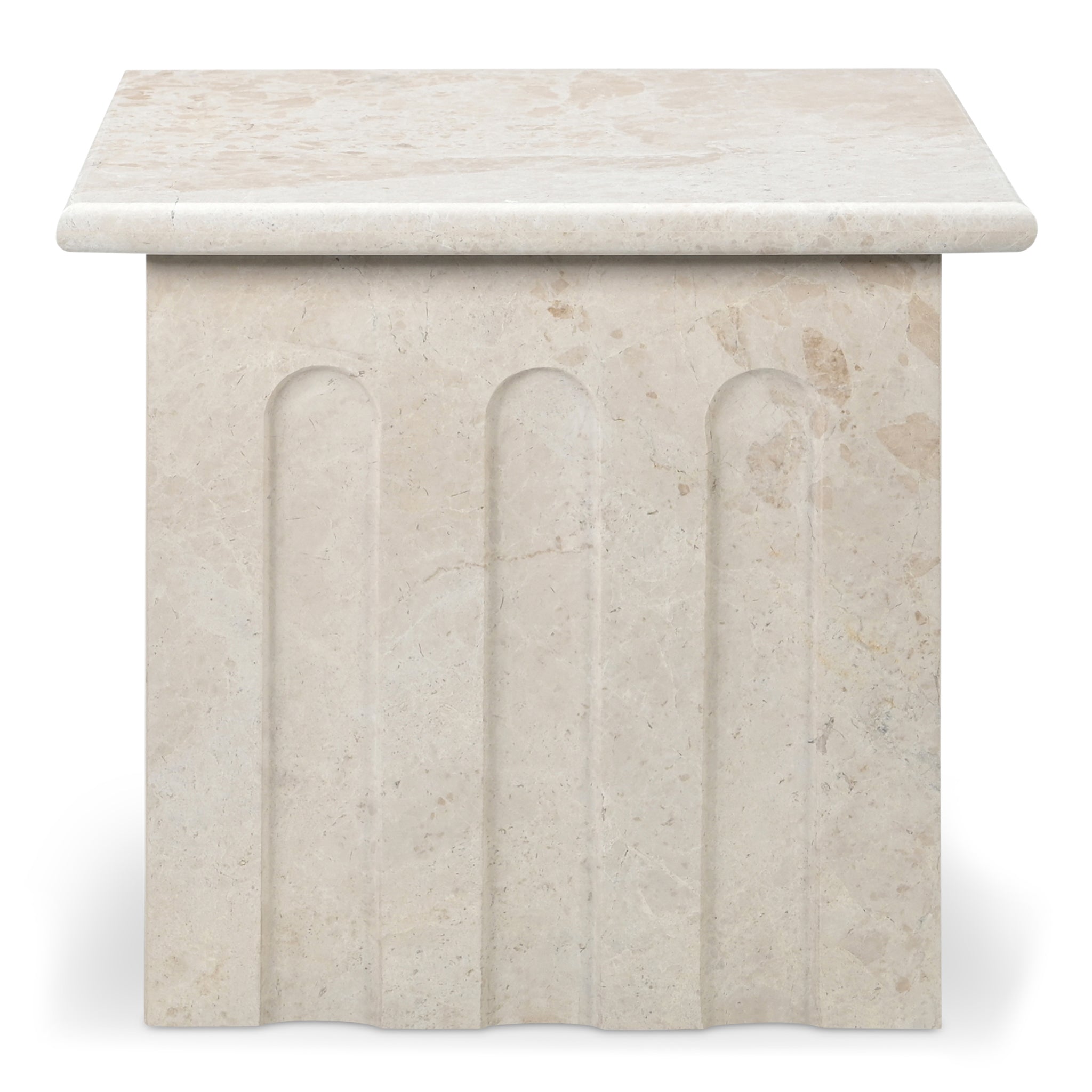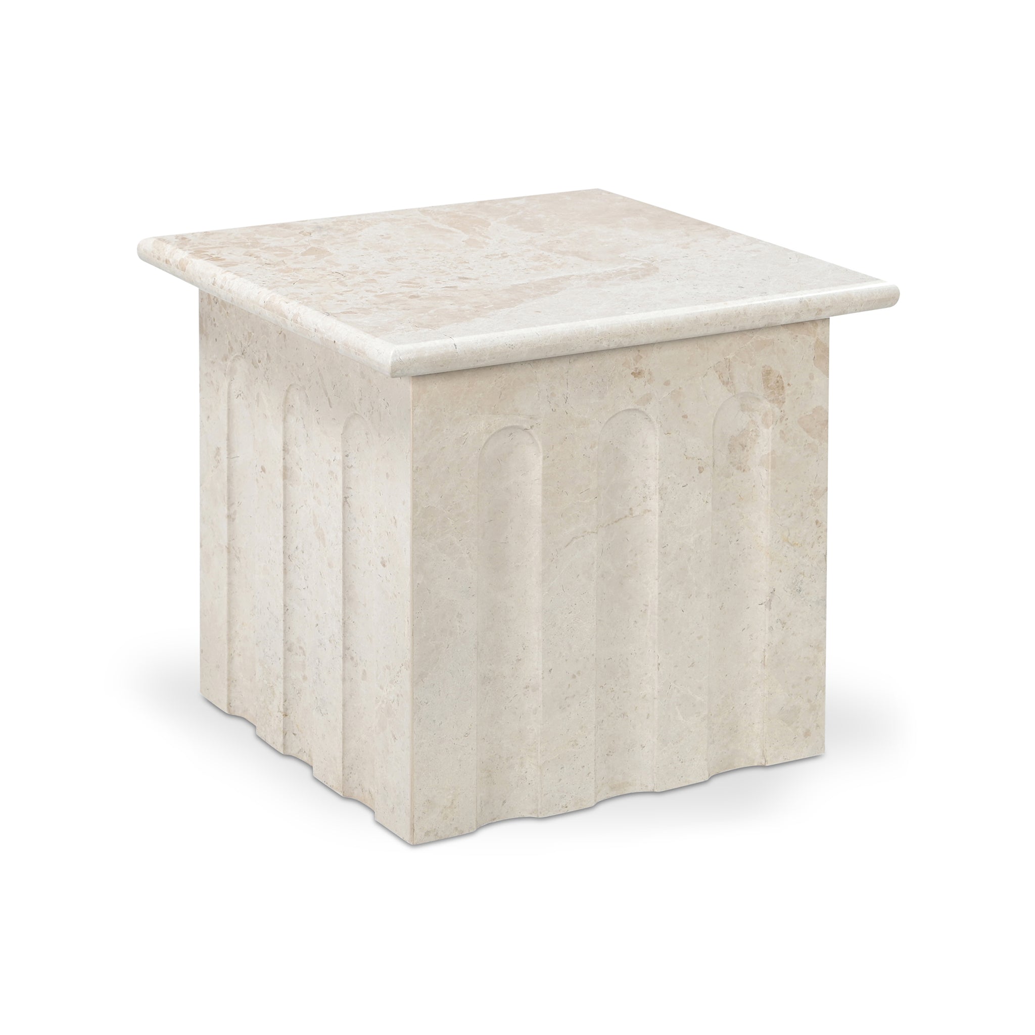 La table d'appoint Forum en beige crème de Gillian Segal Marble allie grandeur antique et simplicité moderne. Inspirée par la beauté architecturale profonde de Rome, cette table rend hommage aux colonnes emblématiques qui bordent la cité antique, revisitées dans une forme rectiligne et épurée. Fabriquée en marbre, elle capture l'essence de la majesté romaine tout en s'intégrant harmonieusement aux espaces contemporains, témoignant d'un design intemporel revisité.