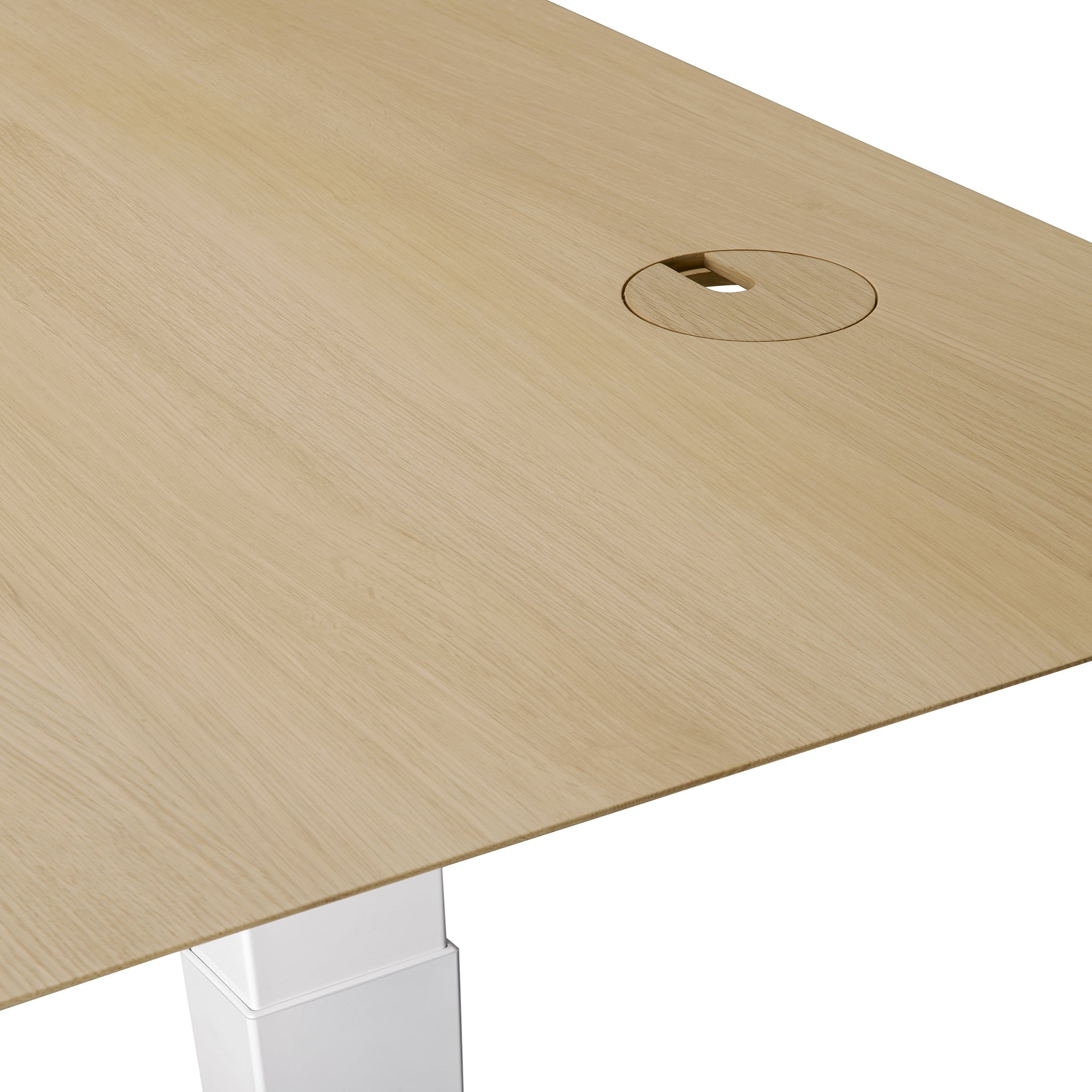 Le bureau réglable Bok a été conçu pour préserver la santé et une bonne posture. Le système motorisé intégré aux pieds permet d'ajuster la hauteur du plateau à votre convenance. Ainsi, vous pouvez facilement passer de la position assise à la position debout tout au long de la journée. Choisissez entre des pieds en métal blancs ou noirs et un plateau en chêne ou en chêne teinté noir.