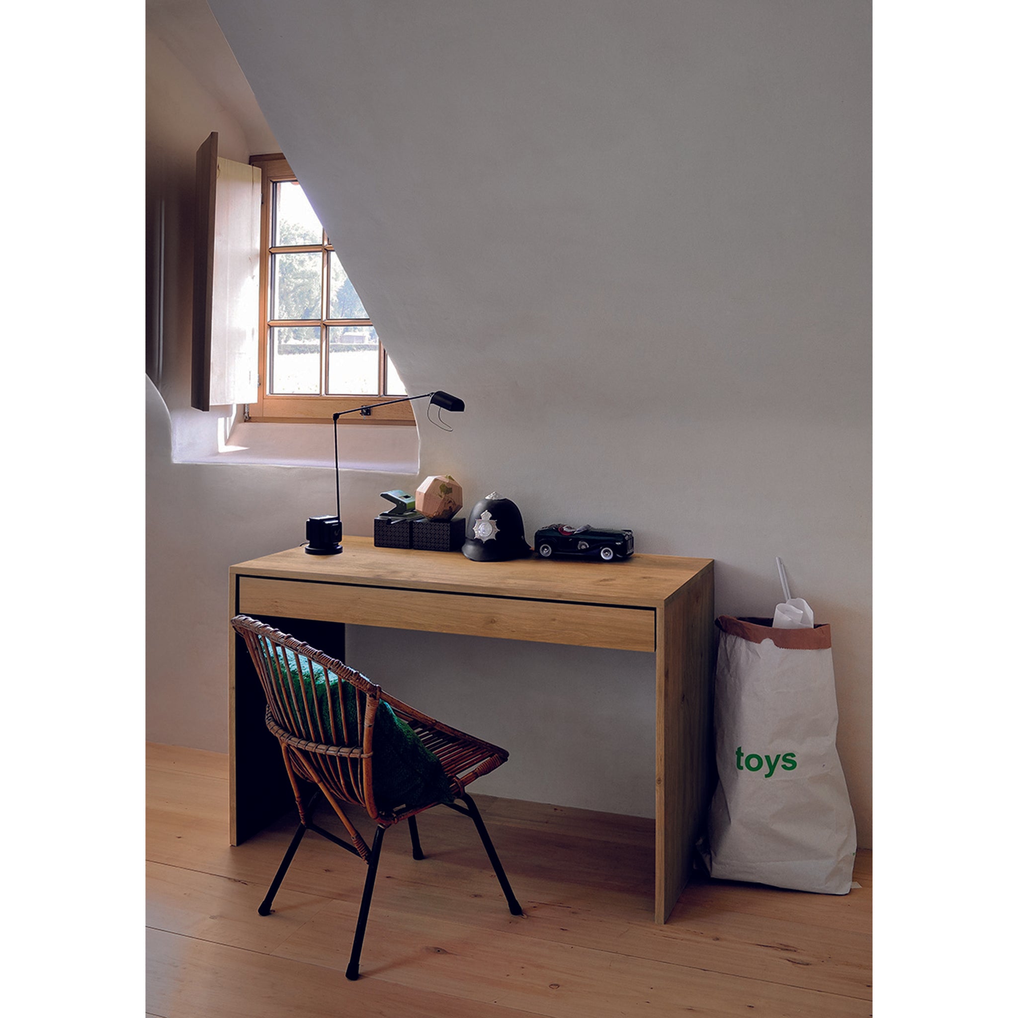 Ajoutez une touche chaleureuse à votre espace de travail avec le bureau Wave. Fabriqué en bois massif, il est doté d'un tiroir à ouverture par pression.