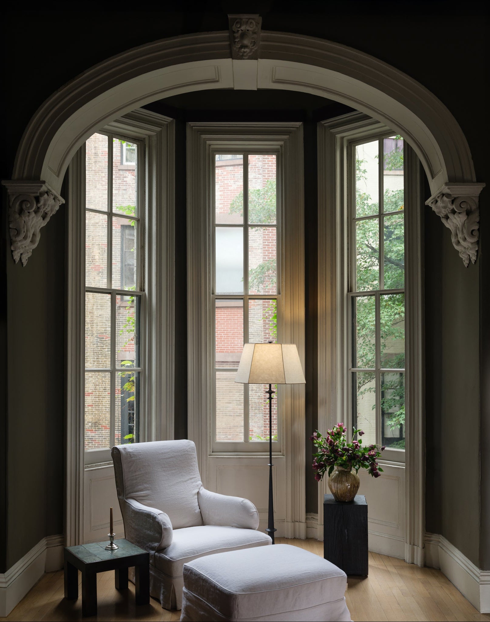 Prolongeant naturellement le lampadaire Cy, la collection Celmins transpose la chaleur et la texture des matériaux artisanaux dans des formes architecturales épurées. Confectionnés en papier fait main, les abat-jour angulaires sont ornés de surpiqûres couleur champignon, un détail raffiné qui témoigne du savoir-faire artisanal. Disponible en applique murale à une ou deux lumières et en lampadaire assorti, Celmins apporte une touche sculpturale et délicate aux intérieurs. Augusta Hoffman pour Hudson Valley Lighting.