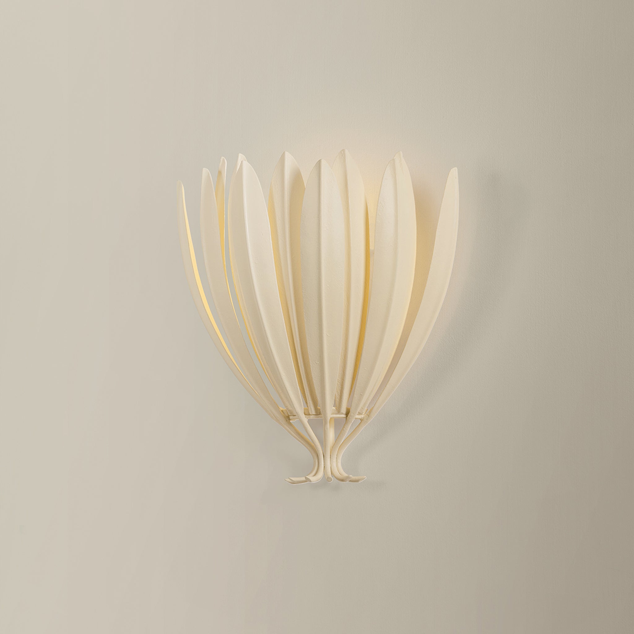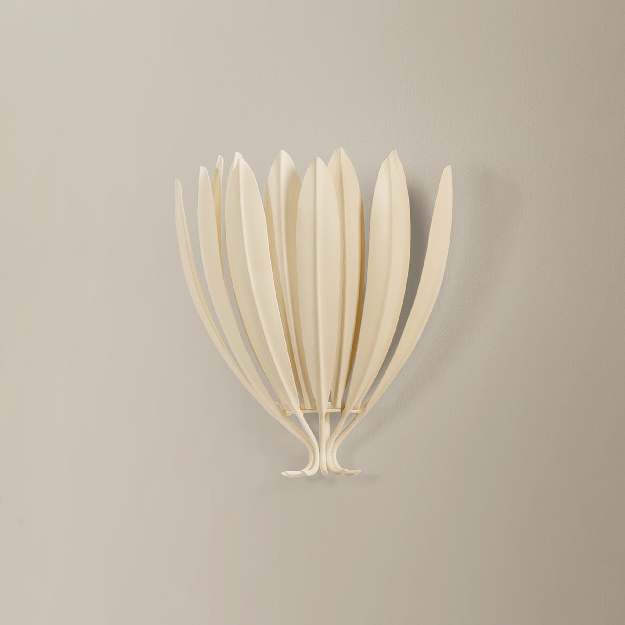 S'inspirant d'un motif botanique, la collection Whitfield se caractérise par des pièces métalliques allongées en forme de feuilles qui forment un abat-jour lumineux autour de la source lumineuse. La lumière, diffusée à travers le feuillage étagé, se décline en applique murale à une lumière, en plafonnier semi-encastré à trois lumières et en trois tailles de lustre. La collection Whitfield est proposée en finition Feuille d'or vintage ou dans notre nouvelle finition Crème plâtre, une alternative douce au blanc.