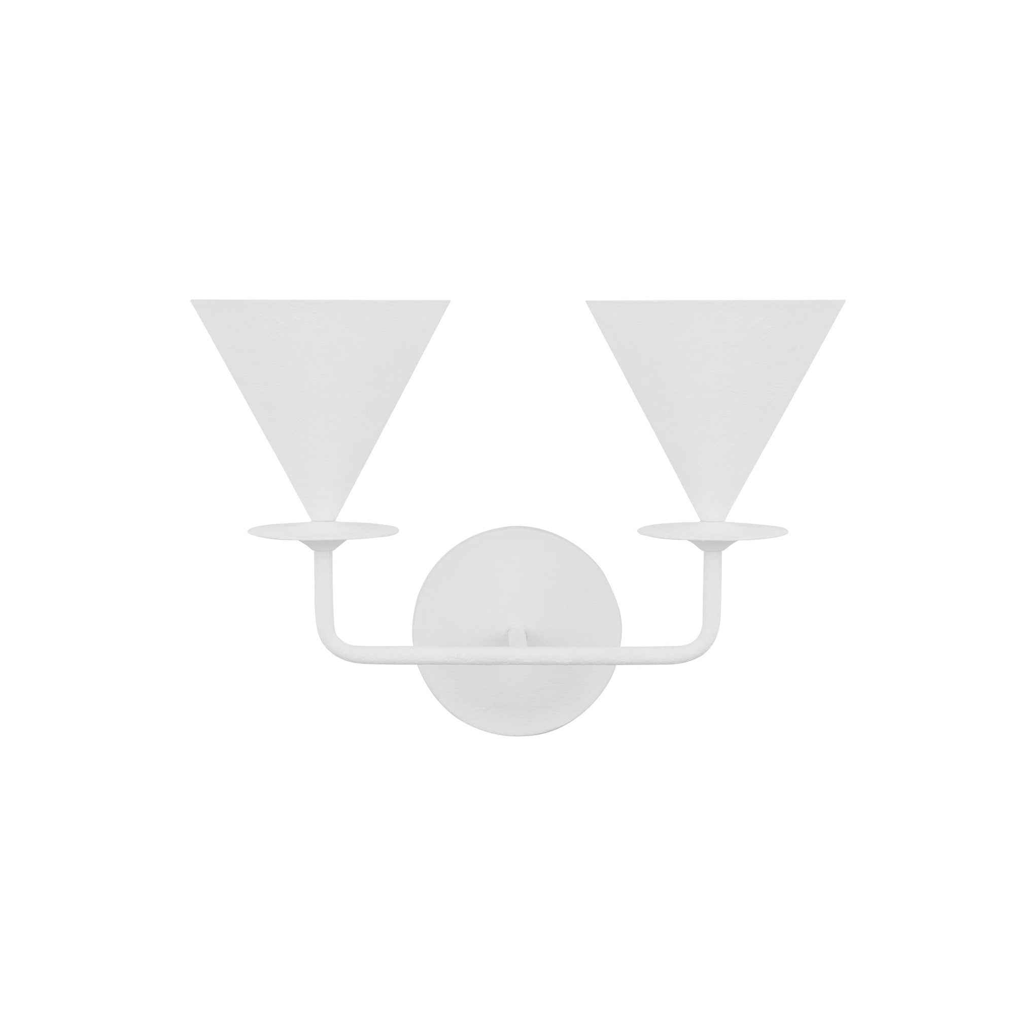Applique murale d'intérieur Cornet à 2 lumières, à intensité variable, en plâtre moulé, finition blanc mat, avec abat-jour en acier moulé. Dotée d'abat-jour coniques inversés en plâtre moulé blanc, Cornet reflète les influences du design européen des années 1920-1940, de l'Art déco au style italien du milieu du siècle, et même les torchères classiques de Serge Roche.