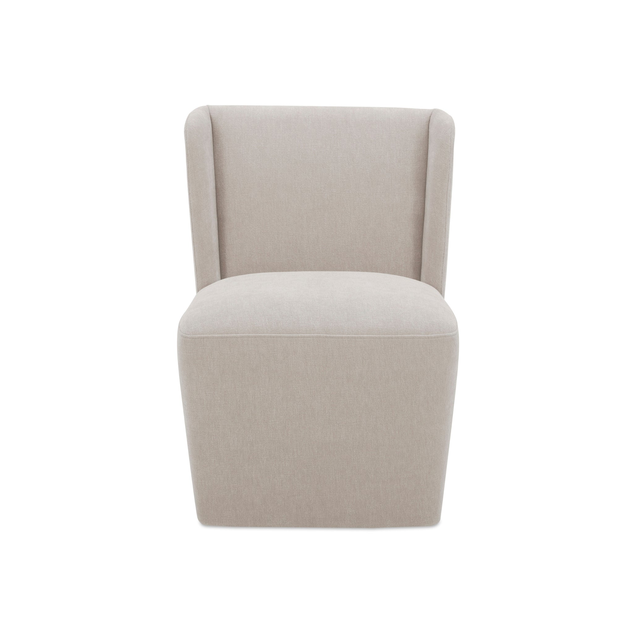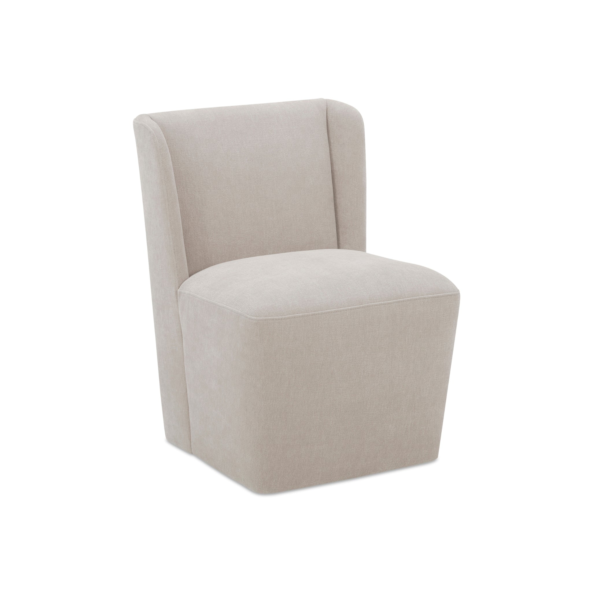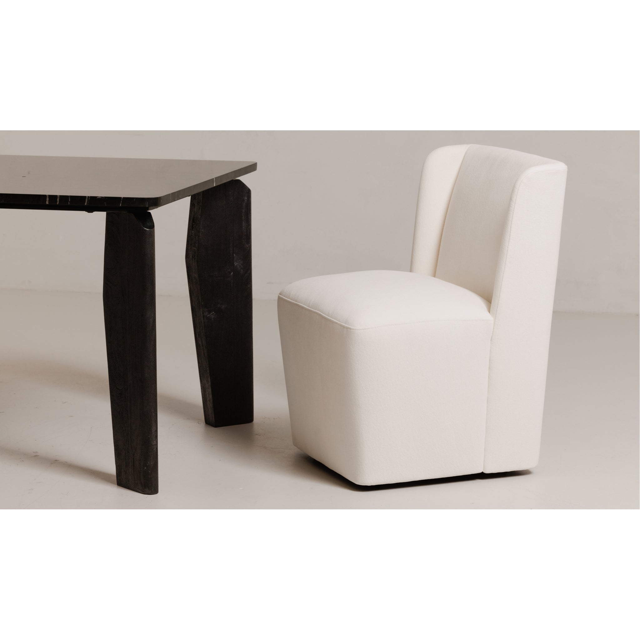 La chaise de salle à manger à roulettes Colette est synonyme de confort avec son assise et son dossier généreusement rembourrés, son dossier légèrement incurvé et ses roulettes qui glissent sans effort sur le sol. Fabriquée dans un tissu haute performance, doux au toucher et résistant aux taches, aux éclaboussures et à l'usure quotidienne.