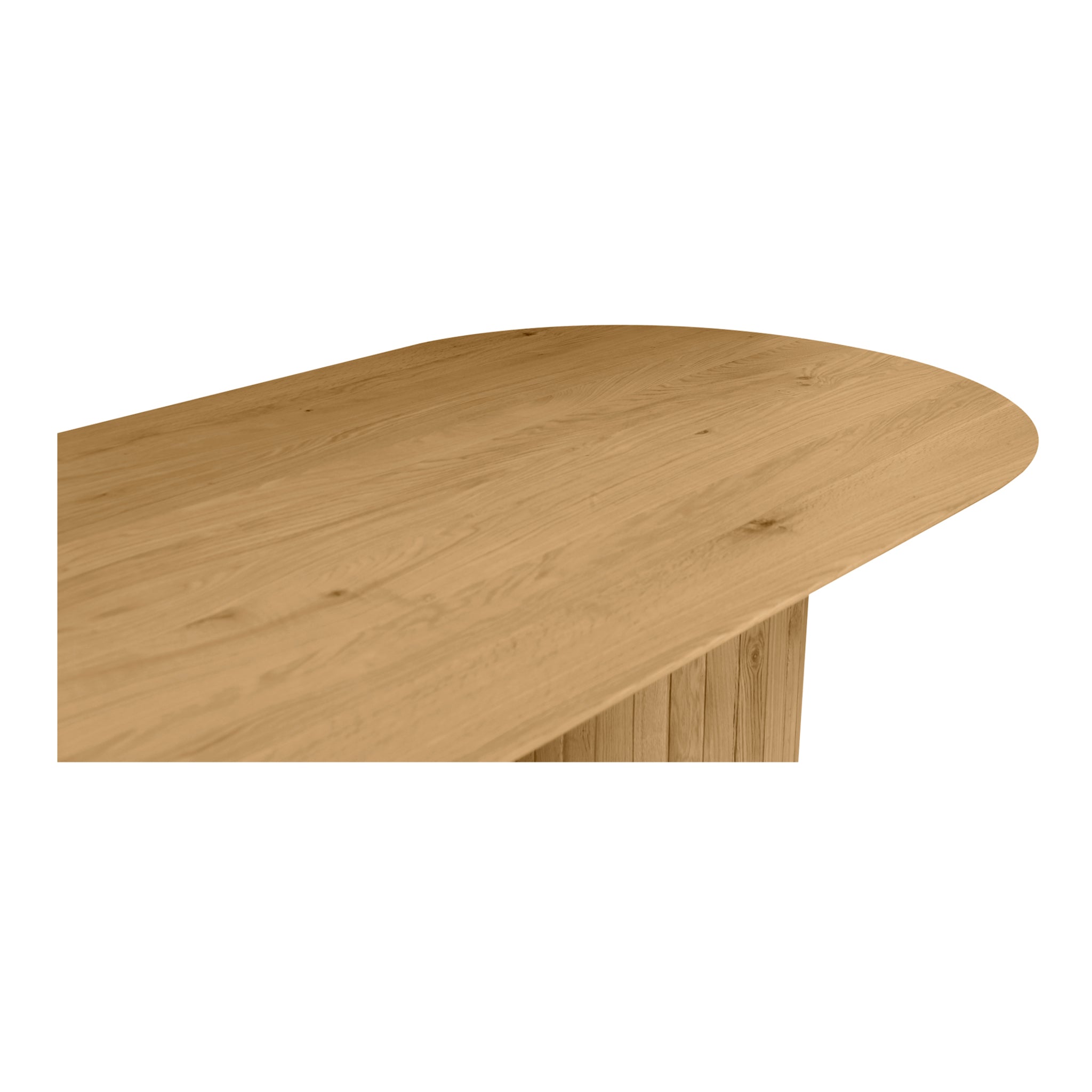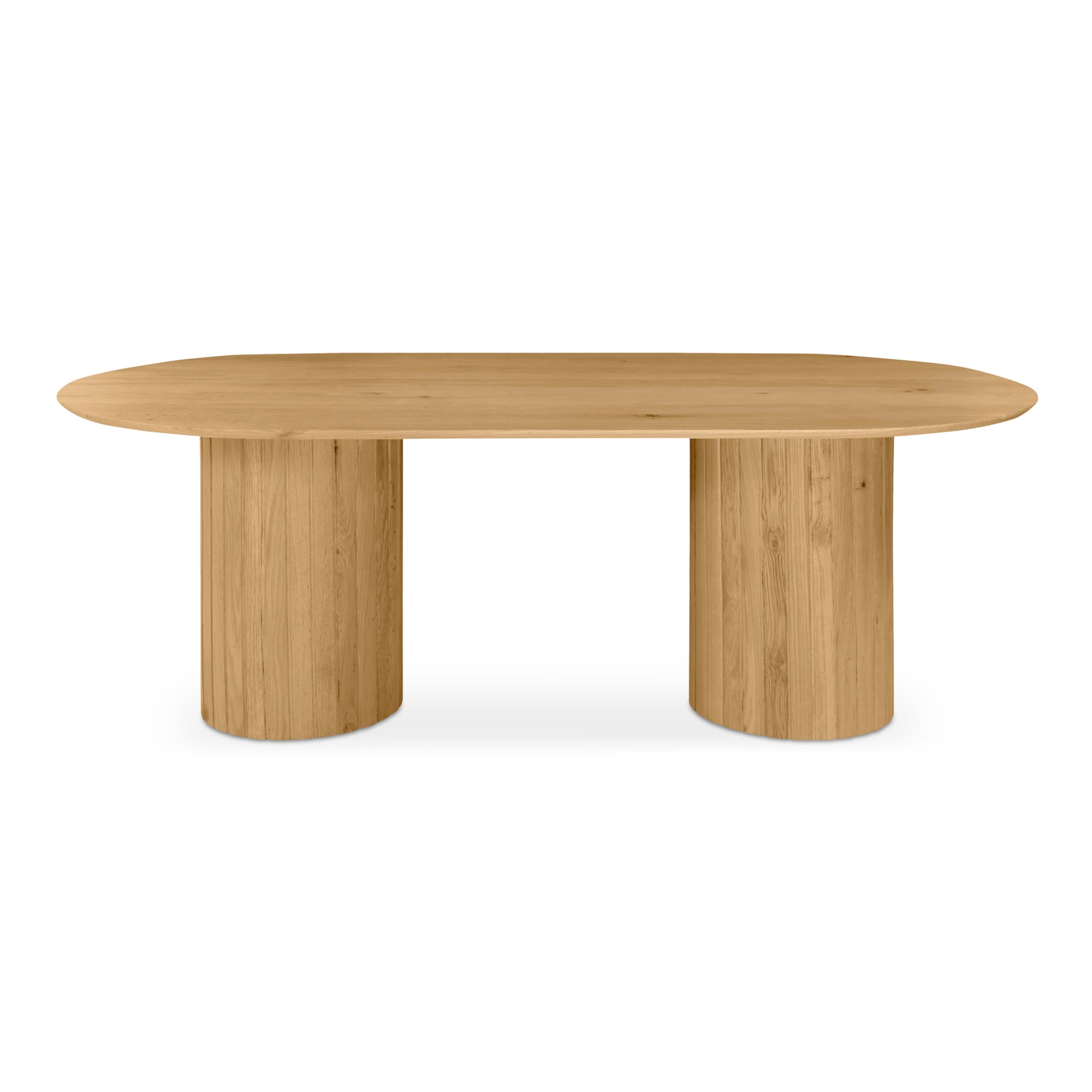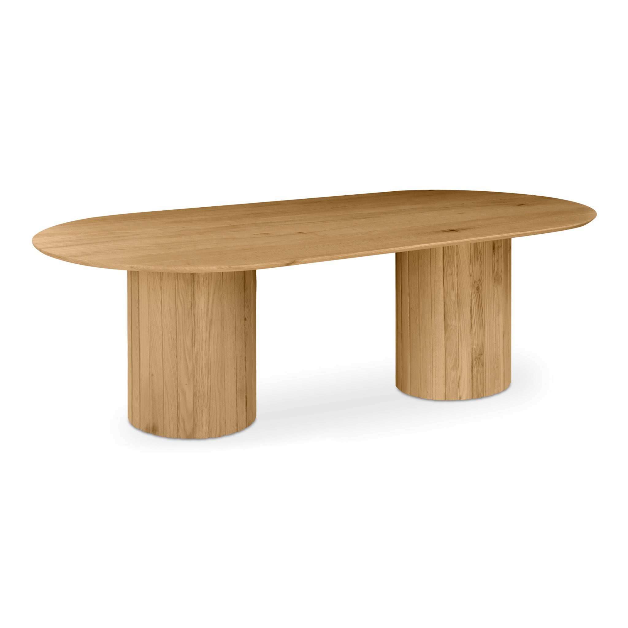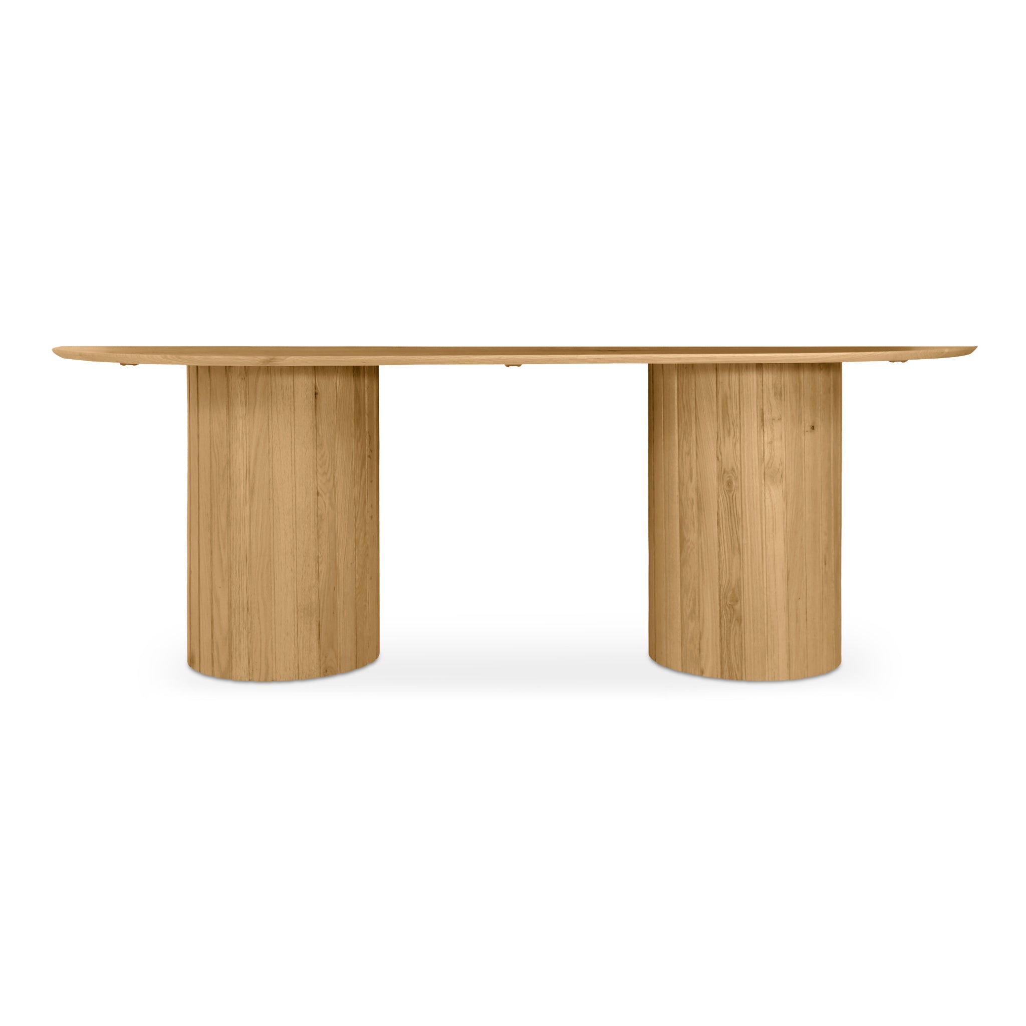 Convergence de formes et de lignes, la table à manger Pamela sera le pilier de votre salle à manger. Elle est composée de deux grandes colonnes soutenant un vaste plateau, dont les nervures délicates évoquent des ondulations et des vagues. Confectionnée en chêne massif, cette table à manger allie géométrie simple et matériaux naturels, incorporant l'élégance des proportions pour une allure audacieuse.