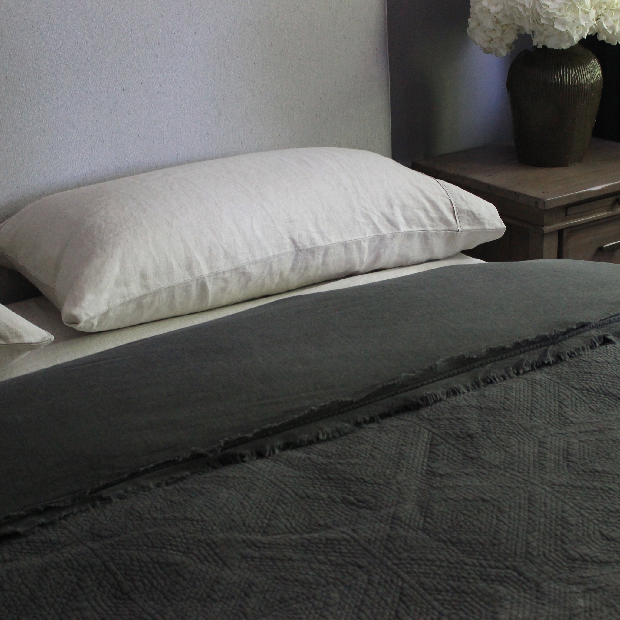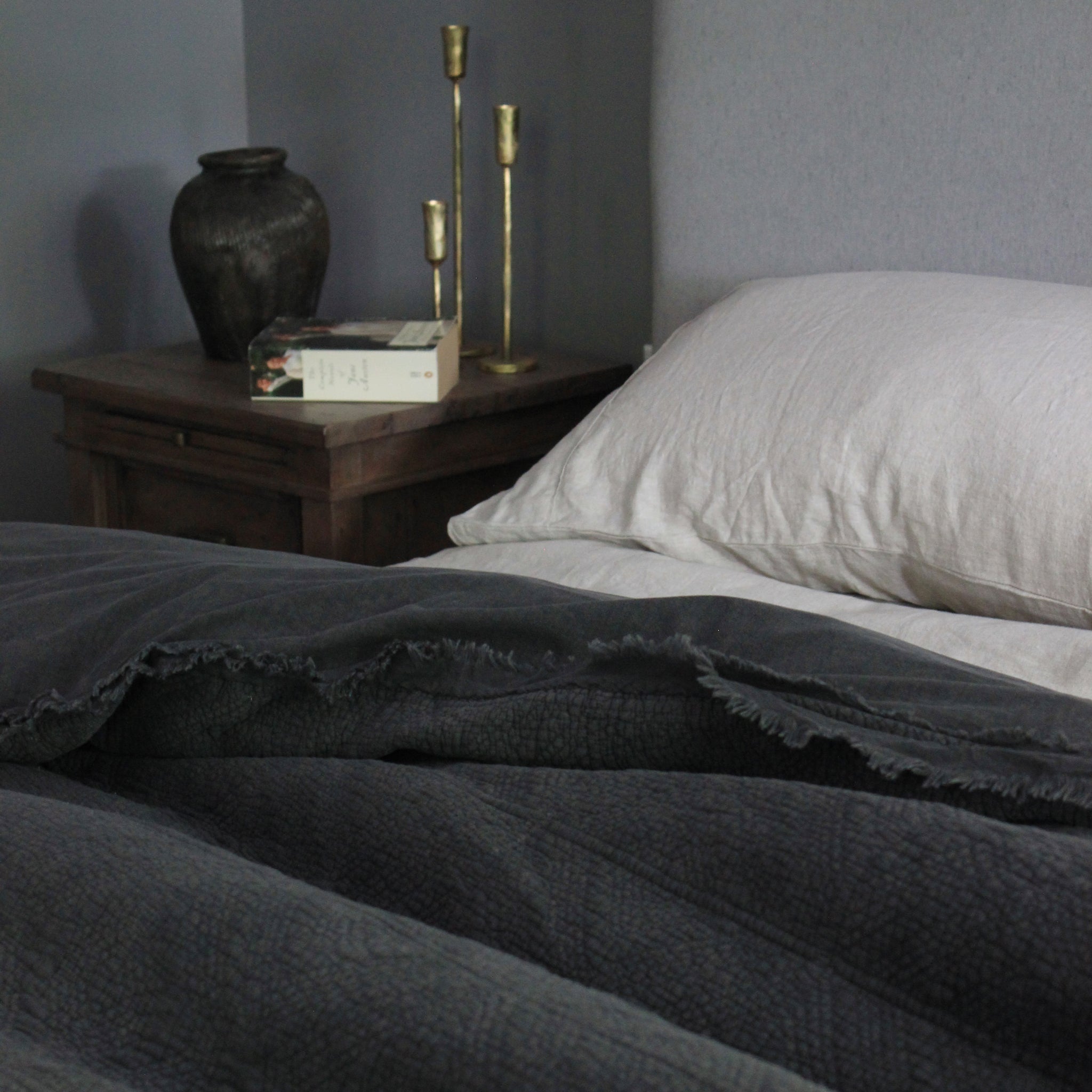 Pour transformer votre chambre, inutile d'acheter une nouvelle literie ou de nouveaux meubles ; il vous suffit d'ajouter une nouvelle housse de couette pour transformer votre espace. Nos housses de couette 100 % coton délavé de qualité supérieure offrent un style et un confort absolus, tandis que notre housse anthracite fumé est parfaite pour ajouter une touche d'élégance. Portée seule ou agrémentée de vos coussins préférés, notre housse de couette est conçue pour rendre votre lit chaleureux et douillet. Grâce à ses fermetures éclair faciles à utiliser, elle est aussi facile d'entretien que confortable. Votre lit est la pièce maîtresse de votre chambre, alors trouvez la housse de couette idéale pour le style que vous souhaitez. *Taies d'oreiller vendues séparément.