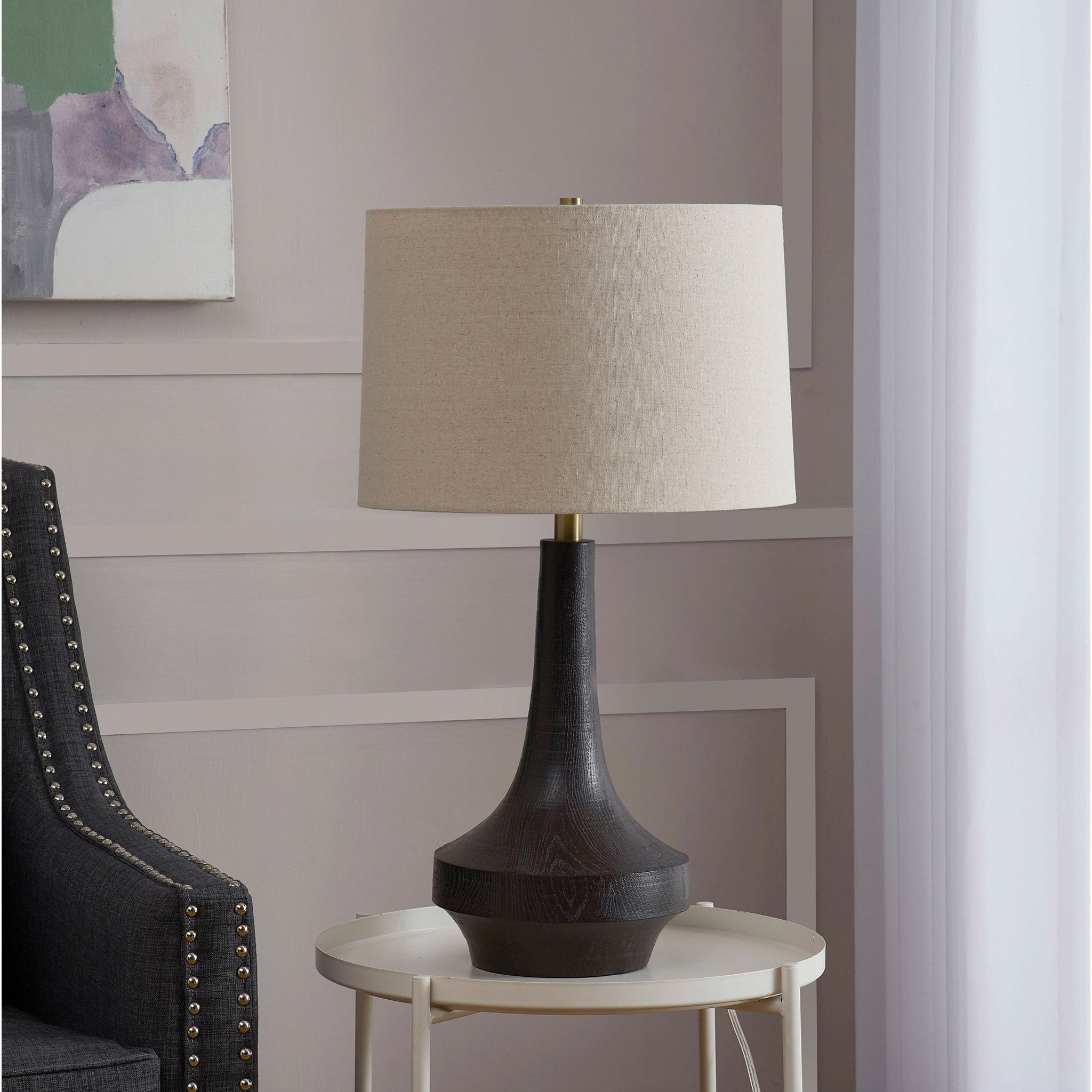 Posée sur une table d'appoint ou de chevet, cette lampe de table enveloppe votre intérieur de chaleur et de confort. Son pied en polyrésine peinte en grain de bois brun foncé et son abat-jour en lin naturel lui confèrent une esthétique organique, tout en restant épurée et actuelle. Son design confère à la pièce une ambiance harmonieuse et chaleureuse.