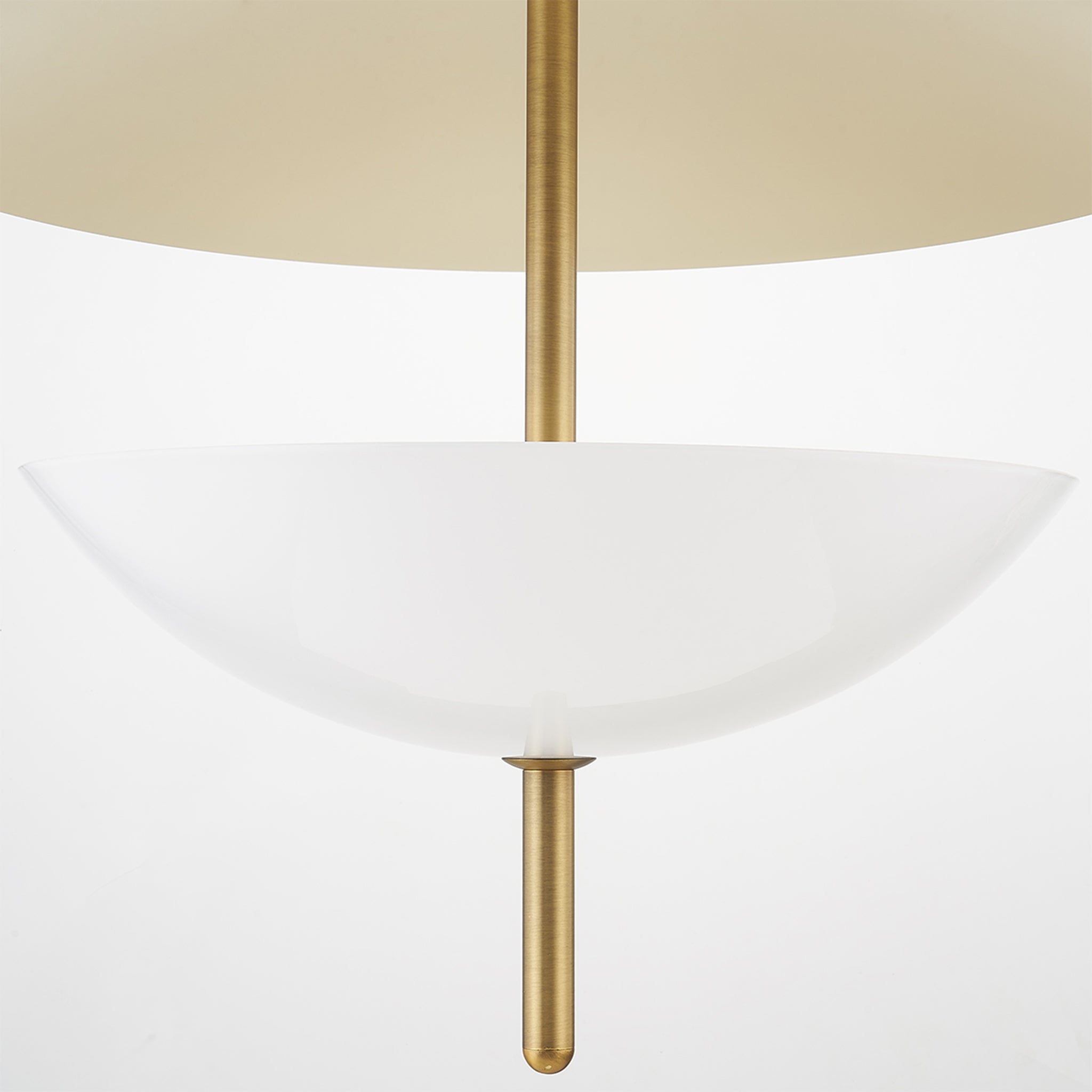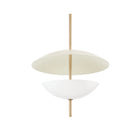 Dion incarne un design organique et moderne avec sa tige ronde et fine en laiton patiné qui transperce deux abat-jour bombés aux tons chauds et neutres. L'abat-jour en verre opale brillant du dessous diffuse une douce lumière et projette une lumière vers le haut qui se reflète sur la coupelle Soft Sand, plus grande, située au-dessus. Cette jolie suspension incarne une sophistication subtile.