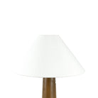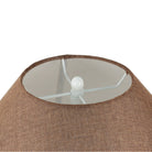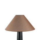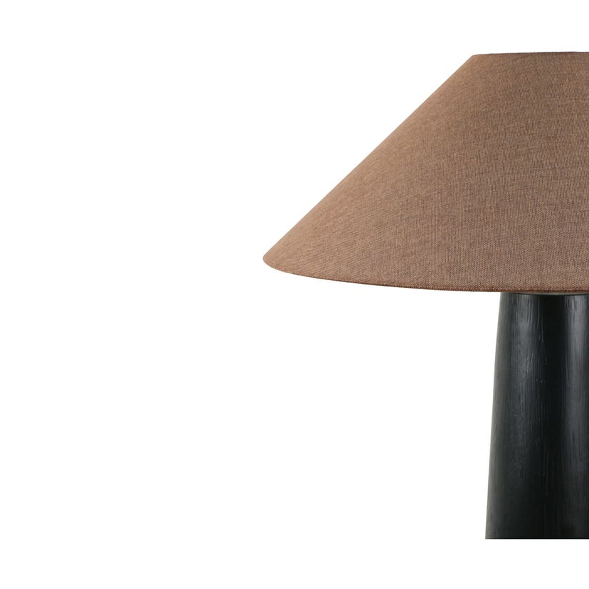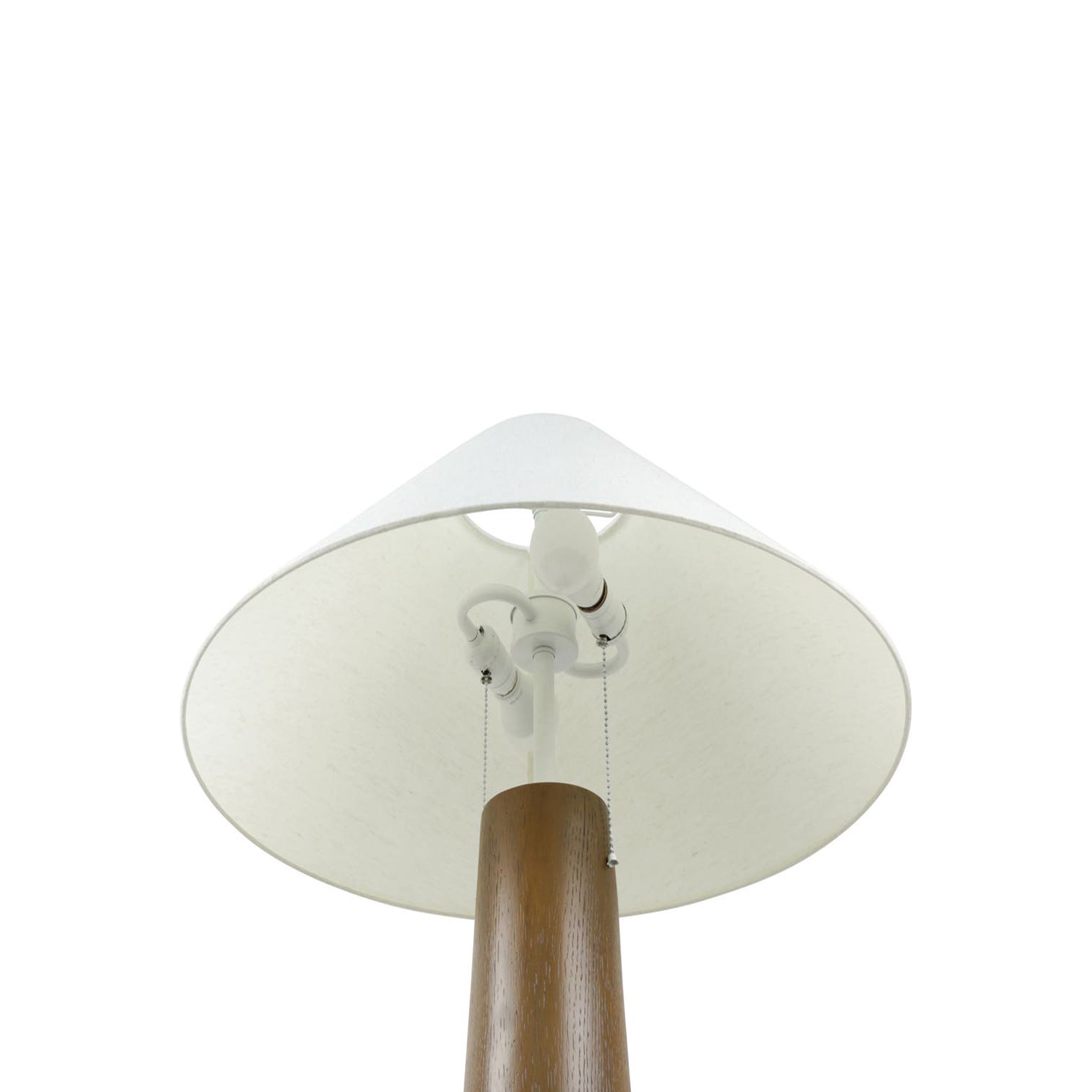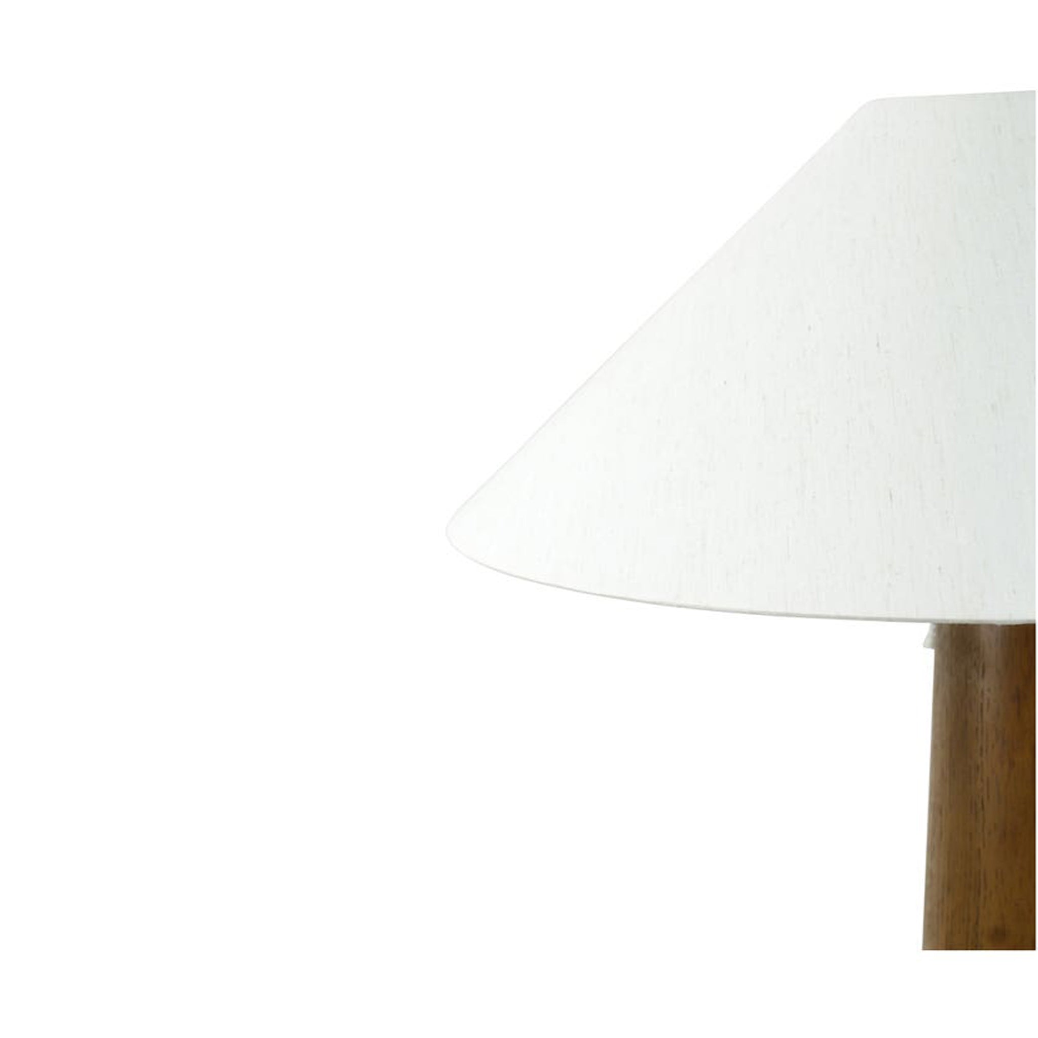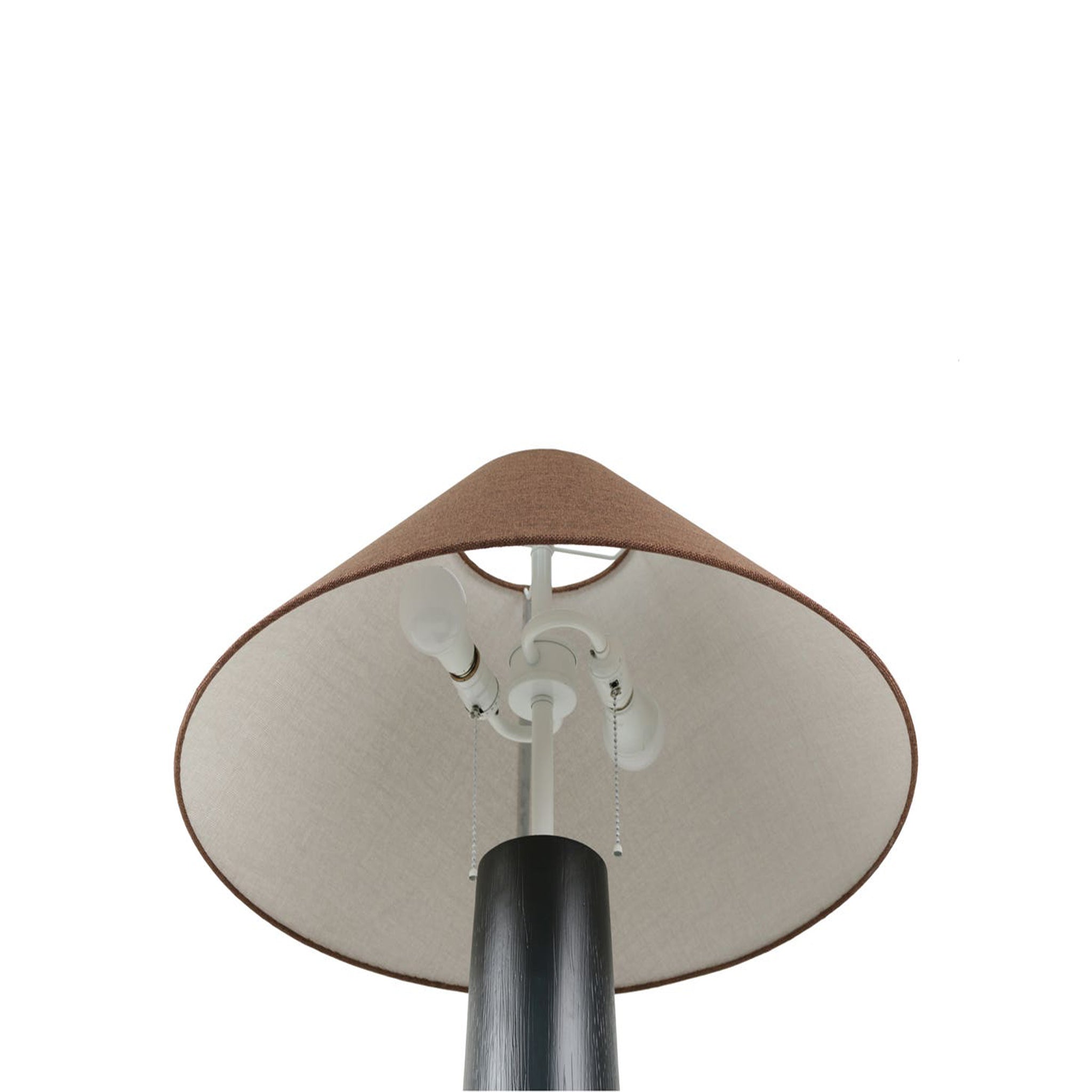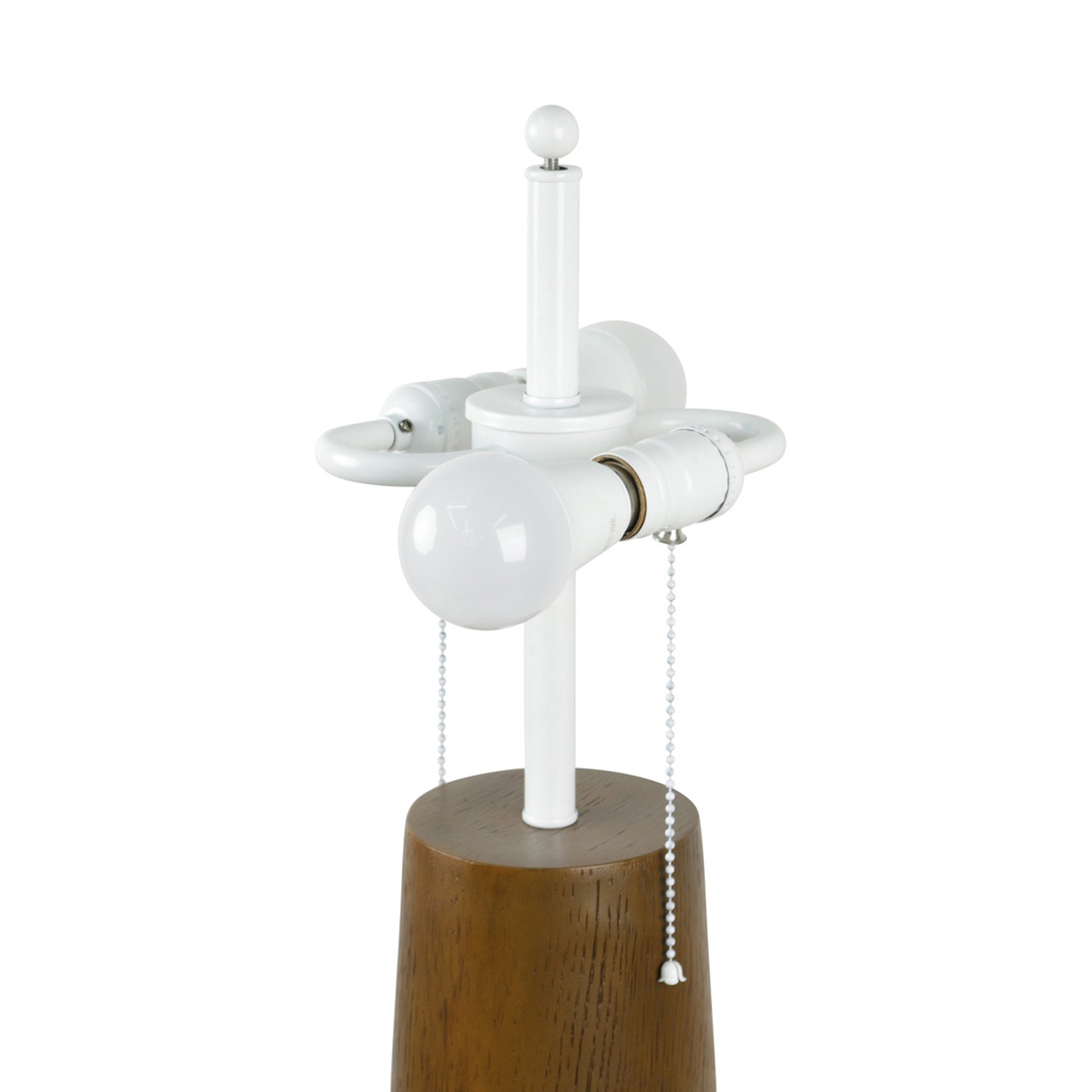 Matériau : abat-jour en lin, base en résine avec finition grain de bois, interrupteur à tirette à chaîne, cordon en tissu noir de 8 pi