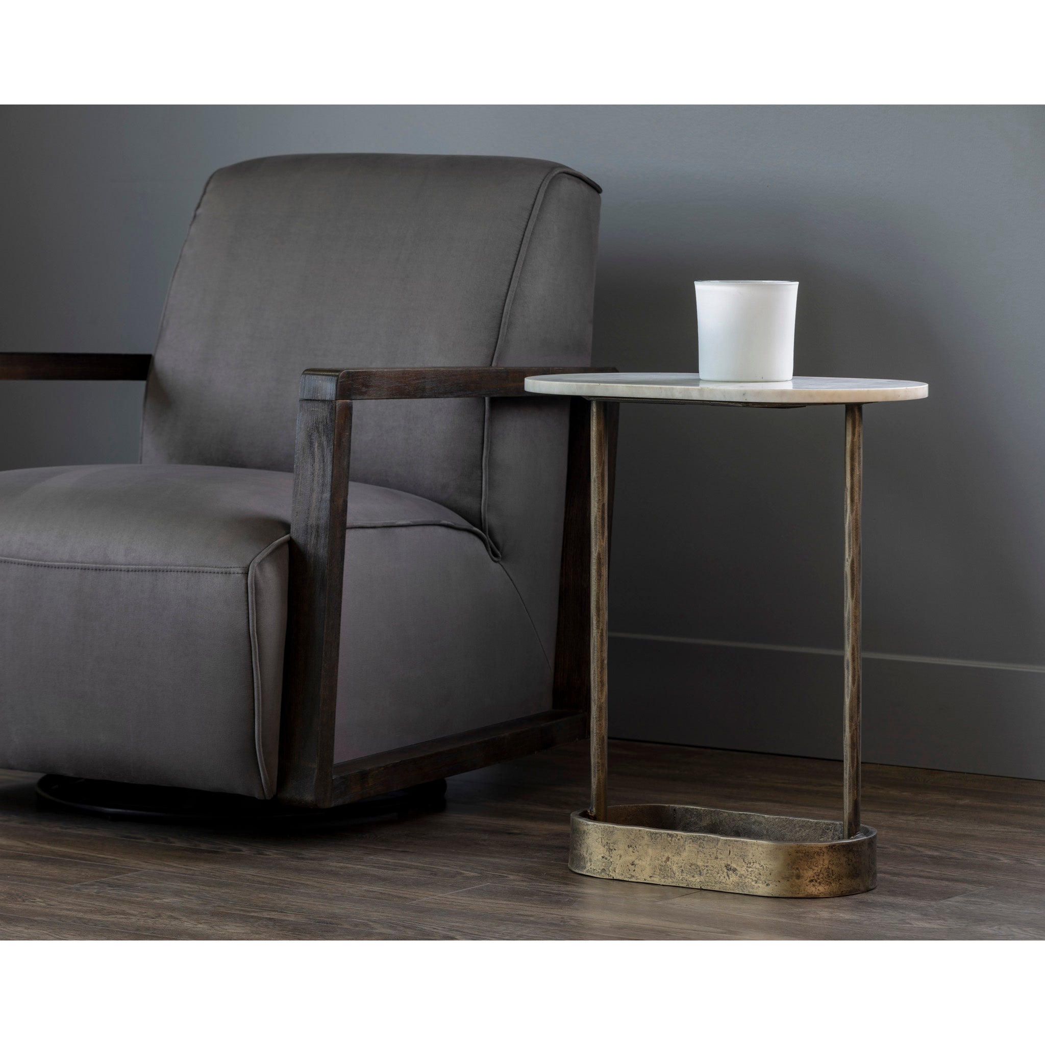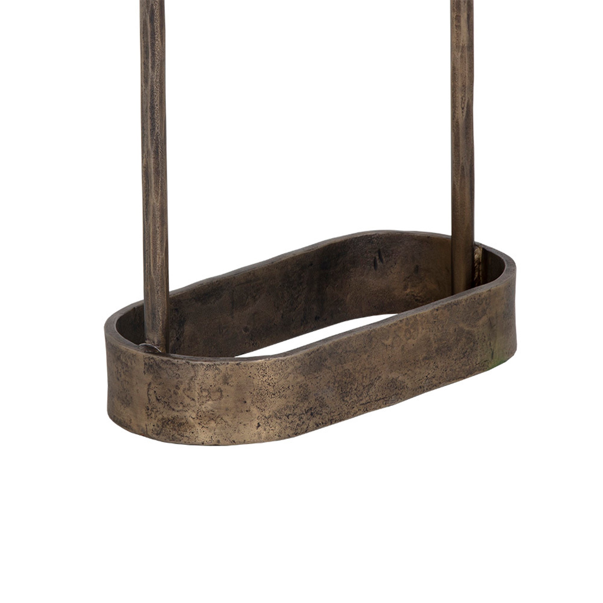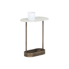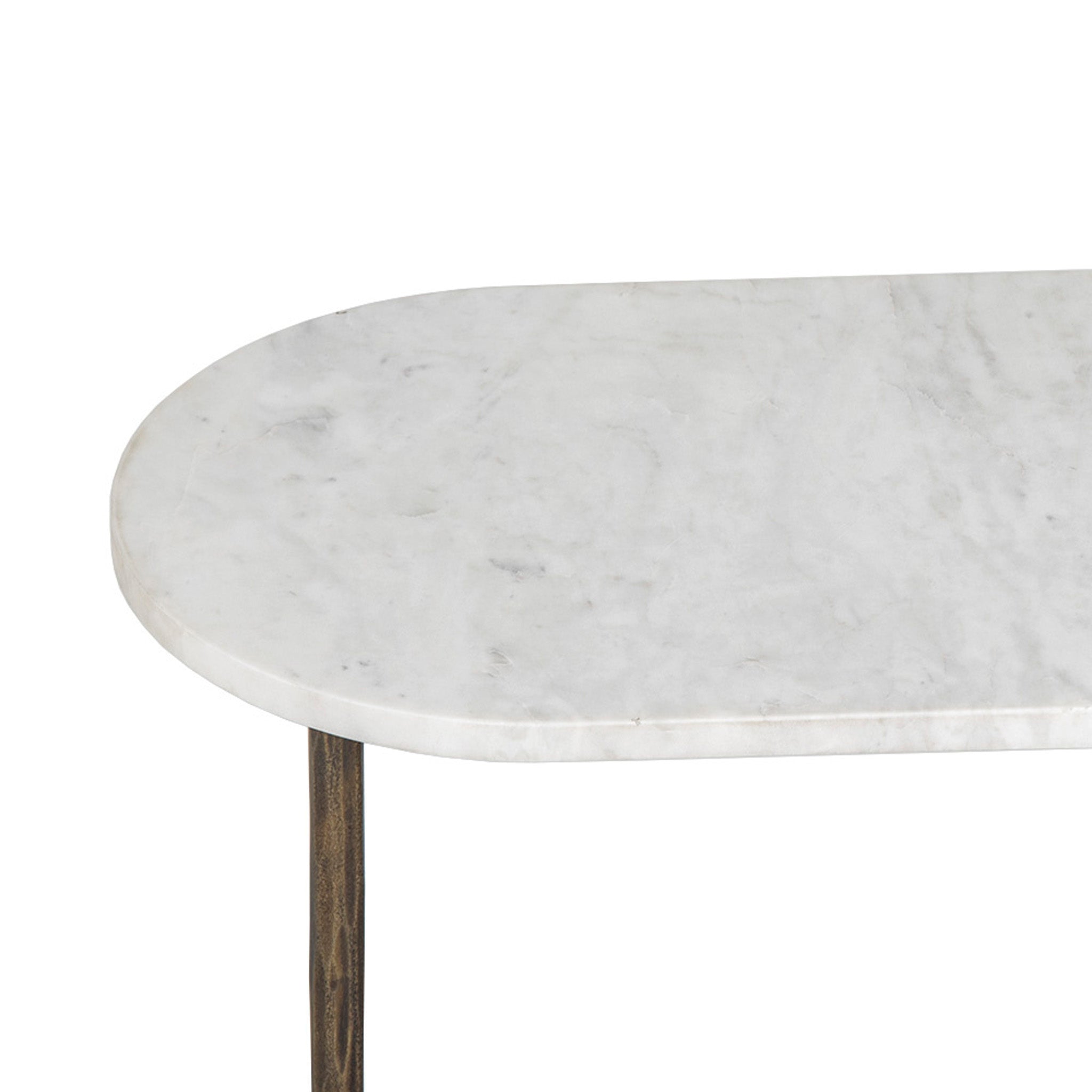Une table d'appoint inspirée des voyages autour du monde, aux lignes minimalistes. Son plateau en marbre blanc repose sur un piètement structuré en fer martelé, finition laiton antique. Fabriquée en Inde, cette pièce est le fruit d'un savoir-faire raffiné, fruit de l'artisanat local. Les imperfections naturelles du matériau, telles que fissures, marques et variations de couleur, confèrent à cette table un caractère unique.