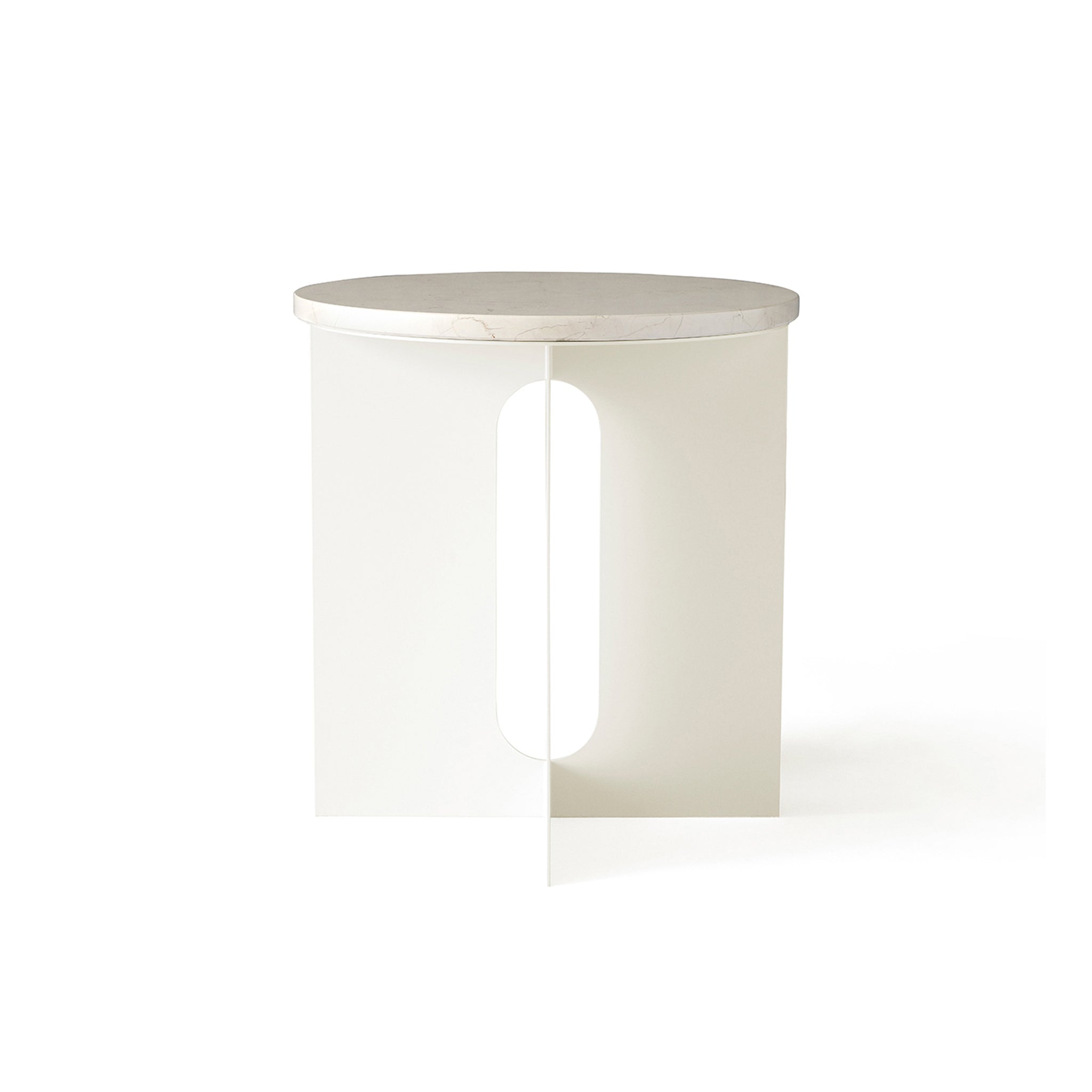 Le plateau en marbre raffiné de cette table, qui dépasse légèrement des pieds pour créer un équilibre harmonieux, et ses pieds larges et plats contrastants – découpés au laser avec précision – lui permettent de s'intégrer facilement à différents styles de décoration. Le plateau et le piètement sont vendus séparément : le premier est disponible en acier inoxydable, en acier laqué ivoire ou noir, le second en cinq variétés de marbre uniques pour une personnalisation complète.