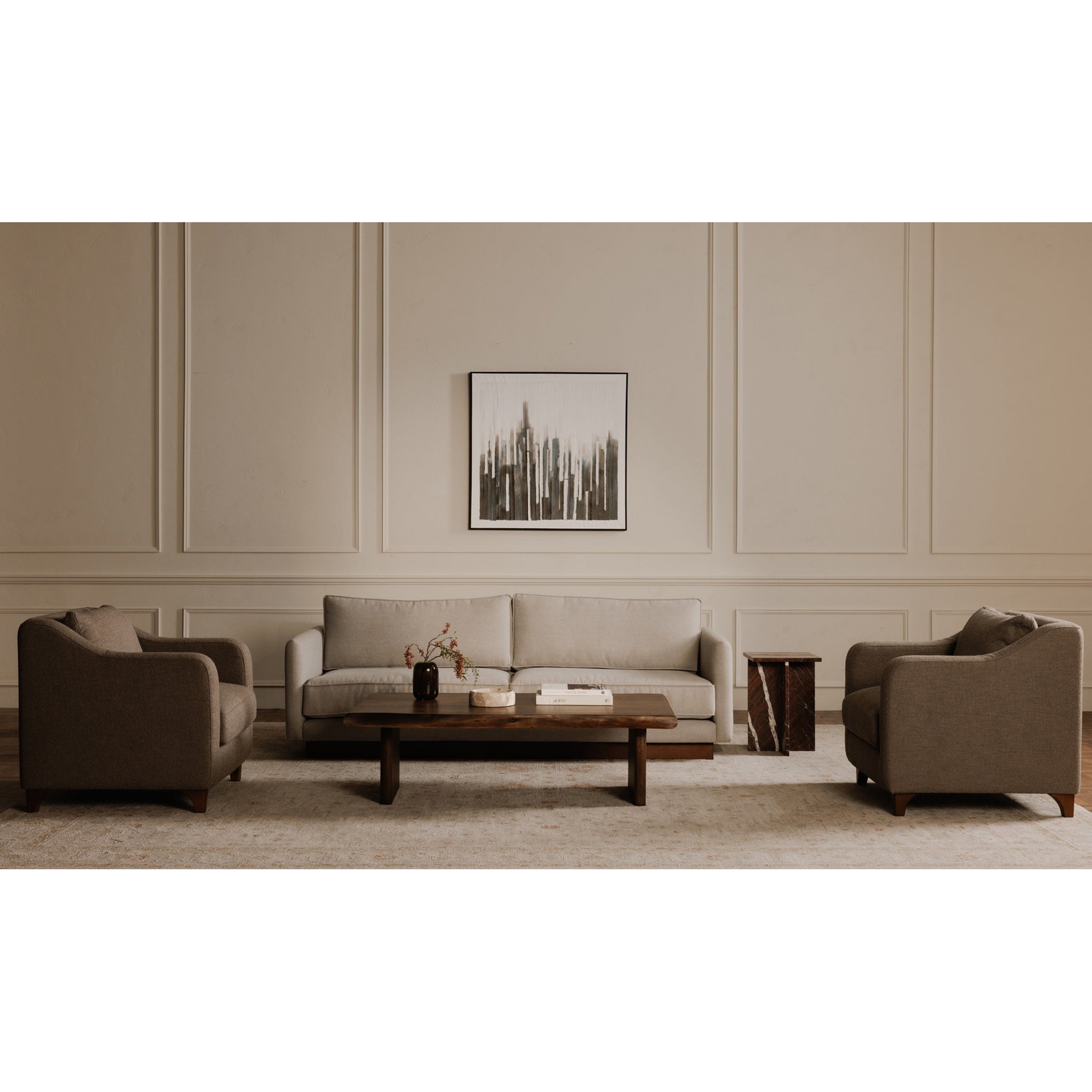 Inspiré par des influences traditionnelles et transitionnelles, le fauteuil d'appoint Blair allie simplicité intemporelle et attrait commercial grâce à son revêtement en microboucles texturé. Ses coussins amovibles et réversibles offrent un confort polyvalent, ses accoudoirs légèrement inclinés et son dossier haut offrent une posture accueillante, ainsi que ses pieds courbés en bouleau massif qui ajoutent de l'élégance à la structure.