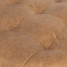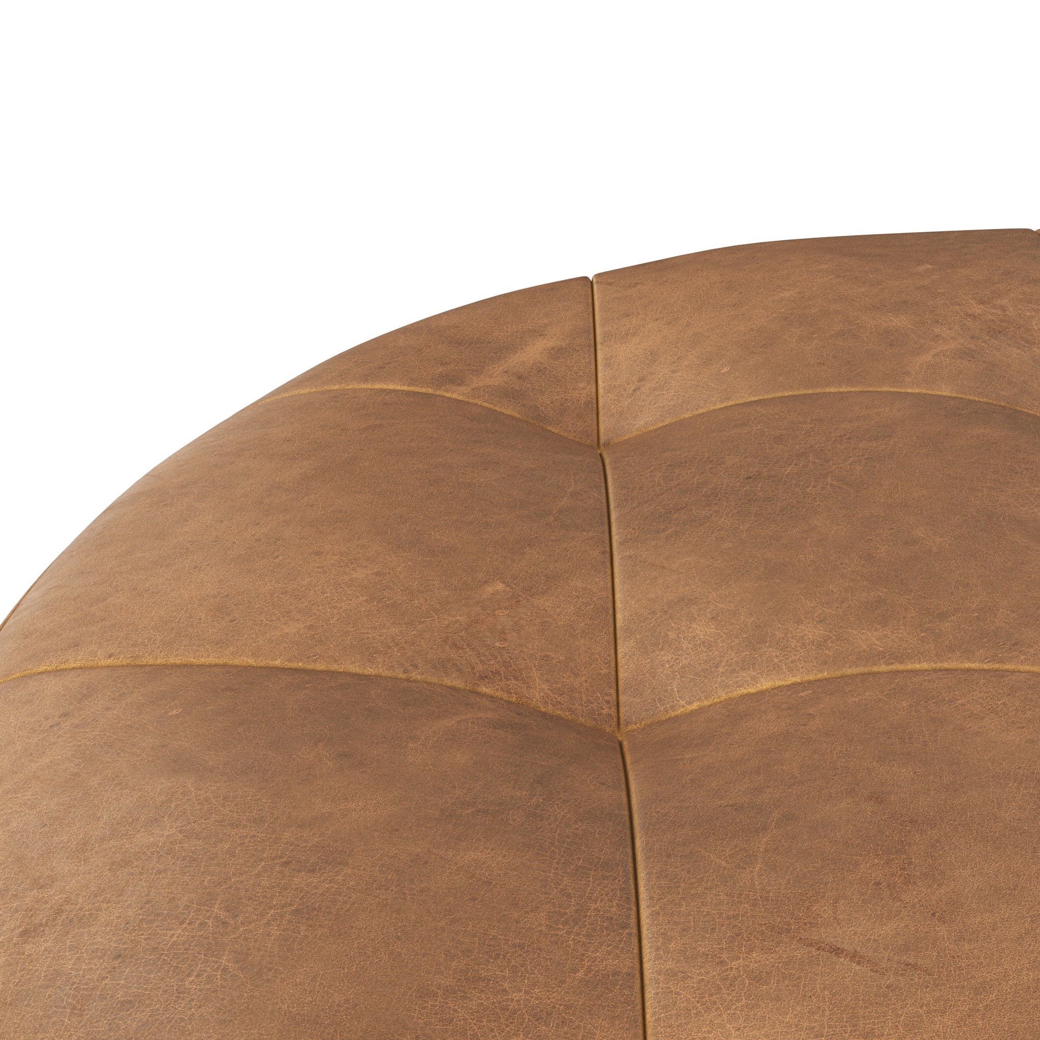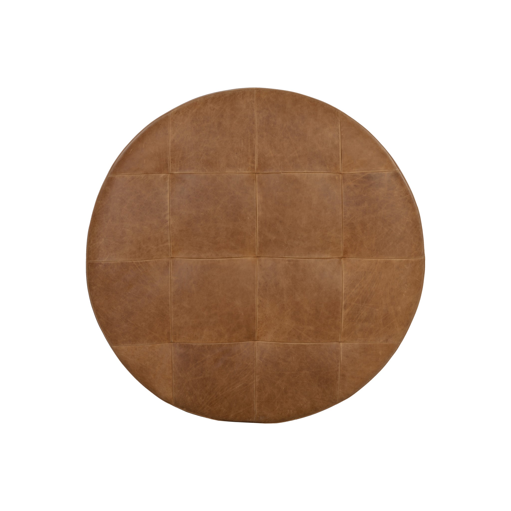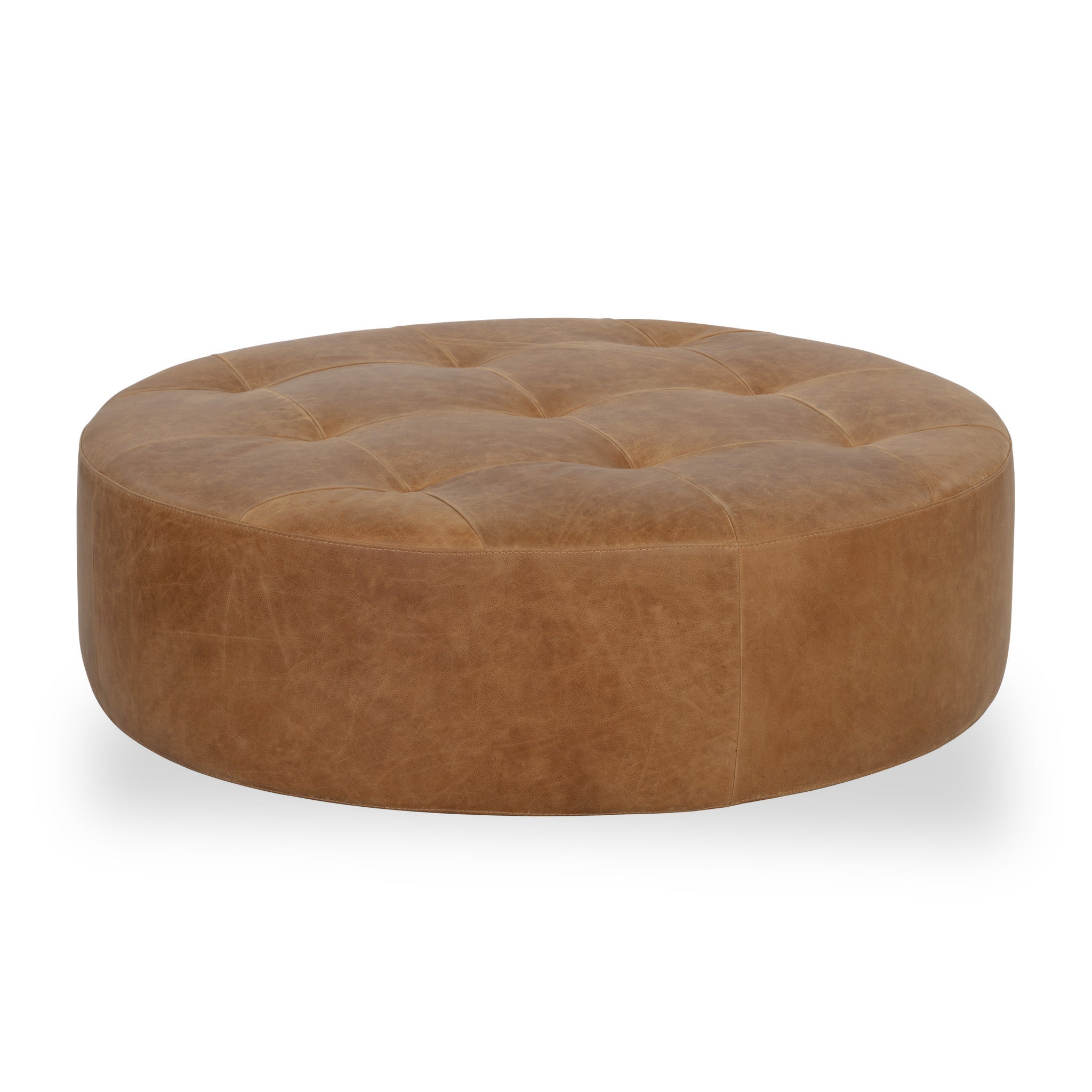 Un pouf rond classique, de fabrication italienne, orné d'un capitonnage discret pour une touche d'élégance raffinée. Revêtu de cuir de vachette italien camel 100 % naturel, gage de qualité et de durabilité. Ce cuir riche, teint dans la masse, présente une finition pleine fleur aux huiles et cires naturelles qui subliment la beauté du grain. Socle en hêtre massif.