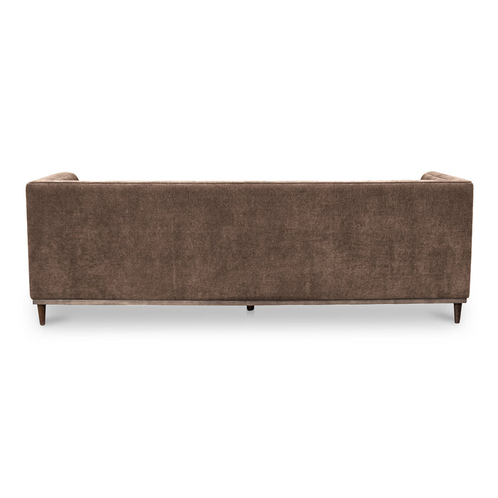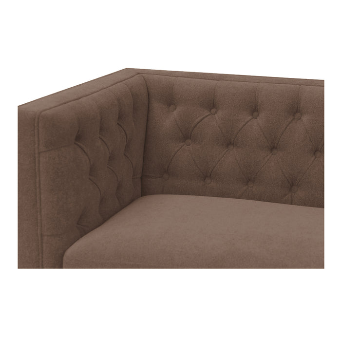 Le canapé Felicia allie élégance traditionnelle et robustesse contemporaine, grâce à son revêtement en tissu texturé. Sa forme classique, rehaussée de détails capitonnés, rappelle l'esthétique traditionnelle, tandis que les lignes épurées et la finition chaleureuse en noyer de son piètement en bois lui confèrent une touche de modernité.