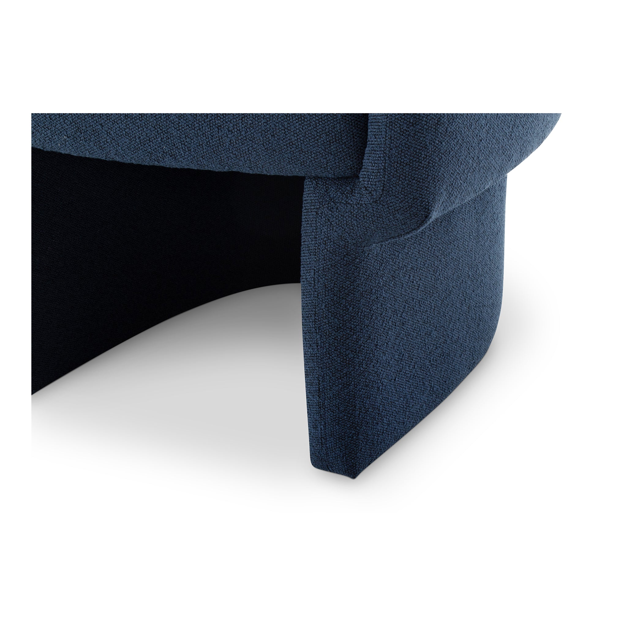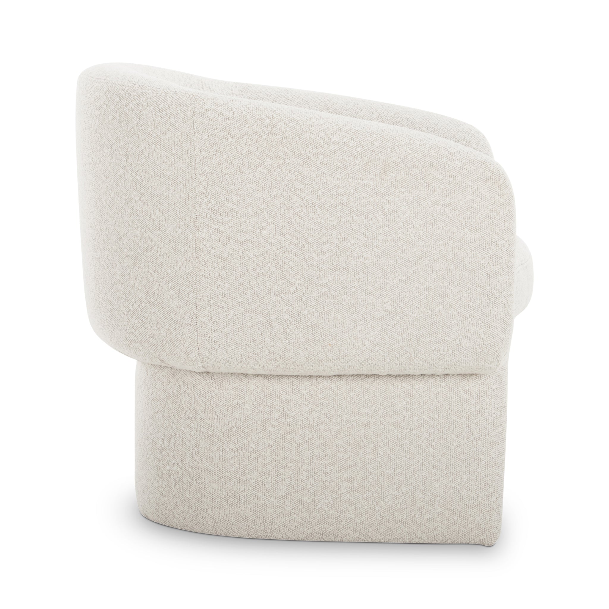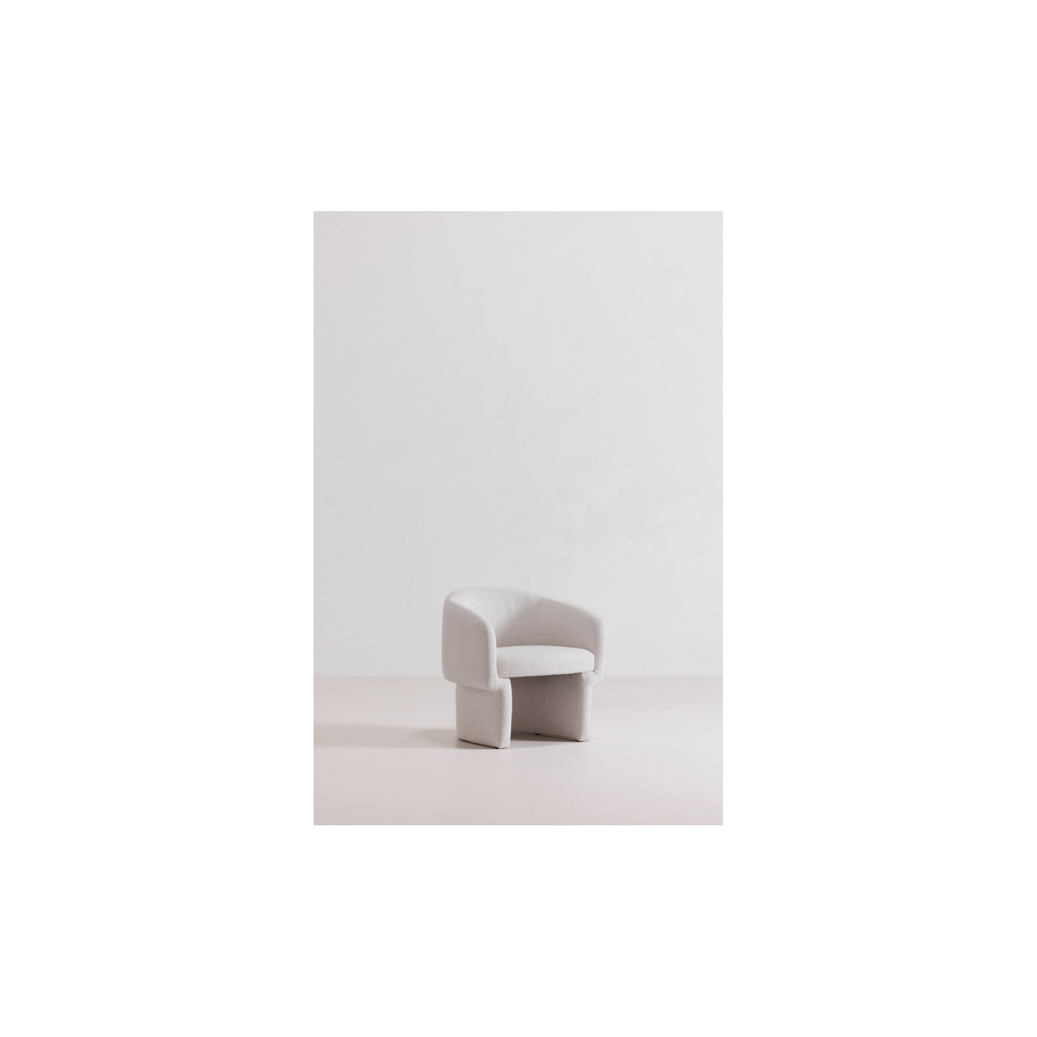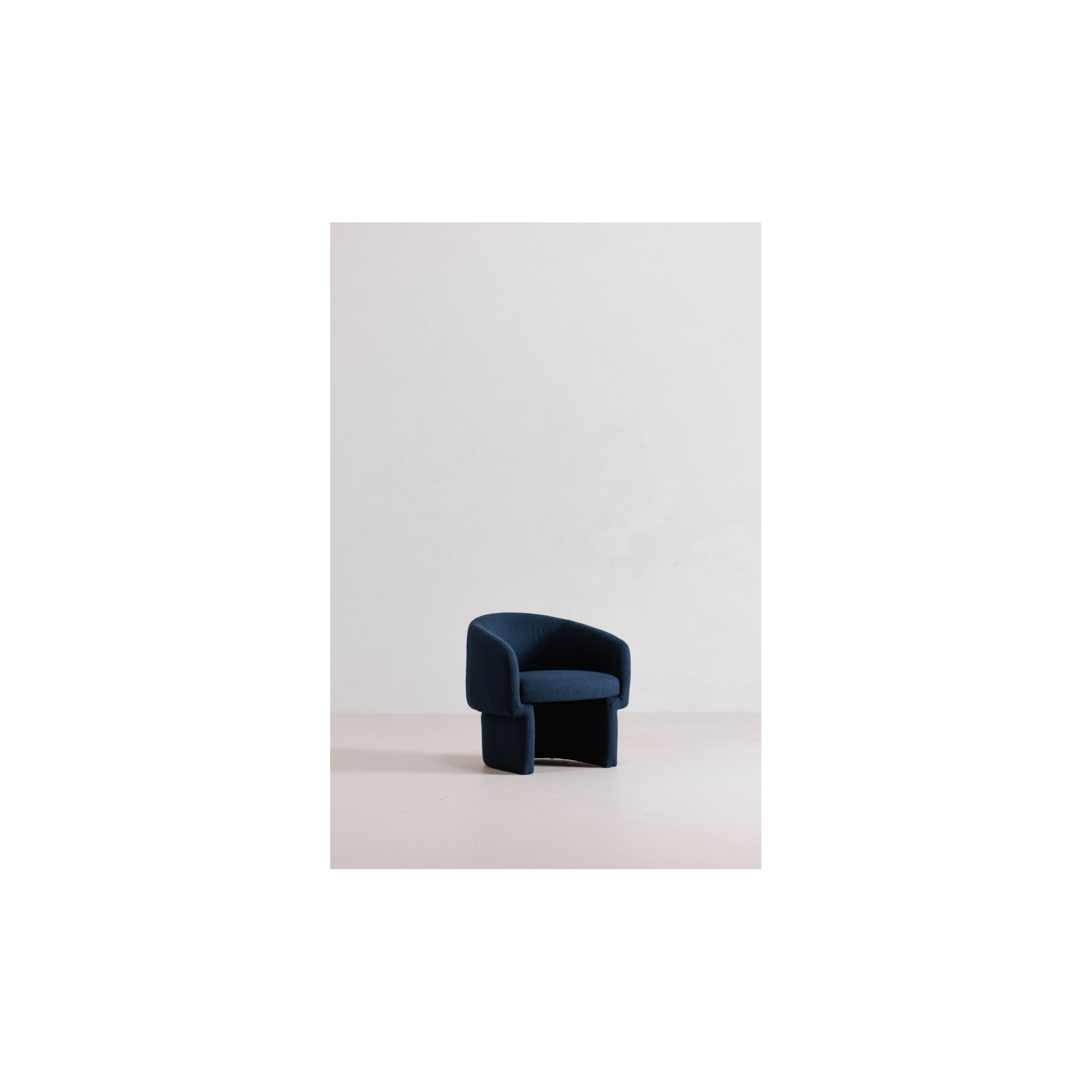 La chaise d'appoint Francis présente un design incurvé unique, idéal pour se détendre. Une touche nostalgique et idyllique, respectueuse de l'environnement grâce à sa structure en pin et contreplaqué certifiés FSC et son revêtement en polyester recyclé.