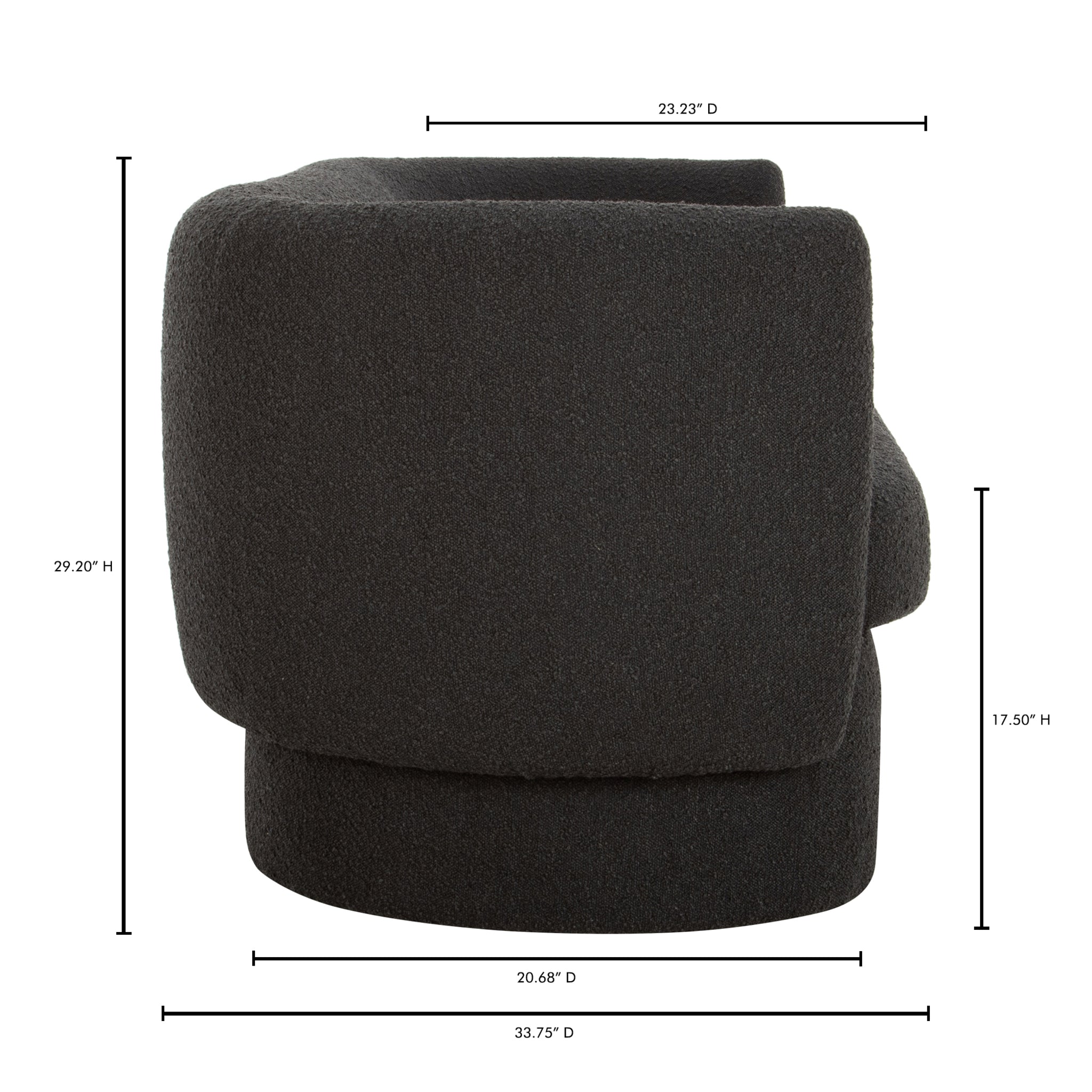 Doux comme un nuage et d'une fraîcheur contemporaine, le canapé Gaillarde, décliné en noir, offre une assise spacieuse pour quatre personnes. Ses lignes courbes, son rembourrage en mousse ultra-confortable et sa structure en bois massif lui confèrent douceur et souplesse à la fois.