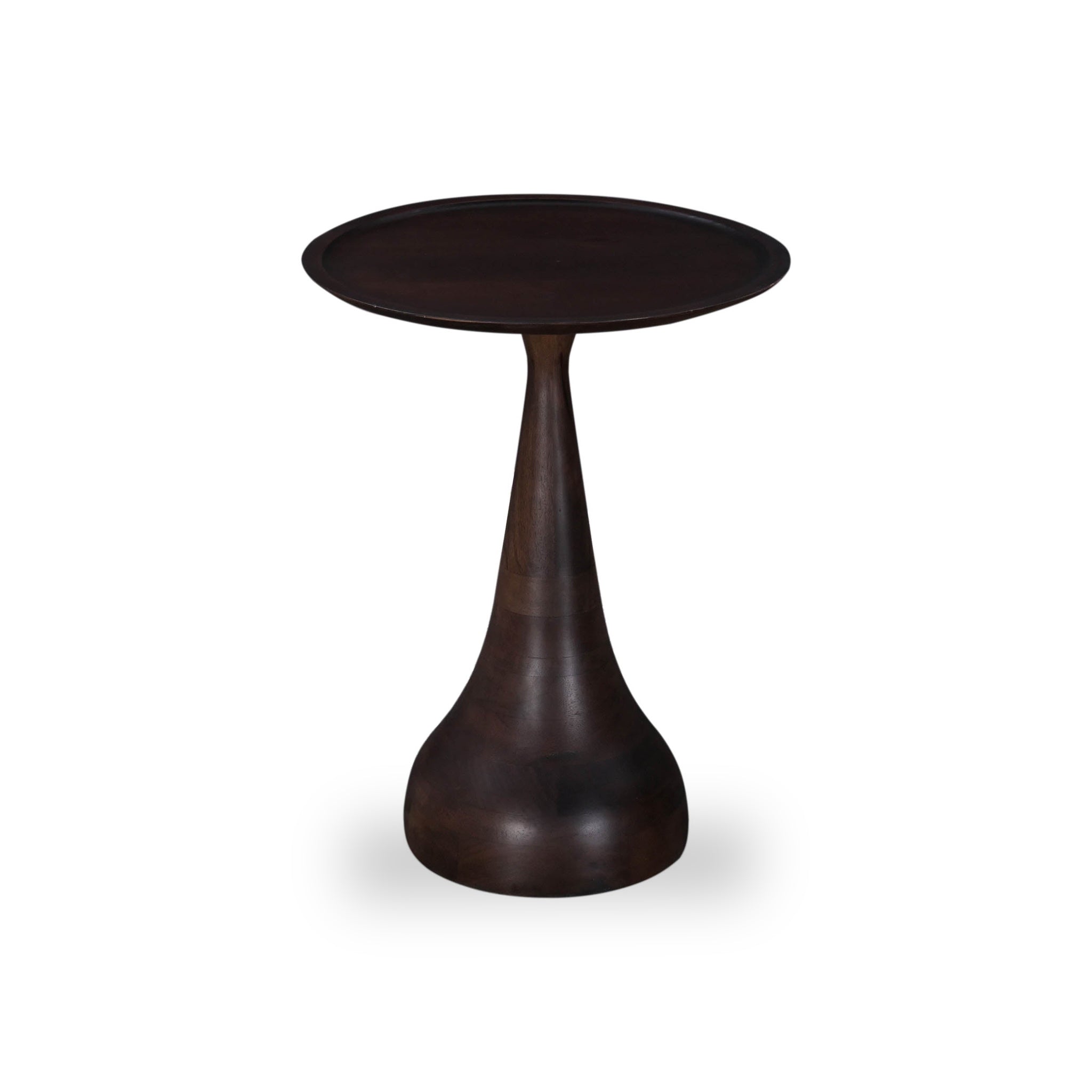 Découvrez la table d'appoint Graham – une incarnation d'élégance intemporelle et de sophistication moderne, méticuleusement fabriquée à la main en bois de manguier massif et rehaussée d'une riche et luxueuse finition brun foncé.