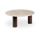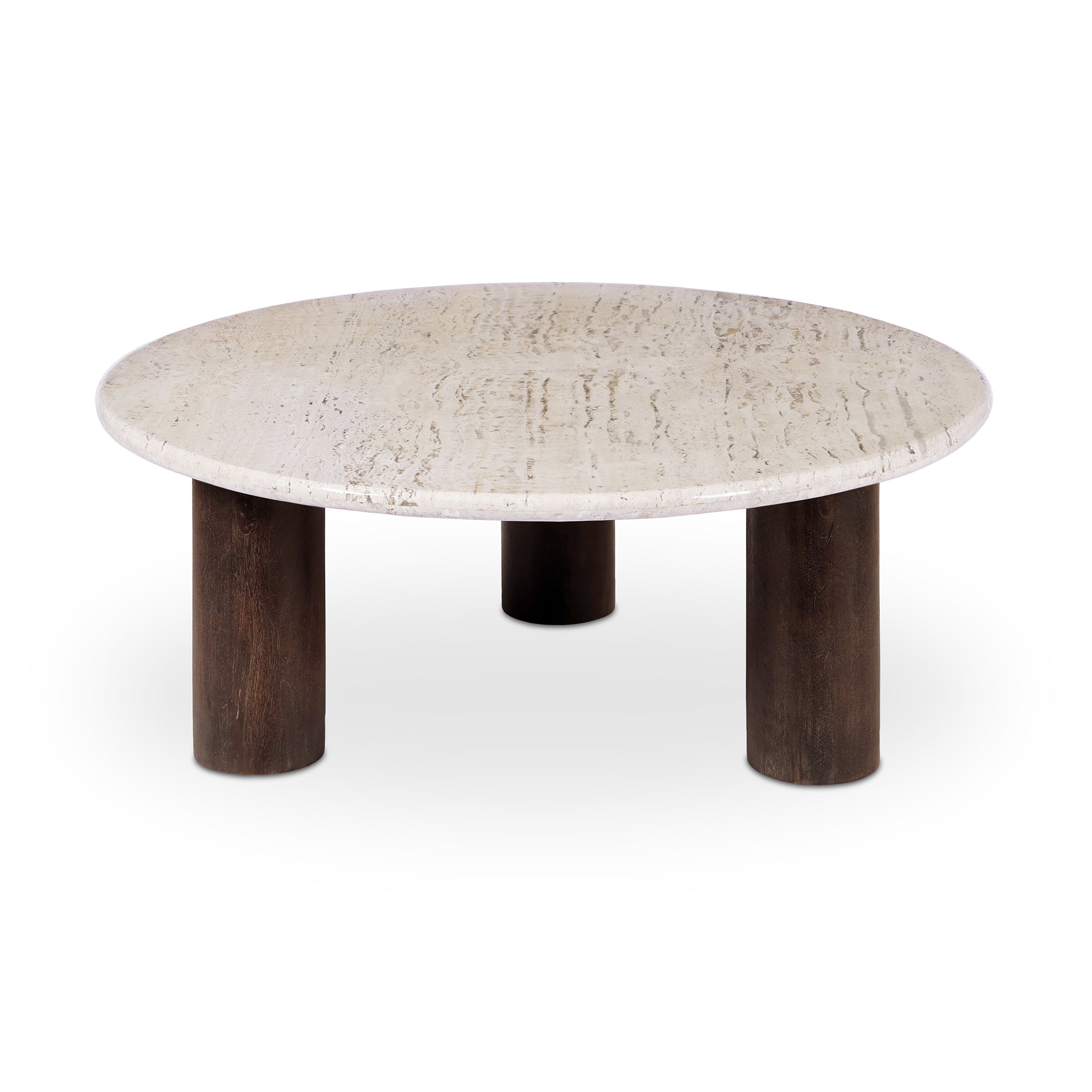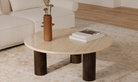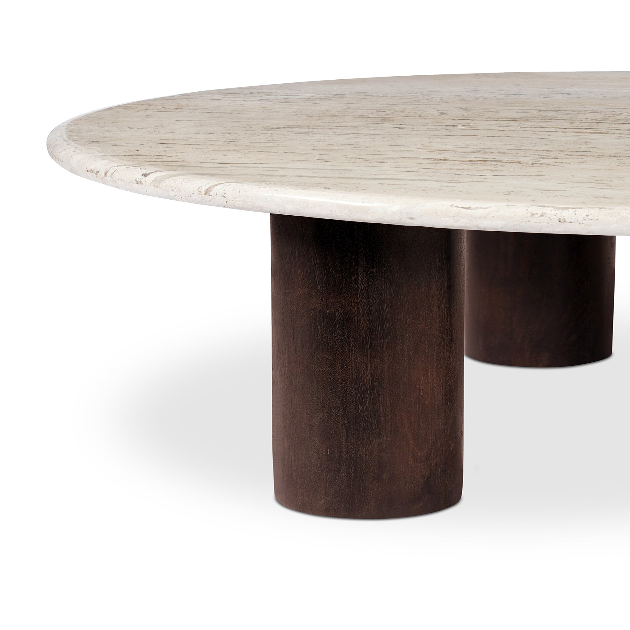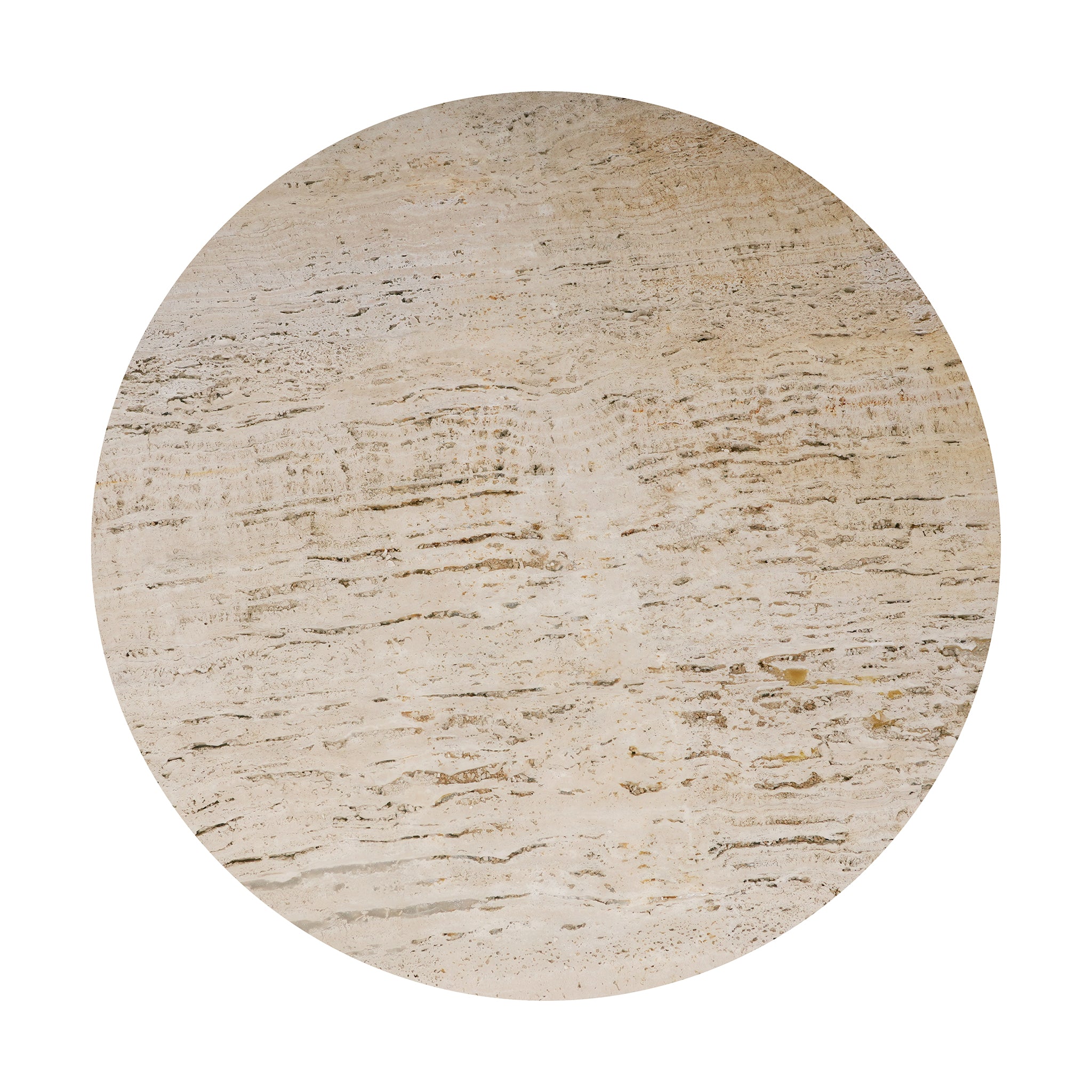 La table basse Jack incarne design et proportions, avec son généreux plateau en travertin turc de 30 mm d'épaisseur et son piètement en manguier teinté d'une riche teinte foncée. Le bord arrondi du plateau confère au travertin une sensation de douceur, tandis que le piètement en manguier teinté foncé apporte de la chaleur au matériau durci. Notez qu'aucune table n'est identique, chacune présentant ses propres variations de couleur et de veinage.