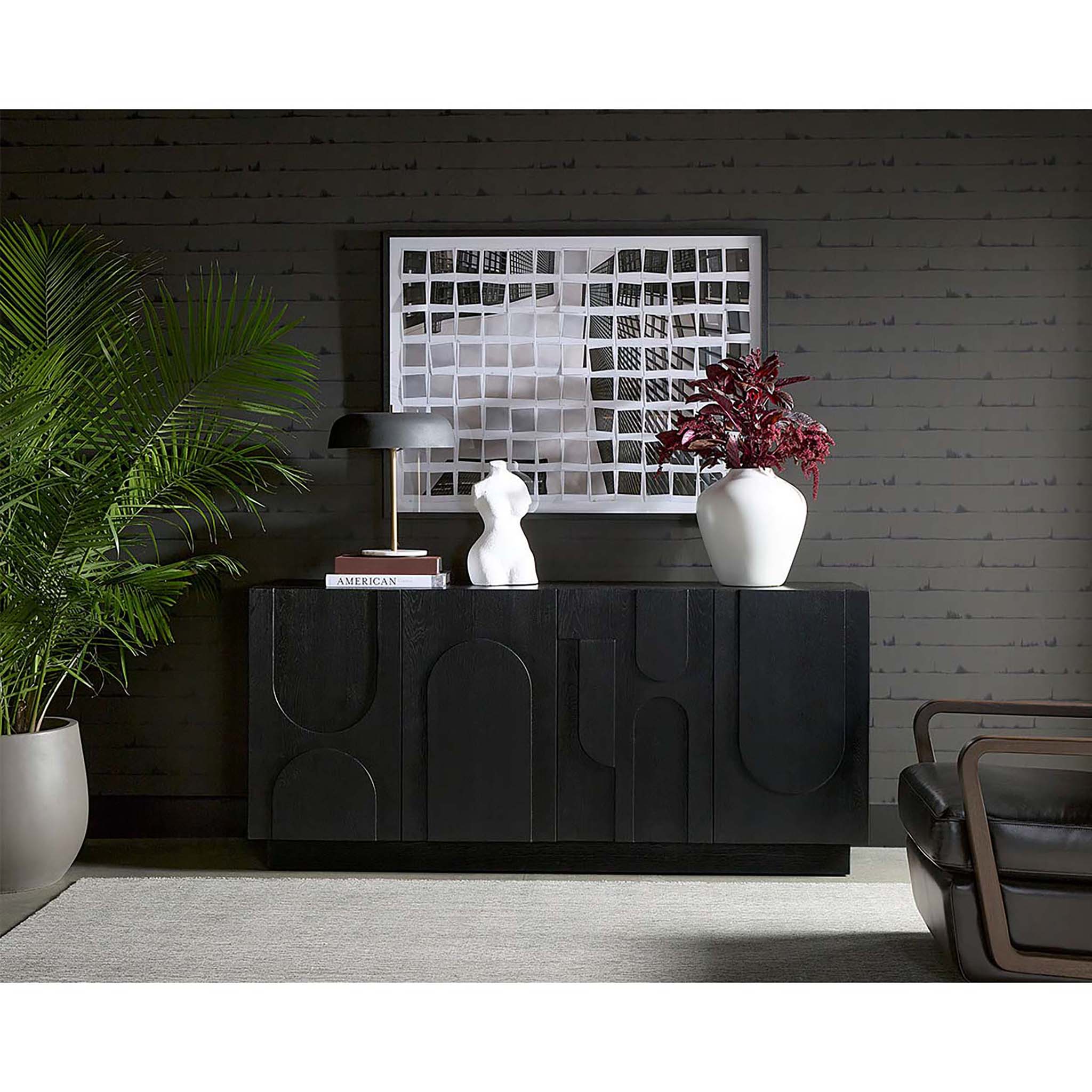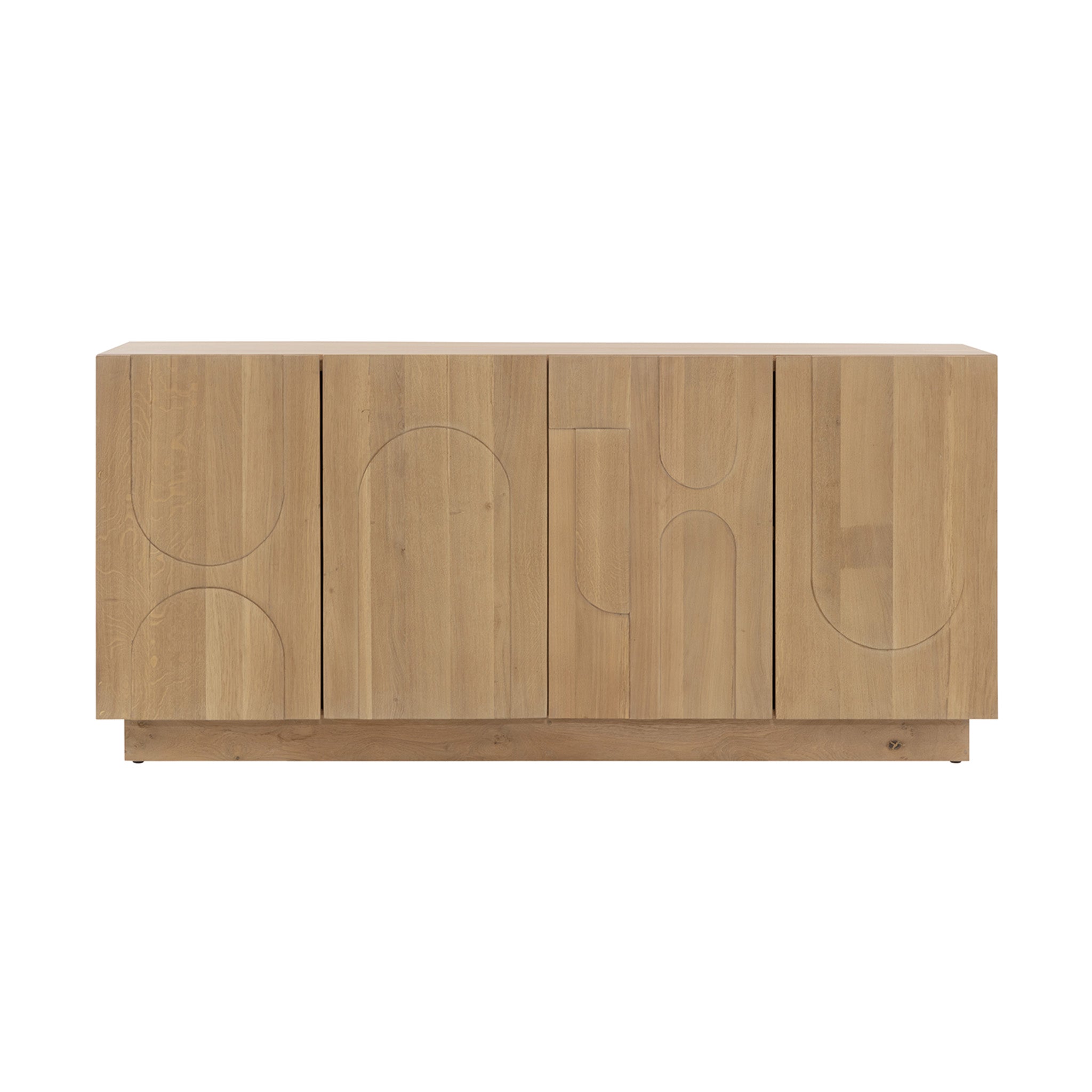 Inspiré du design scandinave, le buffet Jack se pare de magnifiques motifs en bois. Sa structure est en bois massif et il est doté de quatre placards offrant un espace de rangement généreux. Un kit anti-basculement est inclus. Le bois étant un matériau organique et poreux, chaque pièce présente des variations naturelles de texture, ainsi que de fines indentations et fissures. Les pièces de bois peuvent également afficher des différences de couleur et de veinage, et la présence de nœuds et de loupes apparents contribue au caractère unique de chaque meuble. Fabriqué en Inde, ce buffet est le fruit d'un savoir-faire raffiné, réalisé par des artisans locaux qualifiés. De par sa nature artisanale, les imperfections uniques telles que fissures, marques et variations de couleur et de forme sont des caractéristiques appréciées qui font de chaque pièce un objet véritablement unique.