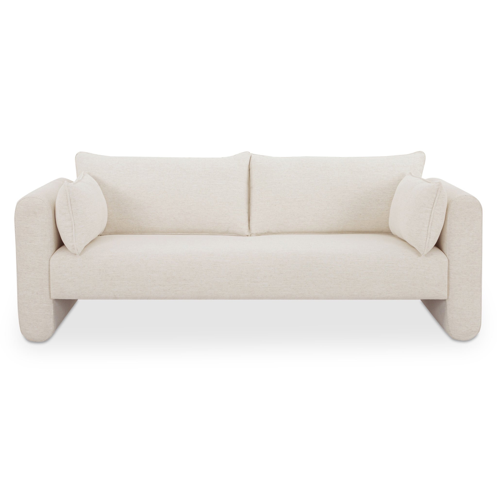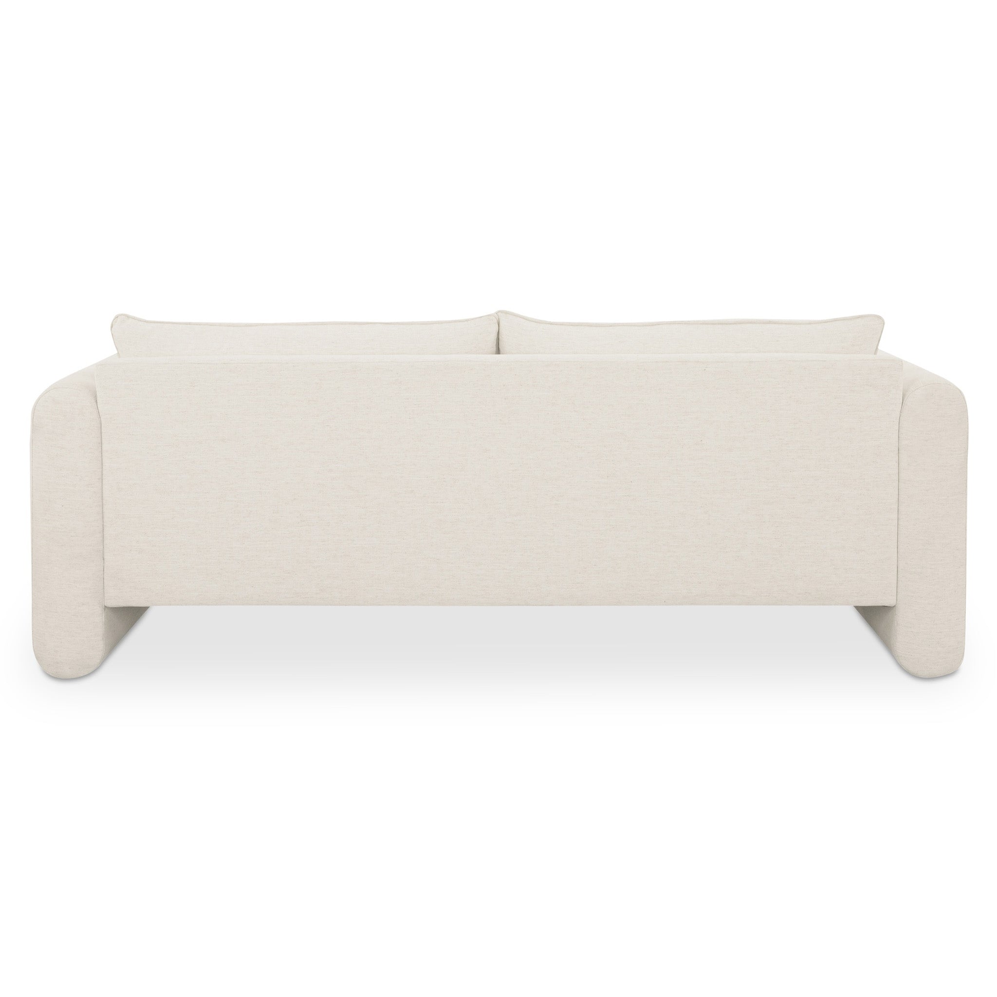 Smaller scale, bigger impact-the Moore Sofa is made for secondary spaces and apartments that deserve comfort. Curved arms and a raised seat keep the profile light, while wide arms and removable cushions make lounging easy. Upholstered in polyester with a washed linen-like texture, it adds a sun-faded, nostalgic warmth. A fixed bench and supportive foam-and-fiber cushioning ensure Moore looks as good as it feels-day after day.