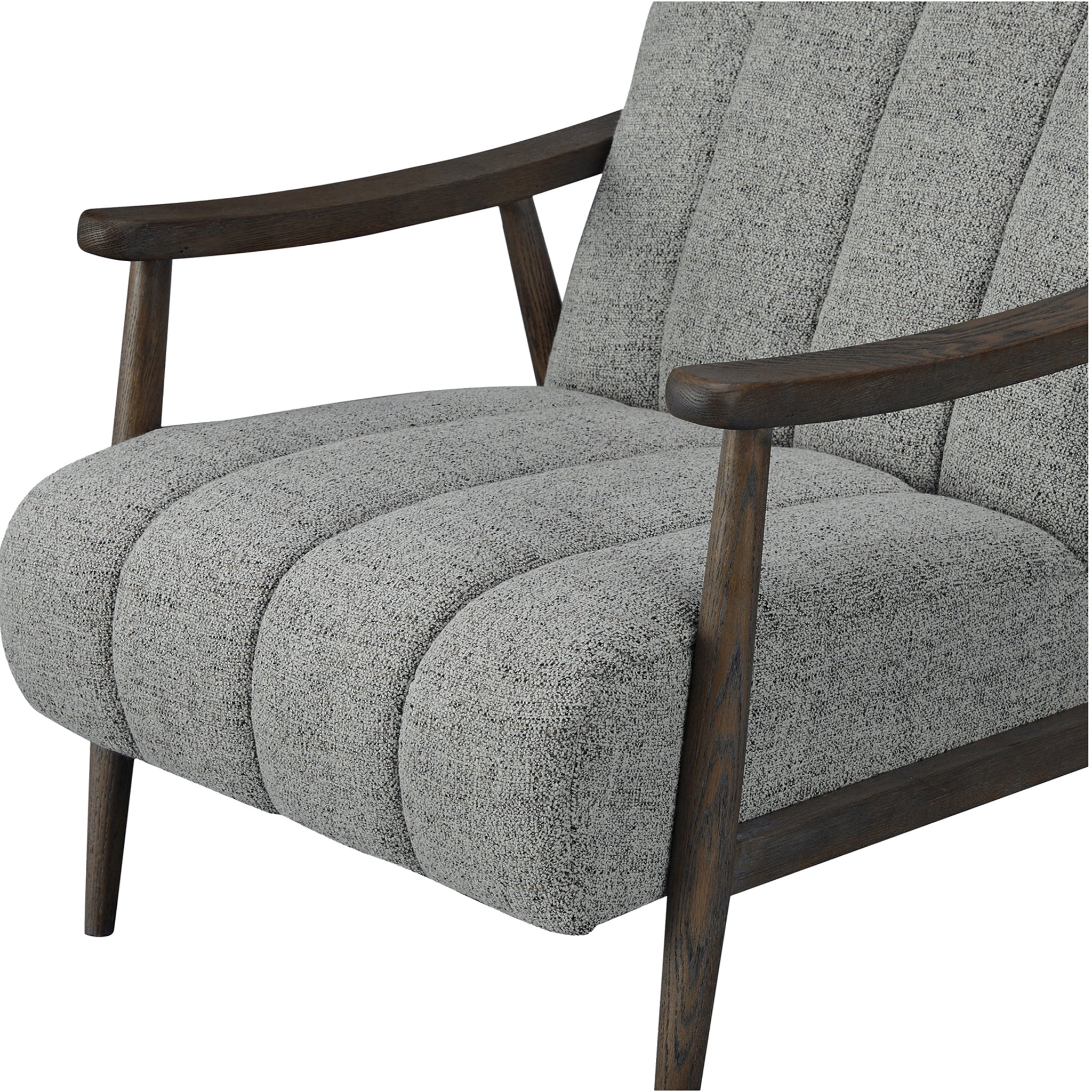 Le fauteuil d'appoint Olson s'inspire du milieu du siècle et dégage un charme rustique avec sa structure en chêne massif à la finition brun vieilli. Ses détails en canaux et son revêtement texturé aux tons neutres ajoutent de la profondeur et un attrait visuel, tandis que sa silhouette intemporelle et son savoir-faire soigné apportent de la chaleur à tout espace.