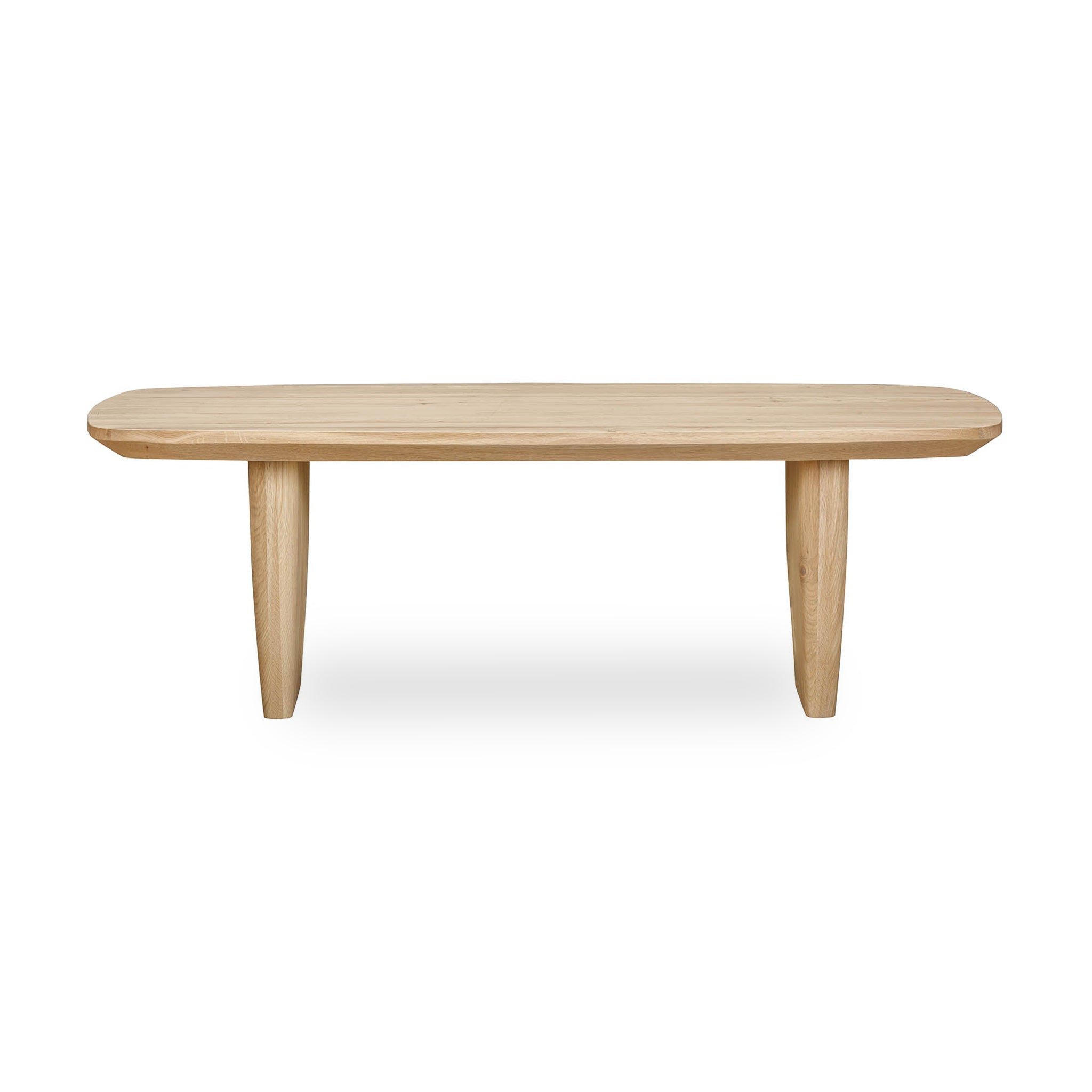 Cette table basse discrète présente une finition chêne chaleureuse et une construction robuste, idéale pour les espaces de vie décontractés.