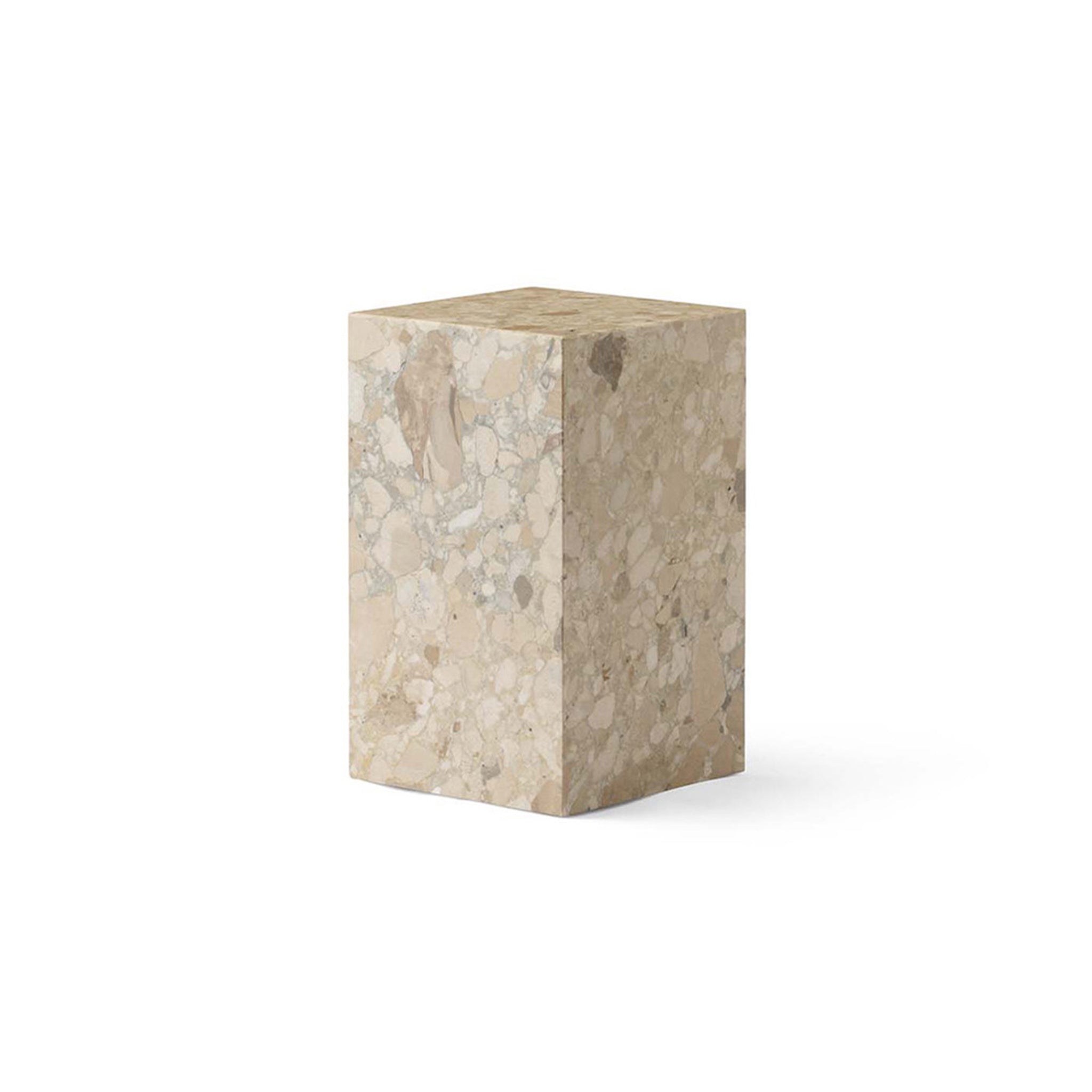 À la fois esthétique et intemporelle, la collection Plinth propose des podiums multifonctionnels adaptés à tous les espaces, pouvant servir de sculpture autonome ou de plateforme pour mettre en valeur des objets. Soulignant la beauté des matériaux naturels et un savoir-faire d'exception, chaque pièce est assemblée avec précision pour révéler la beauté et le caractère unique du matériau. D'une symétrie parfaite, la silhouette épurée et nette du design contraste avec les veinures et les motifs uniques de la pierre texturée Kunis Breccia et du marbre réfléchissant la lumière, déclinés en cinq variétés uniques, utilisés pour sa création.