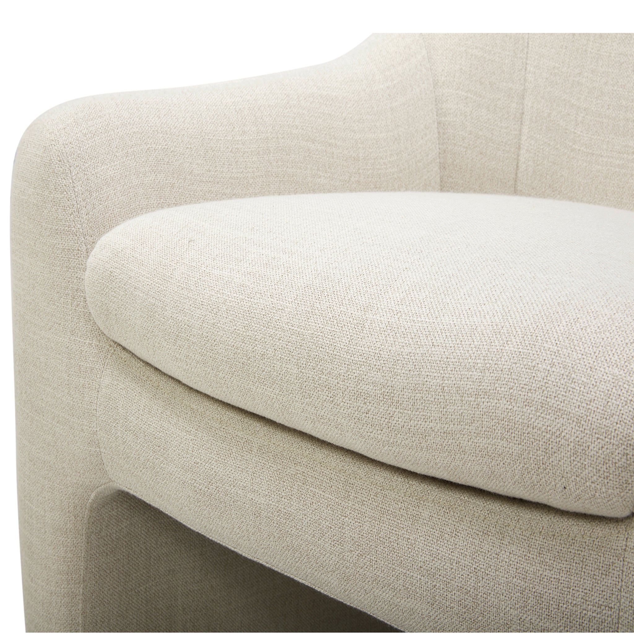Fauteuil d'appoint contemporain, Porter, avec sa forme rembourrée et ses pieds entièrement tapissés, est une pièce élégante et raffinée. Idéal pour se détendre ou comme siège d'appoint, son revêtement en tissu texturé et ton sur ton ajoute profondeur et charme, tandis que ses teintes naturelles s'intègrent harmonieusement à une variété de styles.