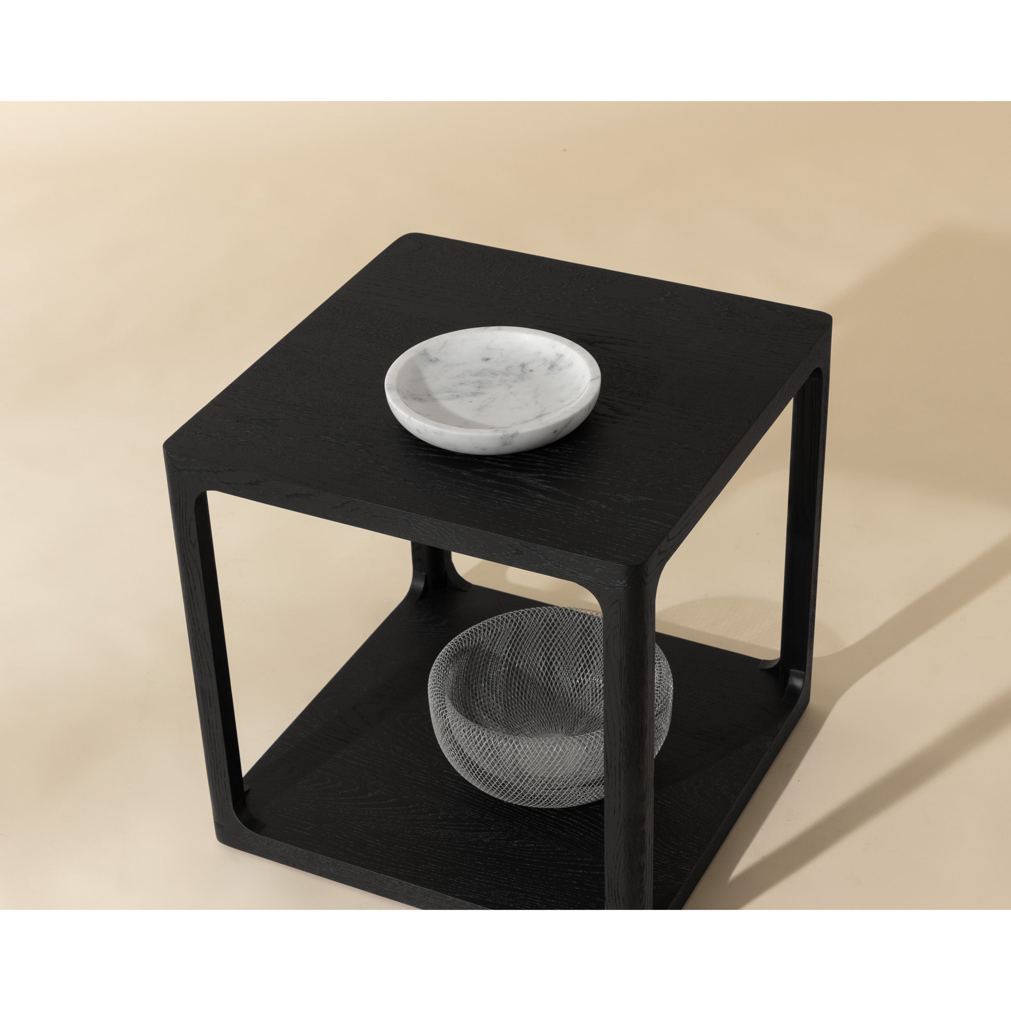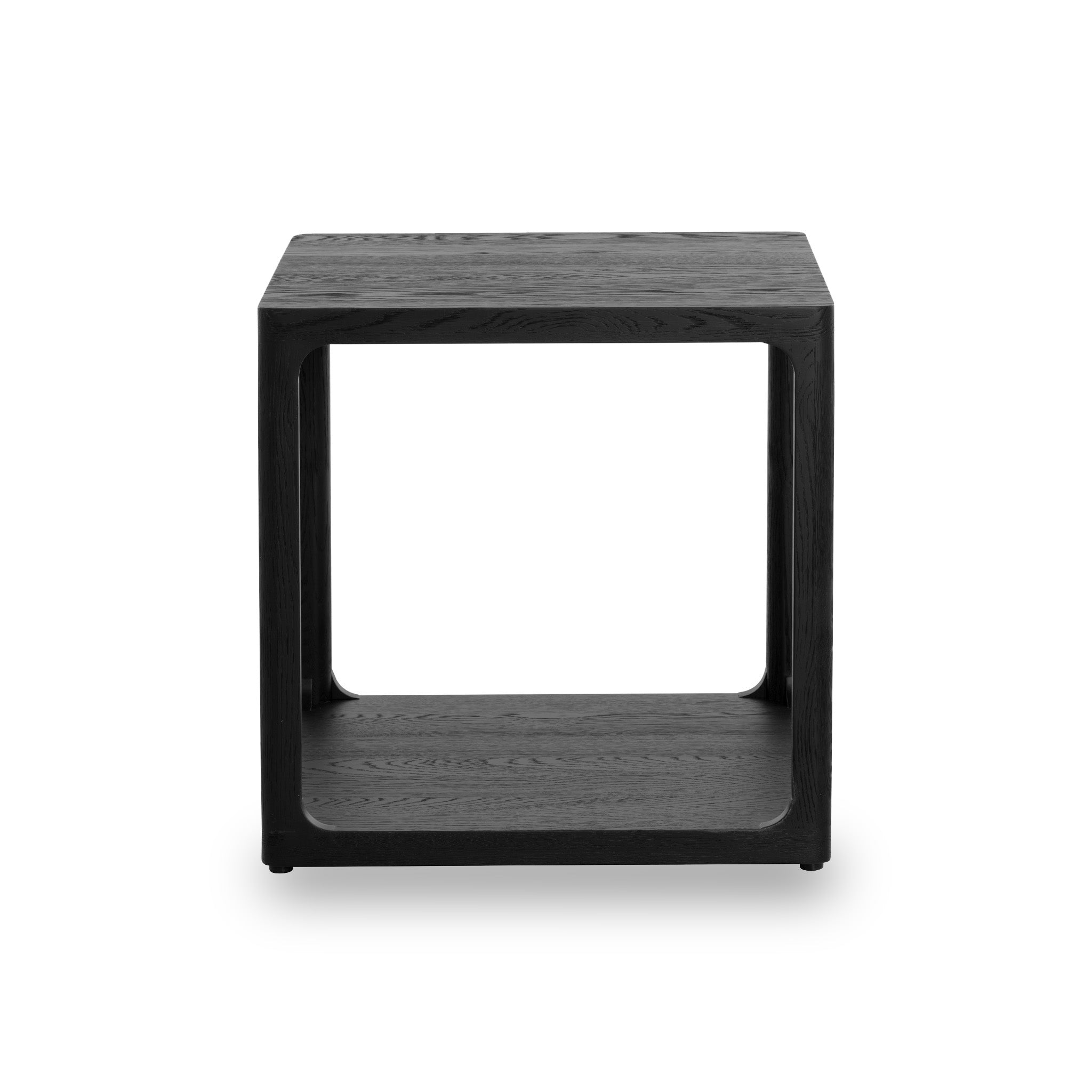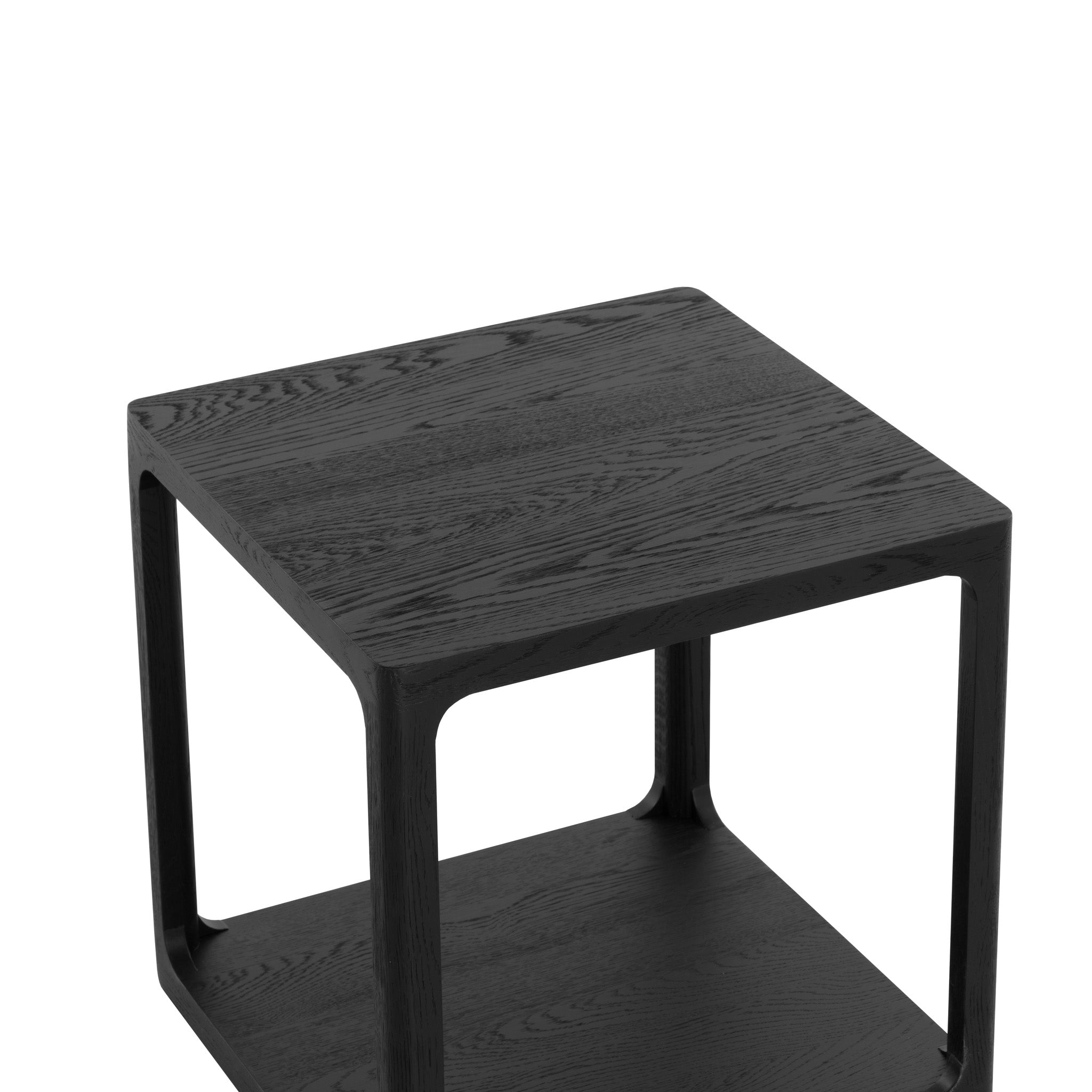 Avec sa composition épurée et moderne, la table d'appoint Rodrigo apportera une touche minimaliste à votre intérieur. Sa structure est en chêne massif noir, plaquée chêne noir. Le bois étant un matériau organique et poreux, chaque pièce présente des variations naturelles de texture, ainsi que de fines indentations et fissures. Les variations de couleur et de veinage, les nœuds et les loupes apparents contribuent également au caractère unique de chaque pièce.