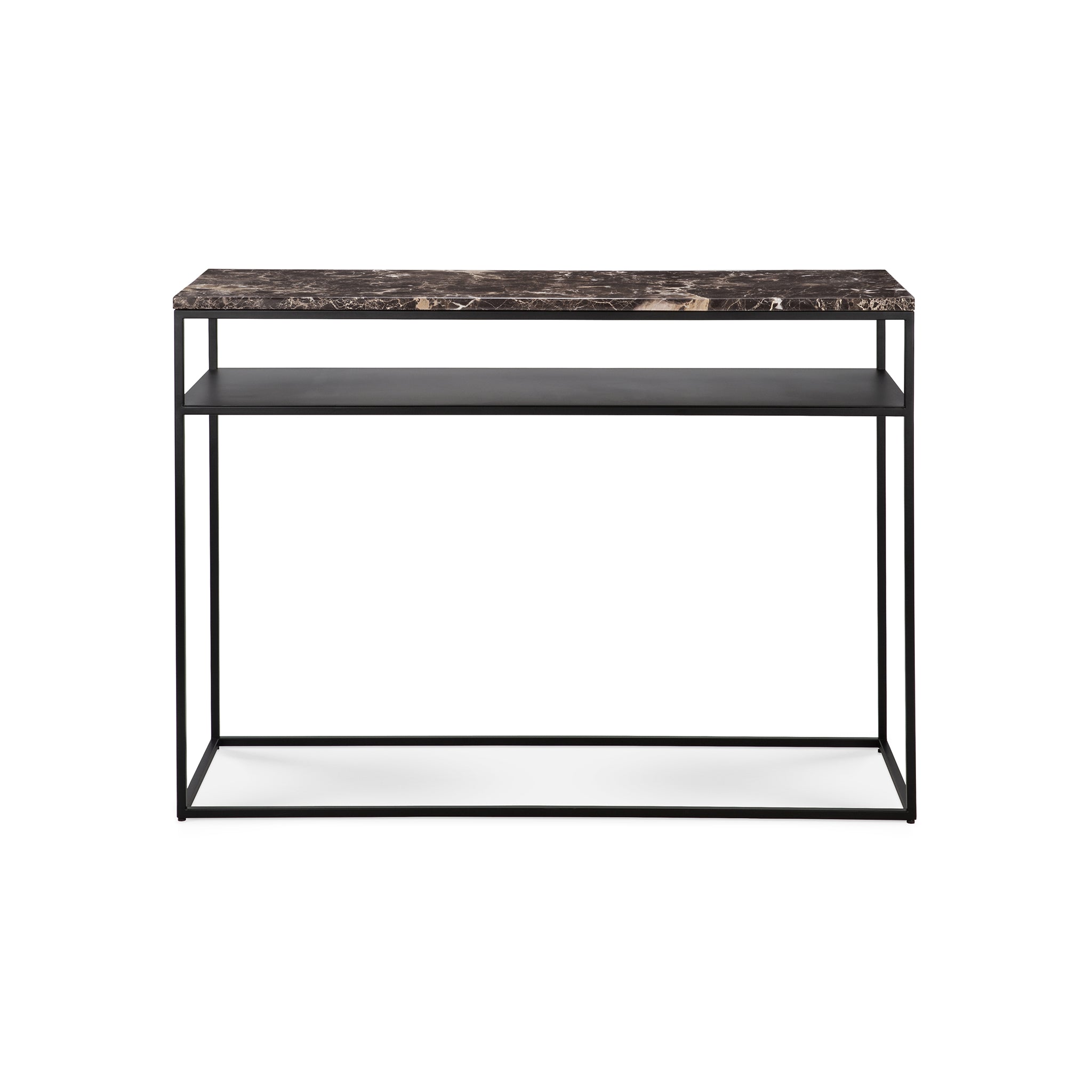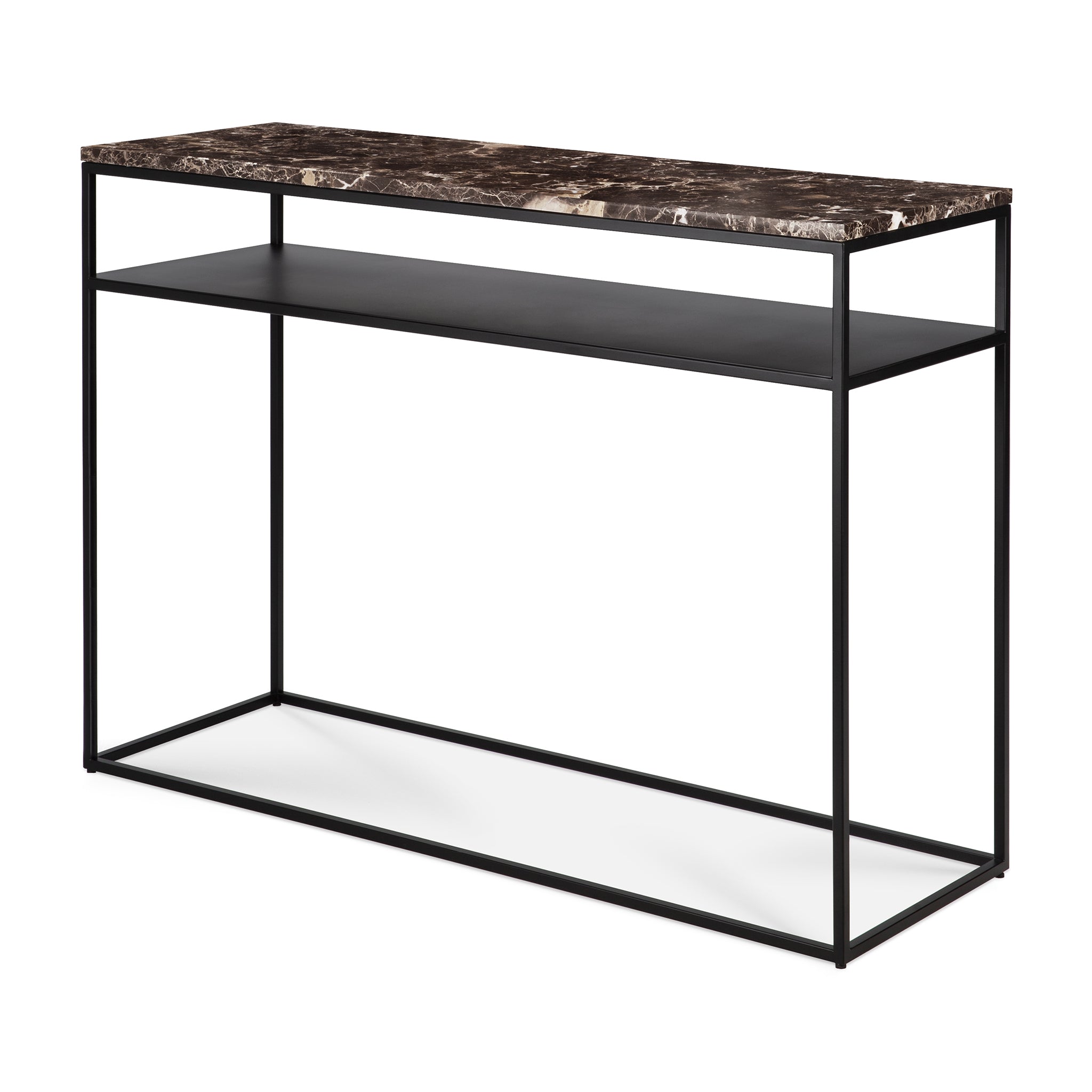 Alliance parfaite entre éléments contemporains et luxueux, cette console aux lignes épurées apporte une touche de classe et de sobriété à n'importe quelle pièce. Avec son cadre métallique ouvert et moderne et son marbre foncé aux tons naturels, clin d'œil aux designs classiques, la console Stone est une pièce maîtresse à tous points de vue. Conçue par Djordje Cukanovic.