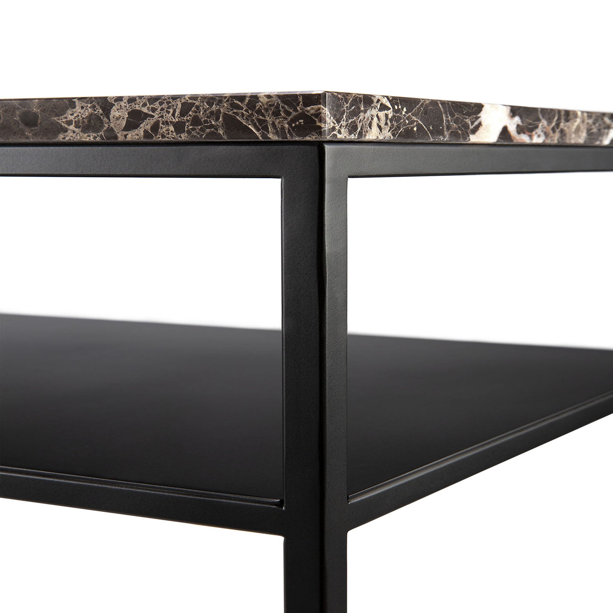Matériau : Plateau en marbre Emperador foncé poli avec cadre en métal noir