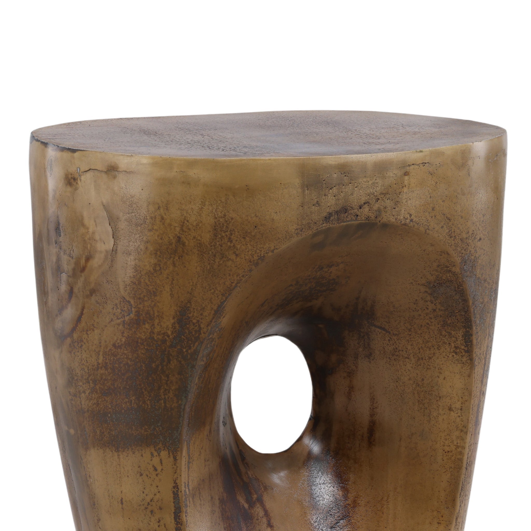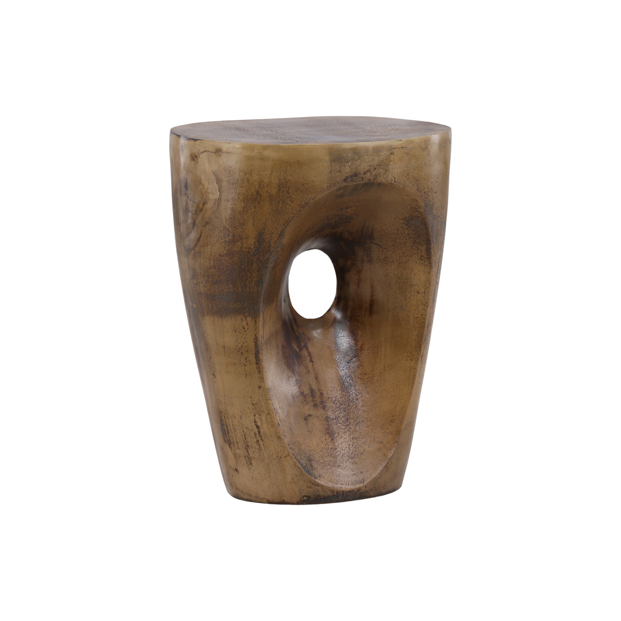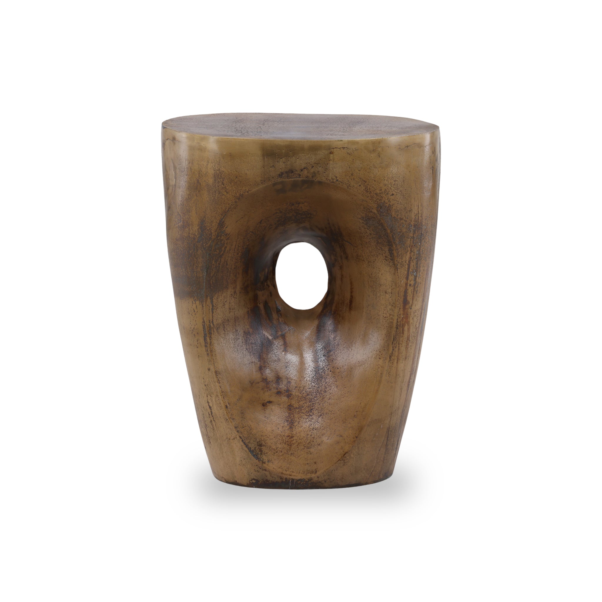 Cette pièce est à la fois une œuvre d'art abstraite et un meuble. Sa forme massive est rythmée par un vide asymétrique unique. Avec sa patine profonde et vieillie, ce meuble polyvalent peut servir de table d'appoint moderne, de support pour une sculpture ou de tabouret original.