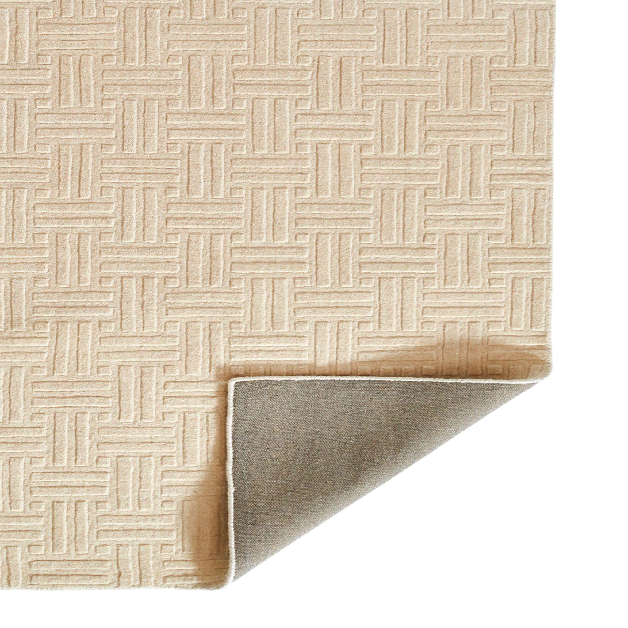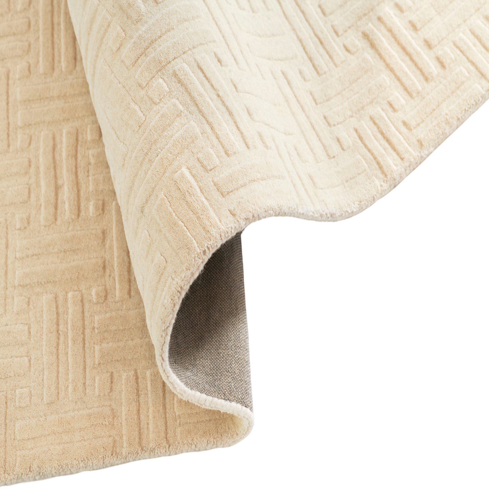 Confectionné en laine 100 % naturelle et tissé à la main, le tapis Aria présente un magnifique relief en relief qui lui confère élégance et raffinement. Chaque tapis arbore un motif minimaliste uni, sublimé par un travail artisanal exceptionnel.