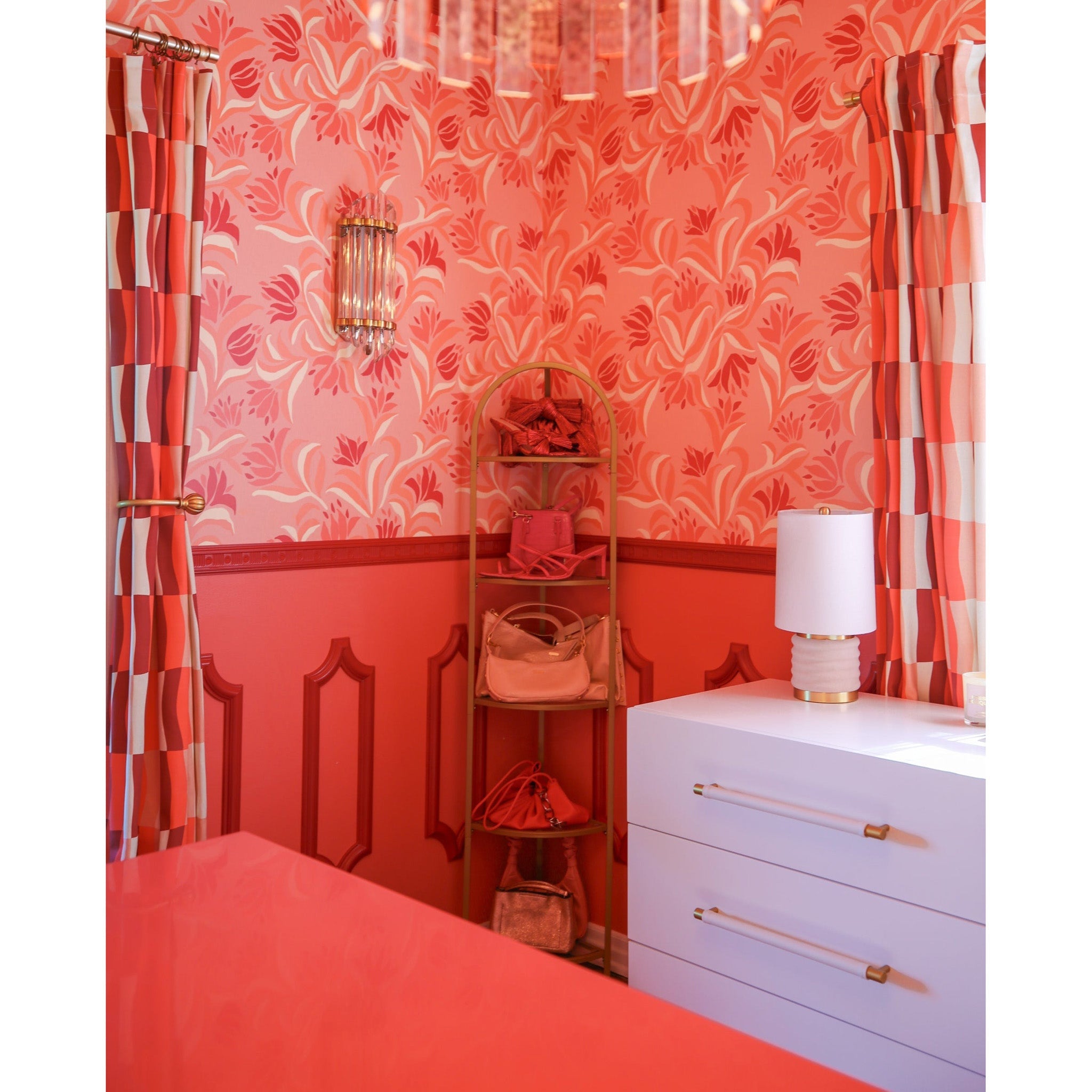 Our velvet crush, Bethany gives us 90s nostalgia with a prim and proper twist. Petite and playful, Bethany features soft, velvet curves covered in rosy blush or dark teal. A tapered linen shade and aged brass finish polish things up, priming Bethany for any seat in the house.