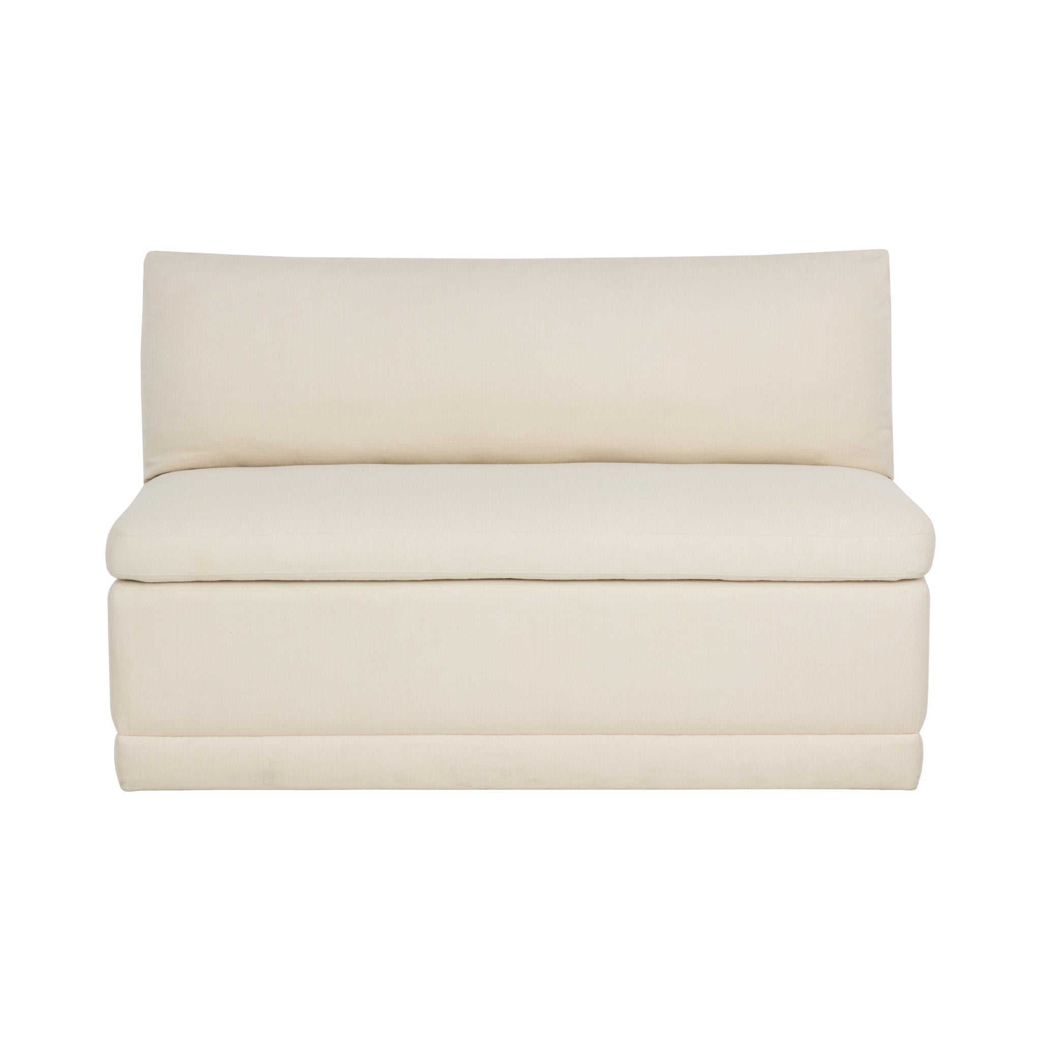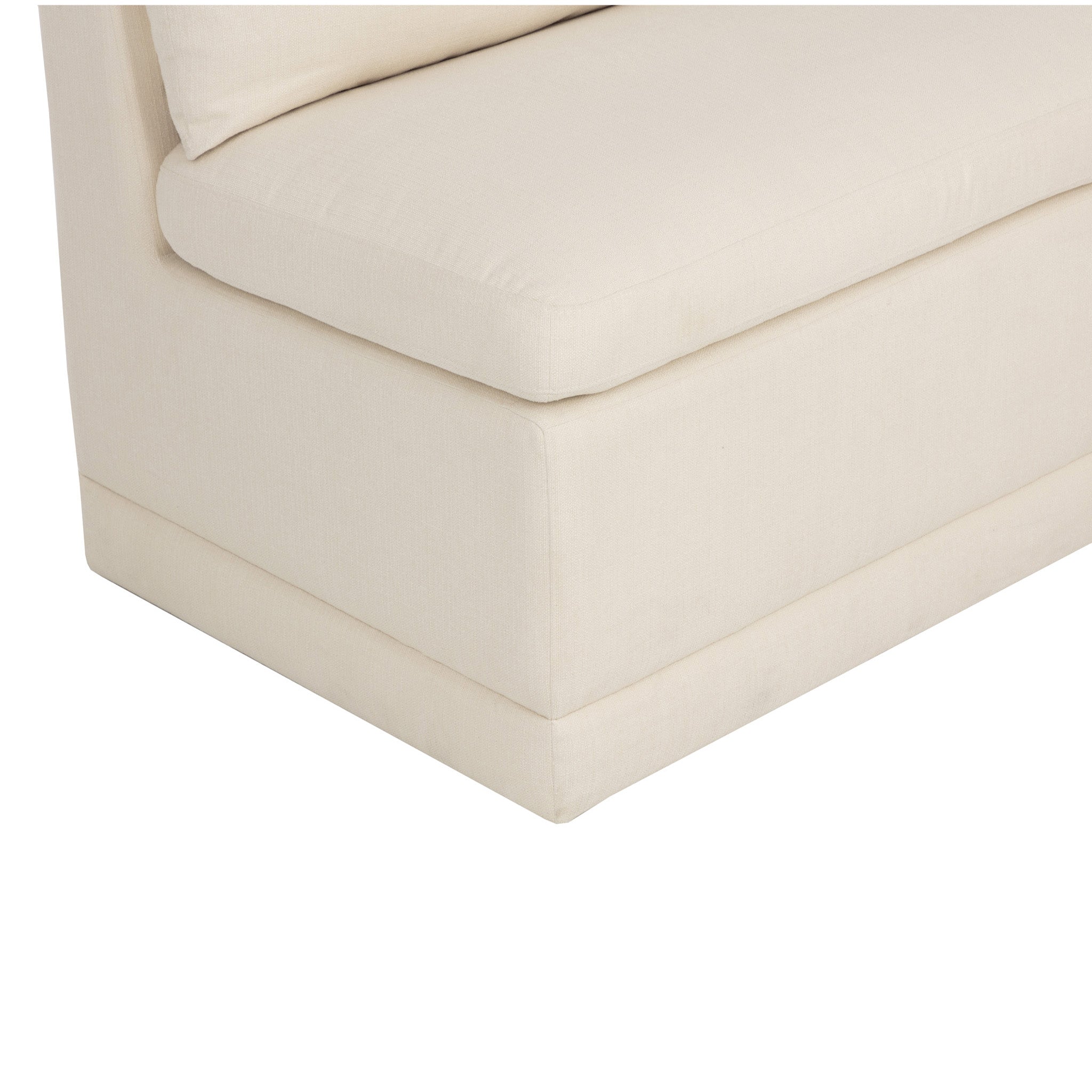 Elegant and inviting, the Donatella Banquette exudes cozy comfort. Fully upholstered in zenith alabaster performance fabric, it features a luxuriously plush seat and supportive back, making it a versatile choice for dining spaces, lounges, or built-in seating.