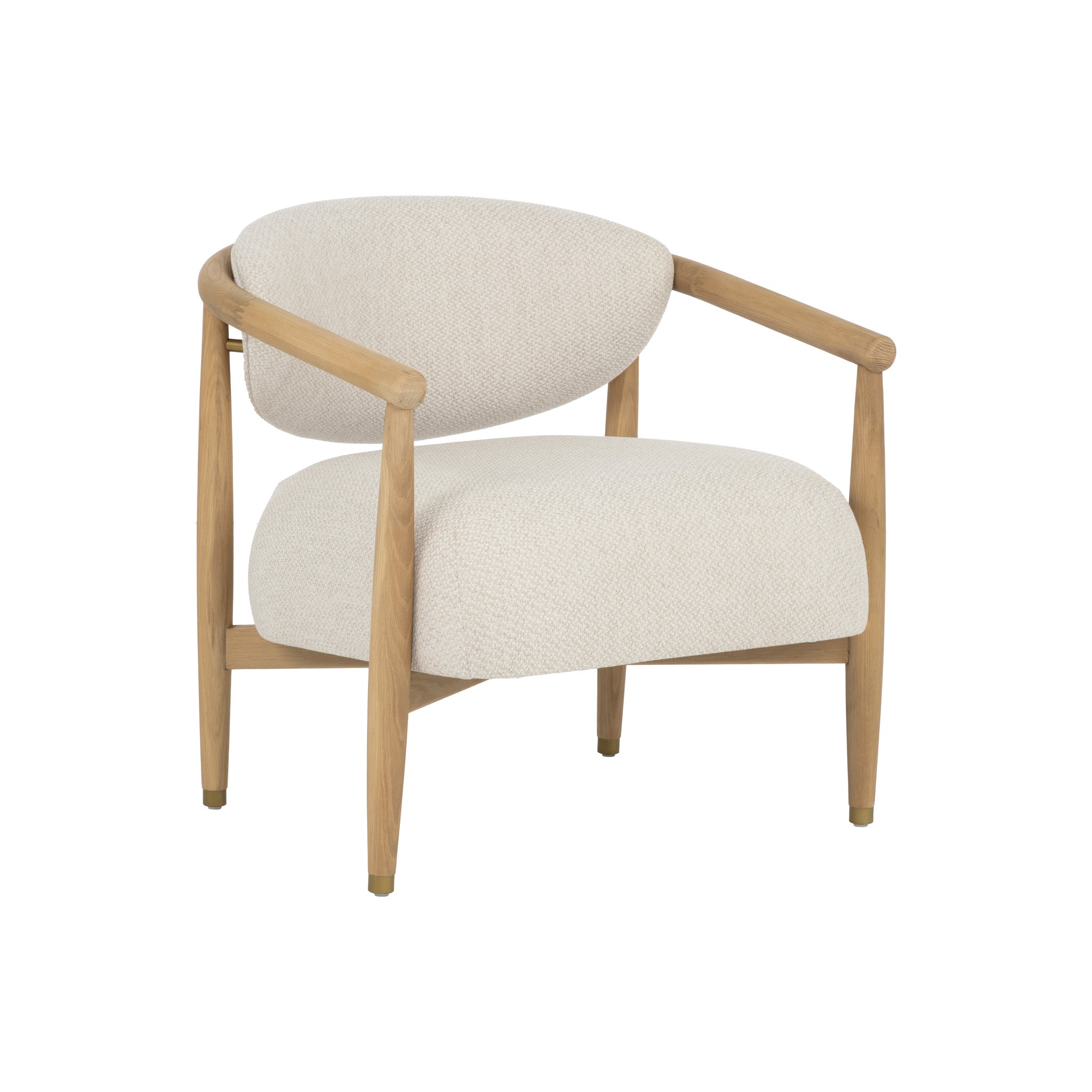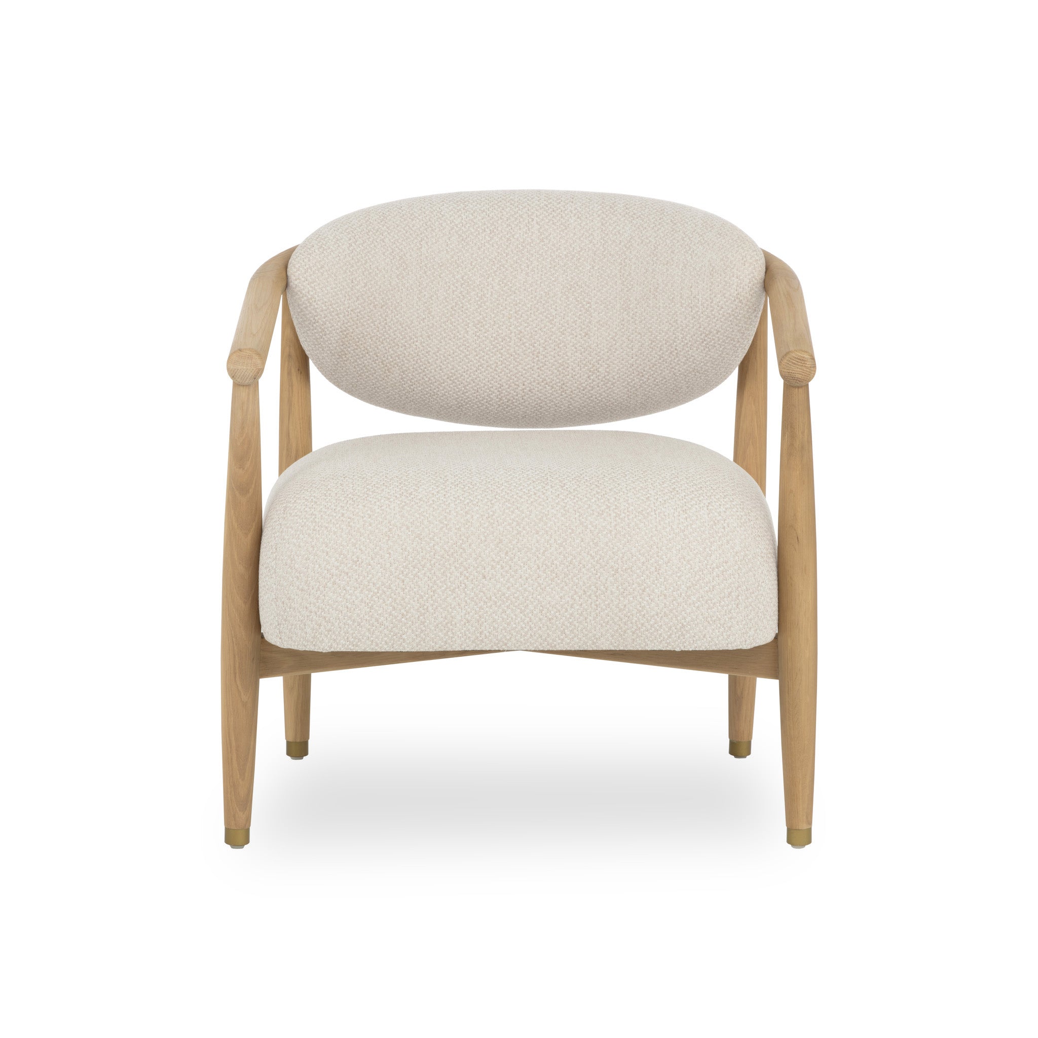 A study in poise and proportion, the Sigrid Lounge Chair is designed to invite stillness. Its rounded oak frame wraps gracefully around soft, stone-hued upholstery, offering a quiet place to pause. Subtle stainless steel caps complete the frame, adding a small detail that contrasts beautifully against the warmth of the oak.