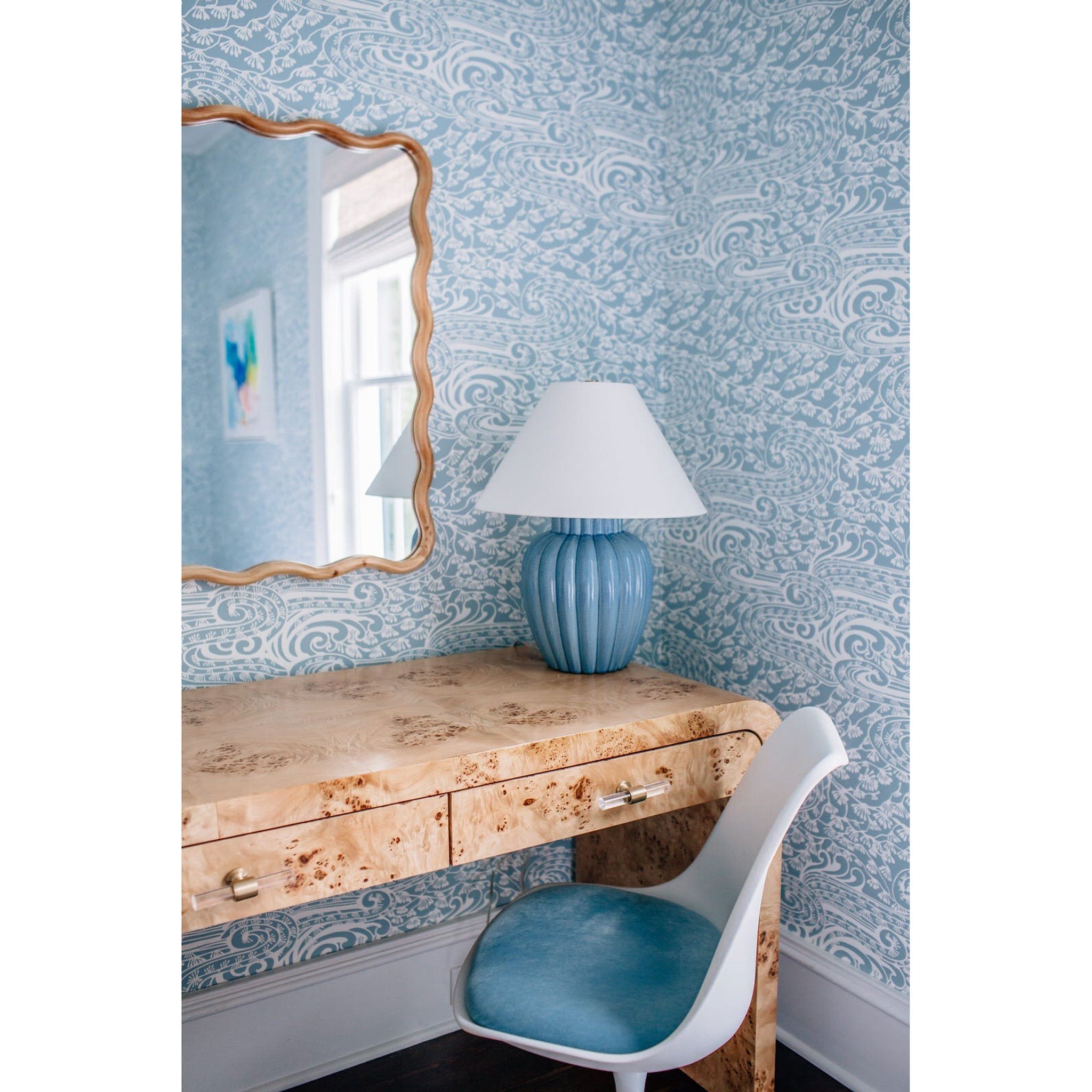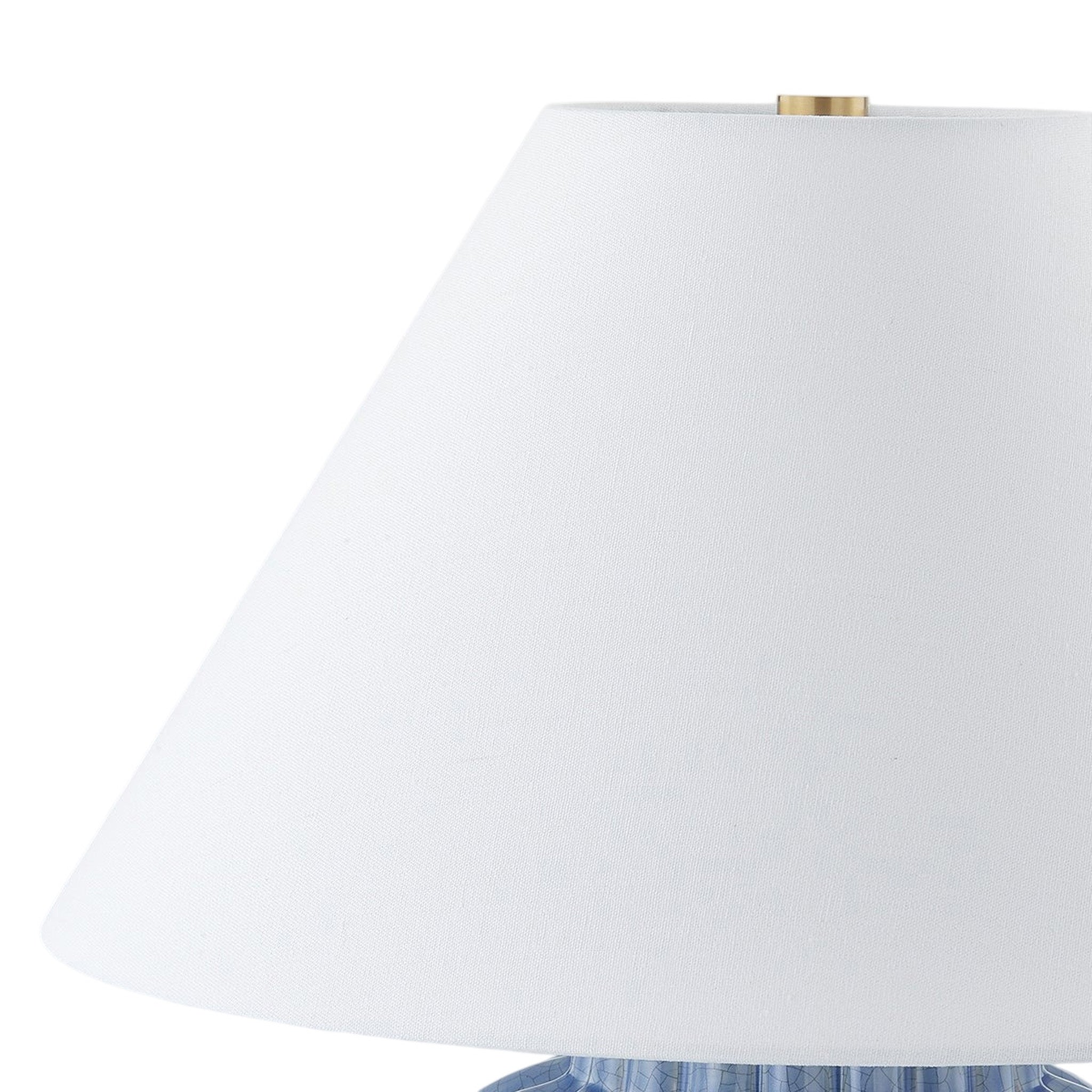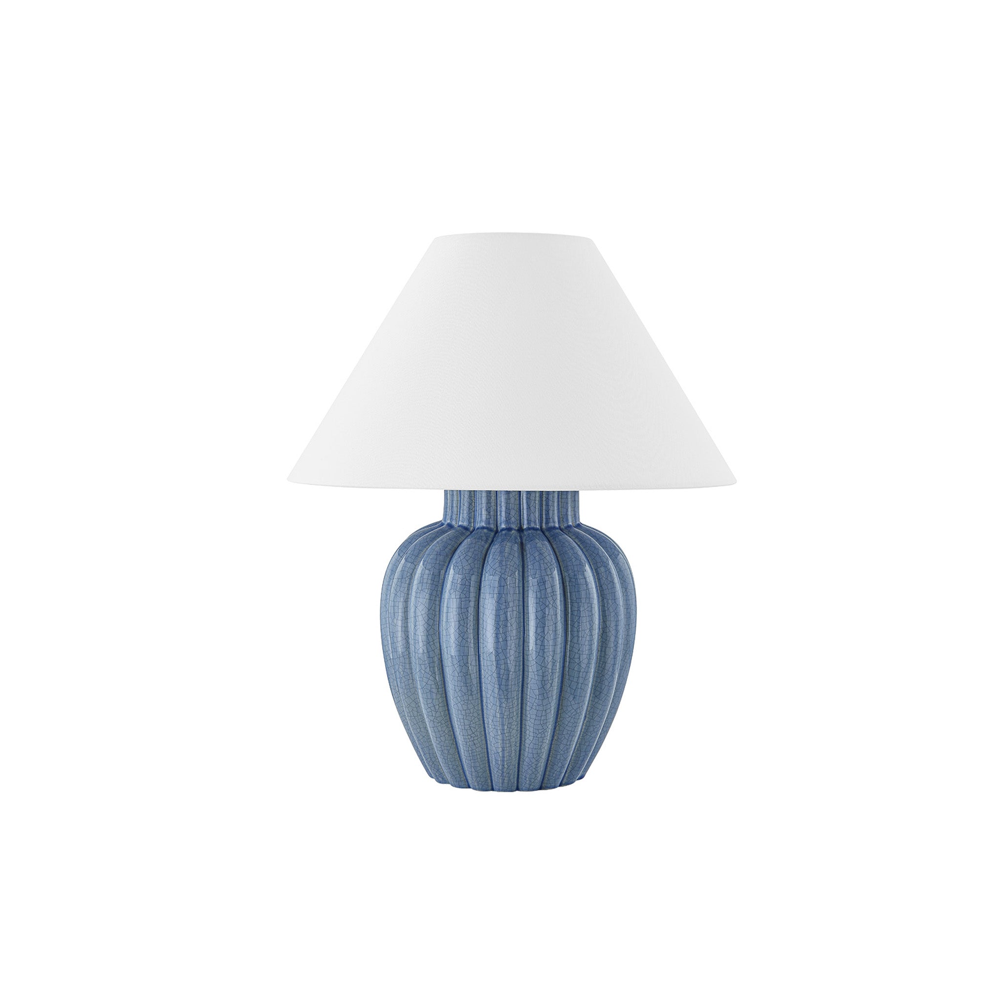 Crackled ceramic and fluting make this classic silhouette feel very of-the-moment. The blue hue pools in the cracks and ribbing, creating dimension and a gorgeous textured effect. Place this lamp on any tabletop, counter or nightstand to add instant style and a unique pop of color. Part of our Ariel Okin x Mitzi Tastemakers collection. Ariel Okin for Mitzi