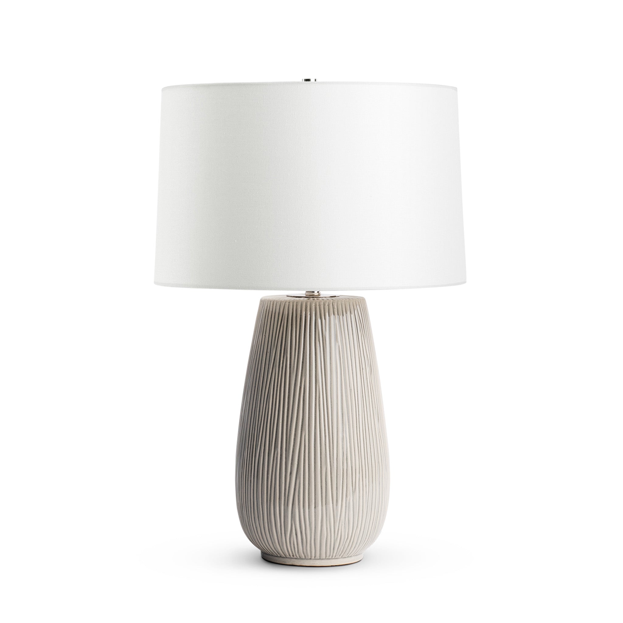La lampe de table Joshua associe un pied en céramique spectaculaire à un abat-jour tambour en lin épuré et classique. La finition nervurée du pied en céramique gris clair lui confère un charme rustique qui ajoutera texture et originalité à votre décoration intérieure.