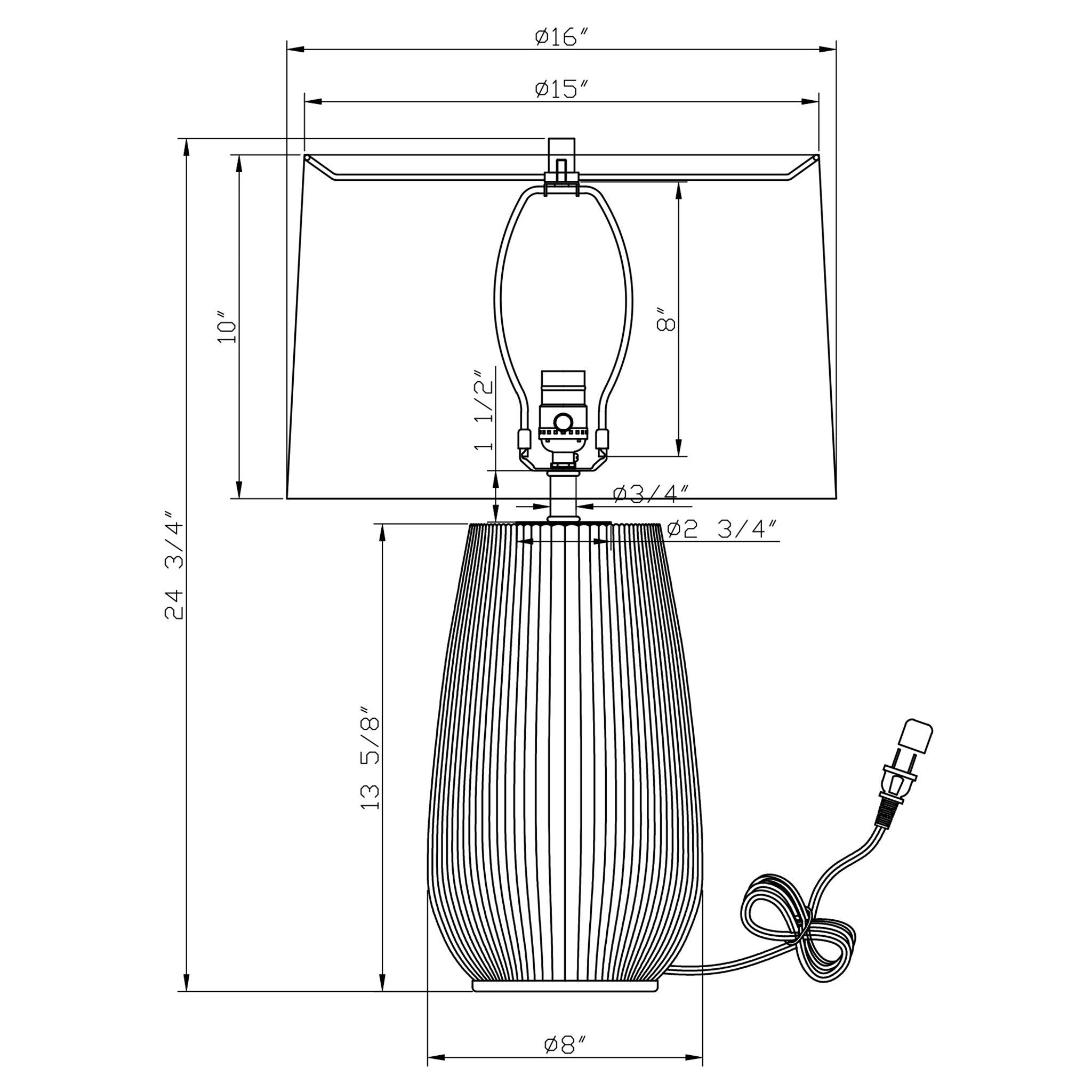 Dimensions de l'abat-jour : 10"H x 16"L x 16"P