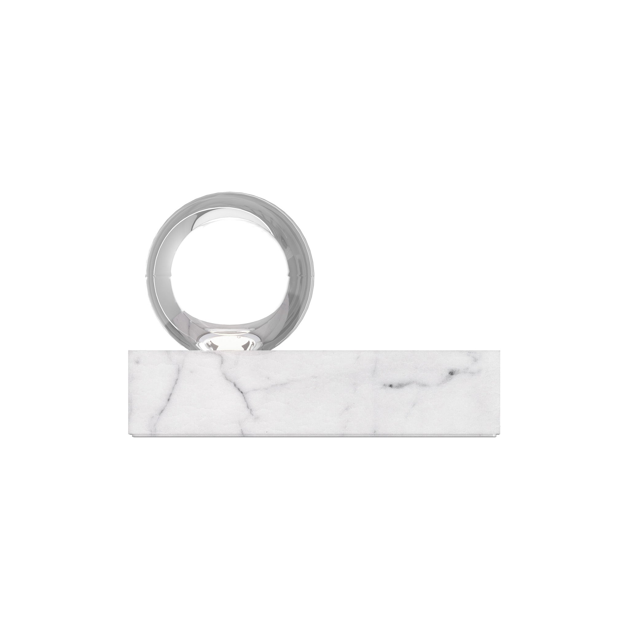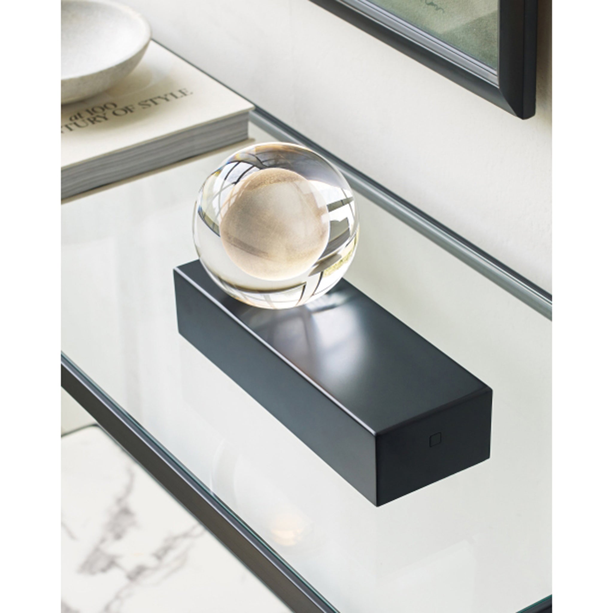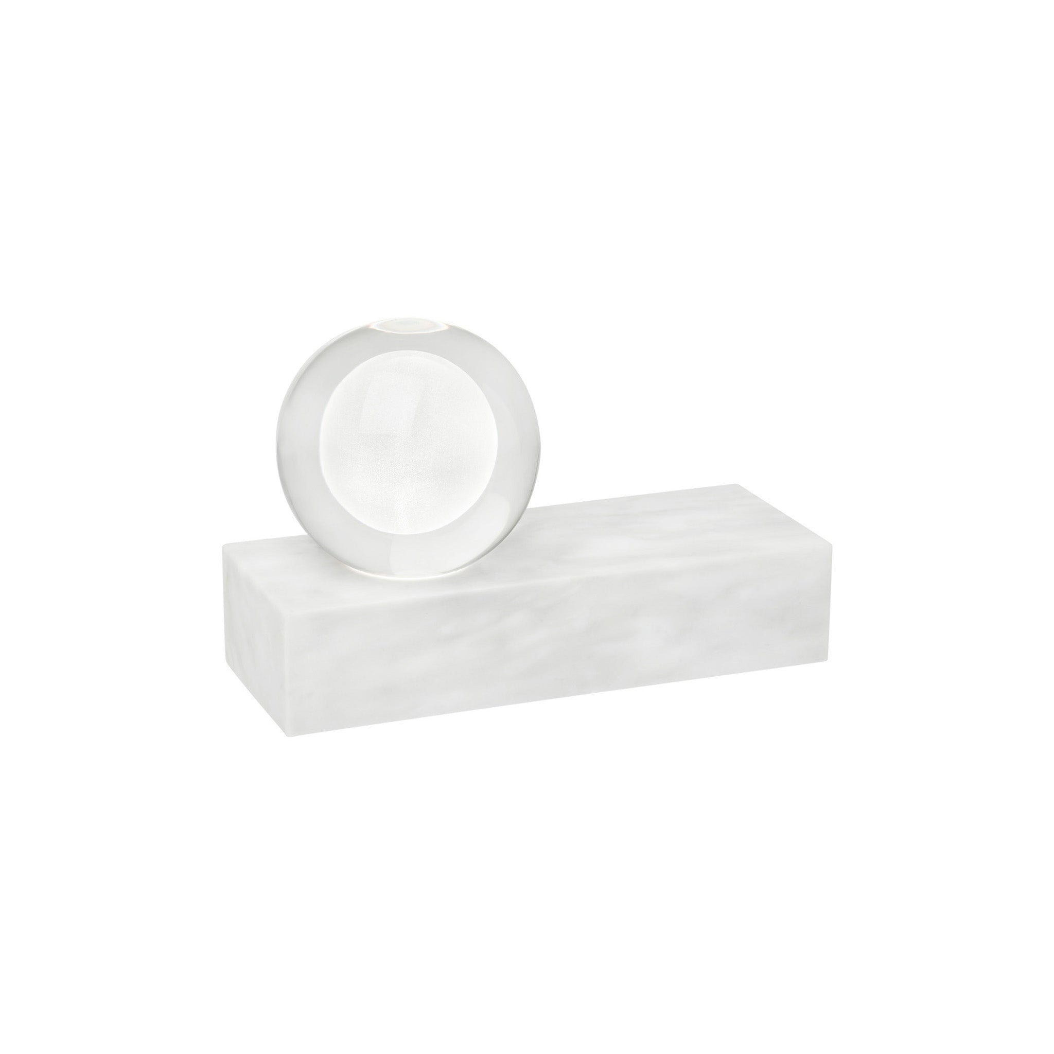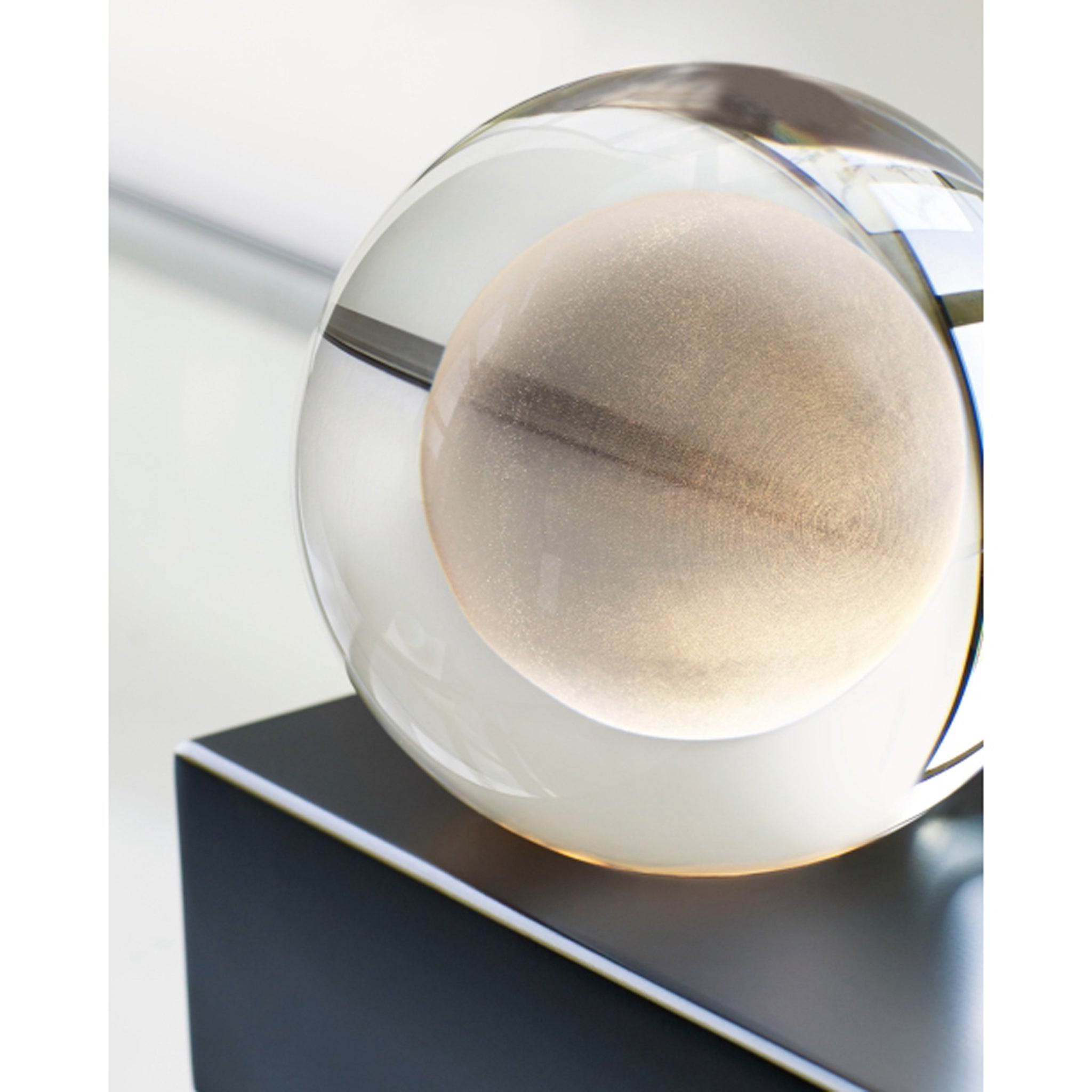 The Mina Table Lamp by Sean Lavin for Visual Comfort Modern features an elegant sphere of pure optic crystal elegantly resting on a metal or marble base. This beautiful orb is laser-etched and further illuminated by a powerful firing hidden LED making this a glowing work of art when illuminated and modern décor when unilluminated. Available in modern finishes. Designed with an integrated 3-step touch dimmer conveniently designed to achieve your desired ambiance. Complete the look with coordinating Mina Wall Sconce and Line-Voltage Pendants.