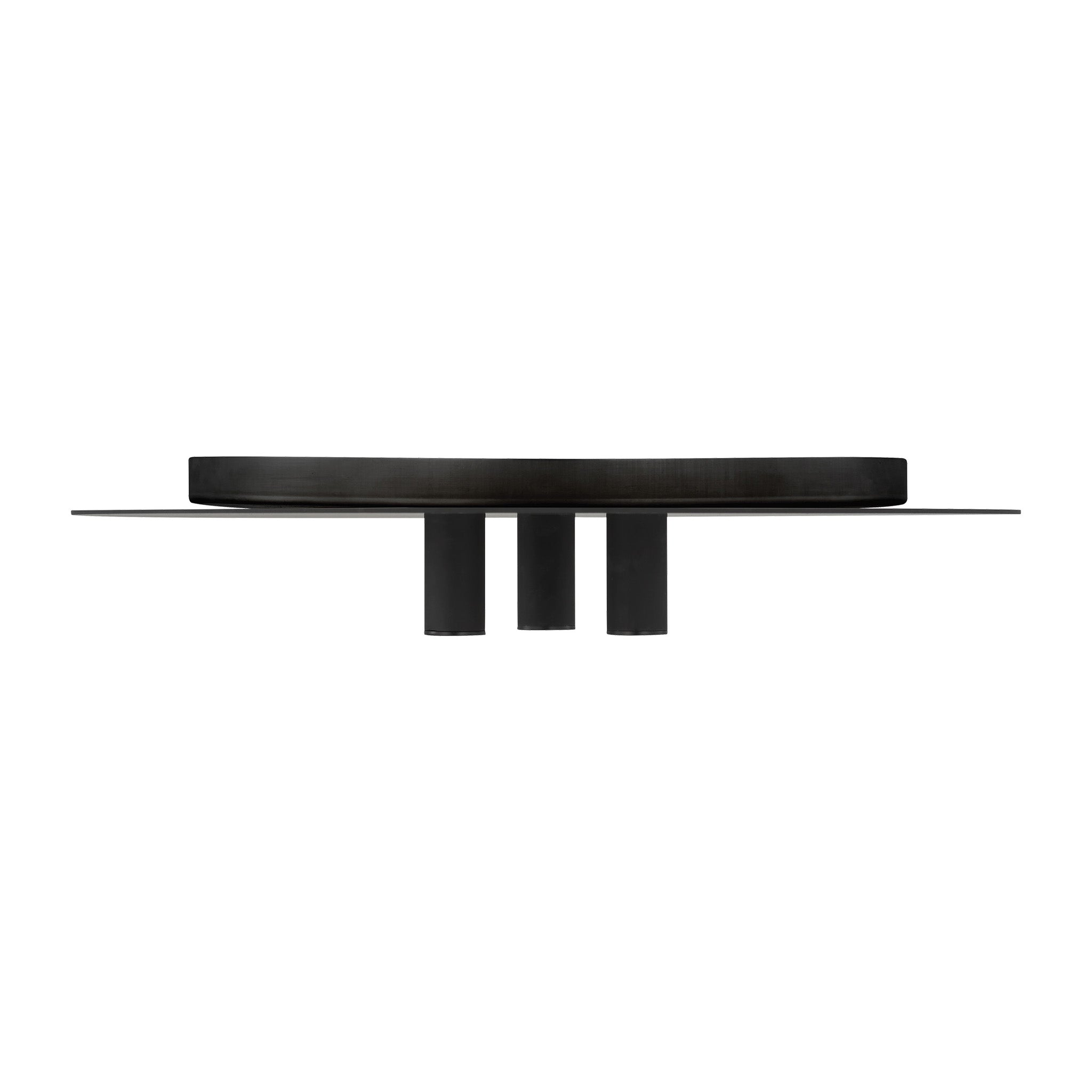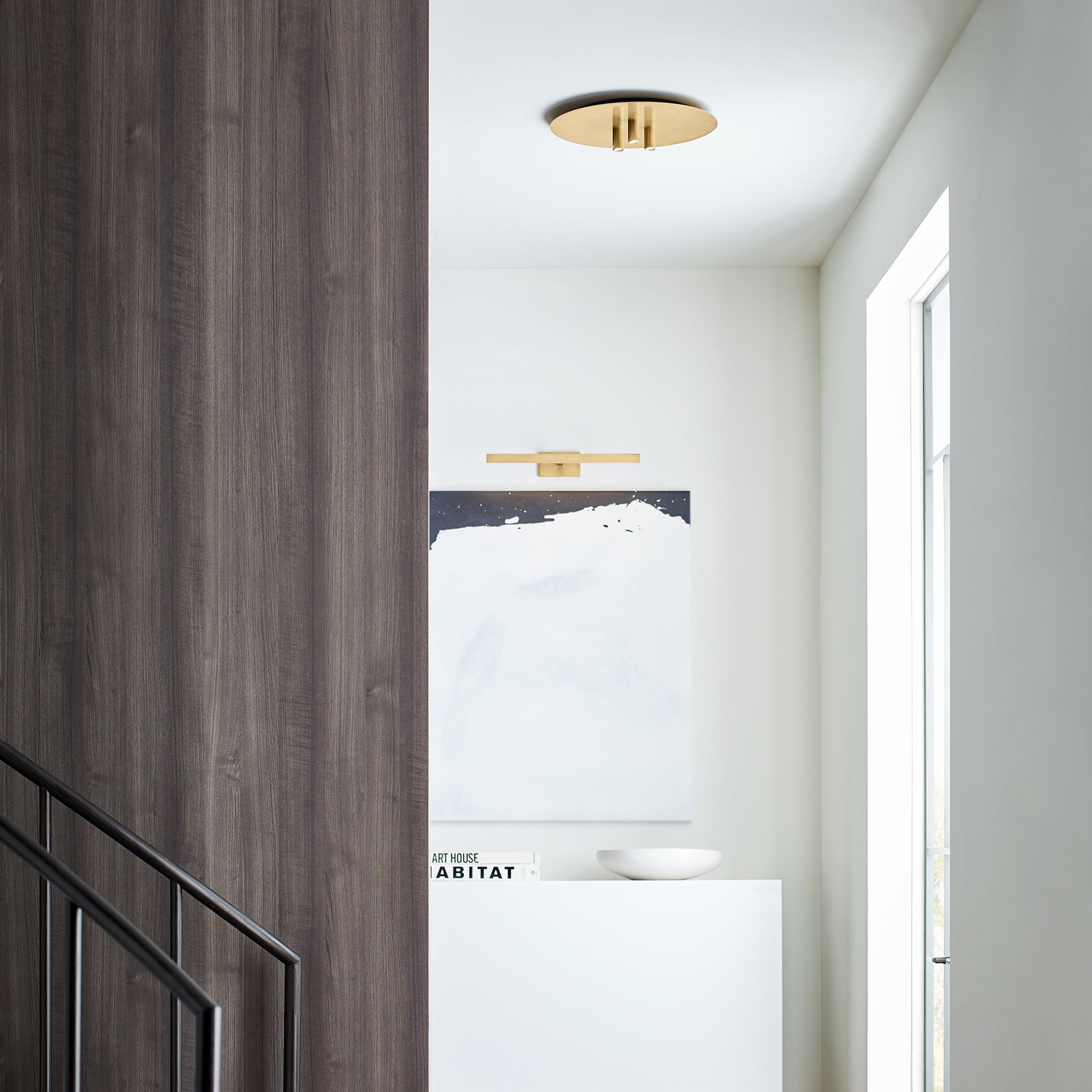 Inspired by the Ponte Skyscraper in Johannesburg, the Ponte Collection by Sean Lavin for Visual Comfort Modern celebrates modern architectural design with LED lighting. The Ponte 16 Flush Mount is crafted with three small light modules mounted from the base of a perfect ring producing a punch of downward light. Available in modern finishes.