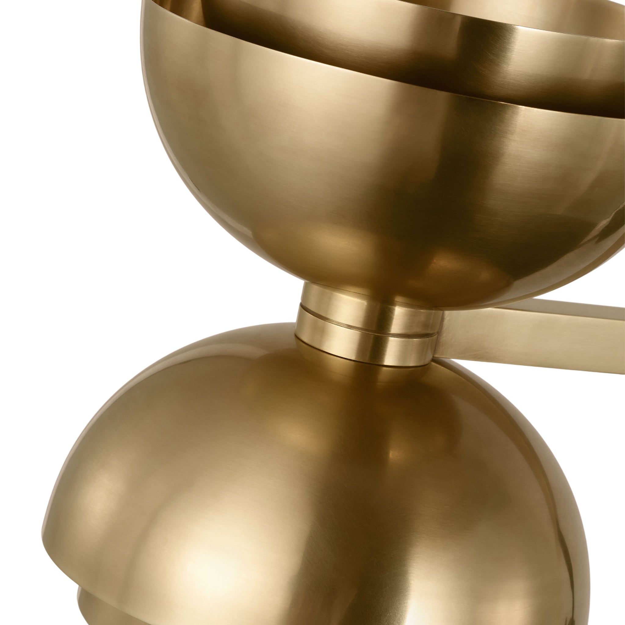 The Shanti by Sean Lavin is a statement-making piece you'll want to set the tone in your foyer, living room, or dining room. The design presents a fresh visual you can indulge in from any angle you look at it. Hanging from the end of a simple stem is a set large spun metal-shaped shades. Light sends the piece to another level as the multi-directional bulbs glaze the structure while creating a warm, radiant glow. Integrated LED modules bring the metal to life as they emit a bright and even layer of light through the top and bottom of the piece.