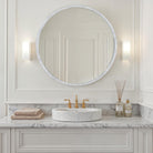 Arren Williams, designer et styliste d'intérieur canadien, nous présente ce miroir mural rond au style classique, idéal pour tous les styles, du plus moderne au plus contemporain. Fabriqué en verre miroir sans distorsion, ce miroir est encadré de marbre naturel pour une élégance intemporelle. Exposez-le où vous le souhaitez pour affirmer votre bon goût.