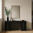 Ce miroir mural pourrait bien être la touche finale qui manque à votre décoration. Fabriqué avec un cadre en bois massif, des lignes épurées et une finition noire mate, ce miroir apportera une touche de modernité à n'importe quel espace. Grâce à ses deux options de fixation et à ses dimensions qui s'adaptent parfaitement à tous les espaces, il est doté d'un verre cristallin qui garantit une réflexion impeccable.