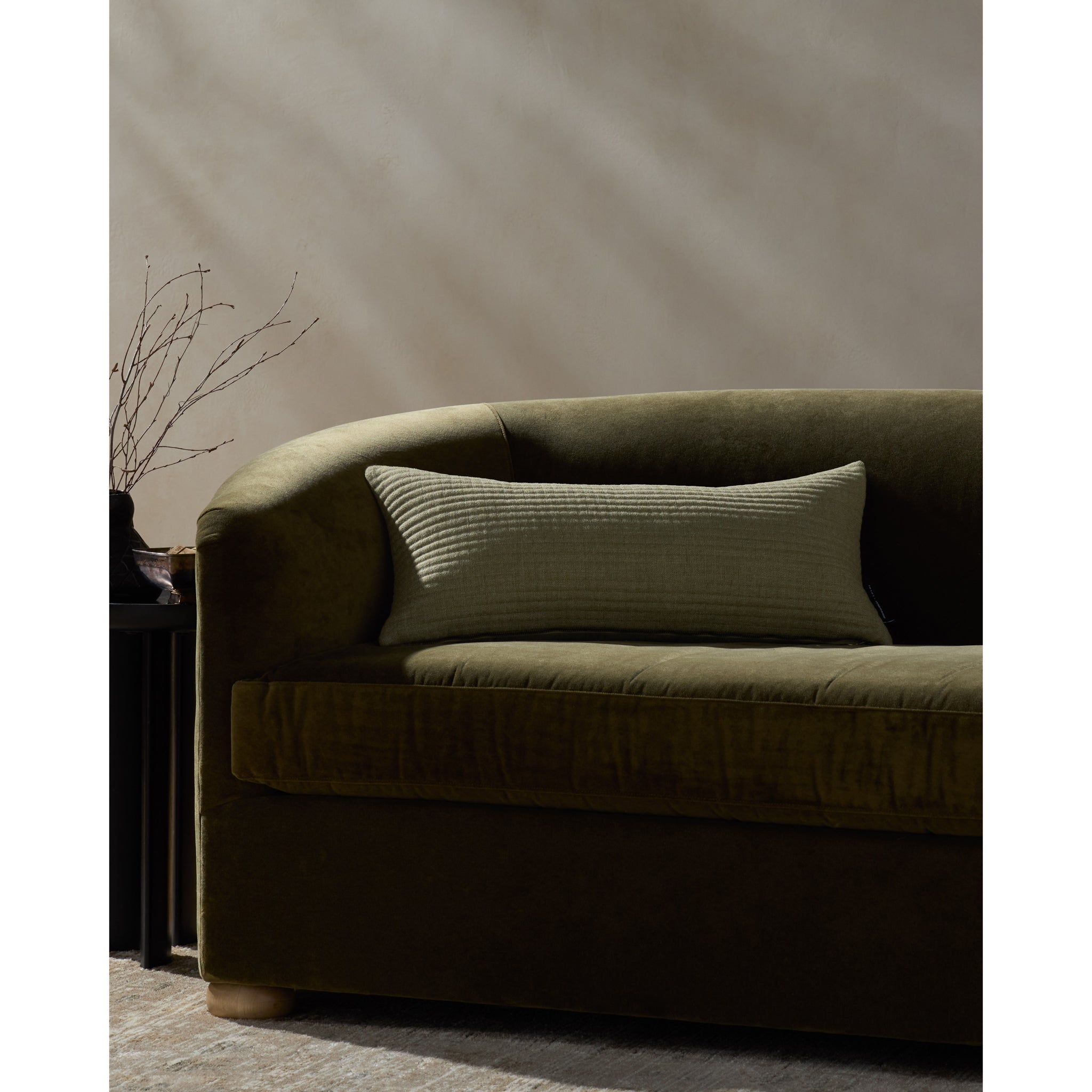 Christopher est un coussin matelassé vert sauge merveilleusement doux, conçu par Jeremiah Brent et Loloi. Ce coussin décoratif de 30,5 x 68,6 cm est fabriqué en Inde en polyester et coton, une touche d'élégance pour une décoration d'intérieur moderne.